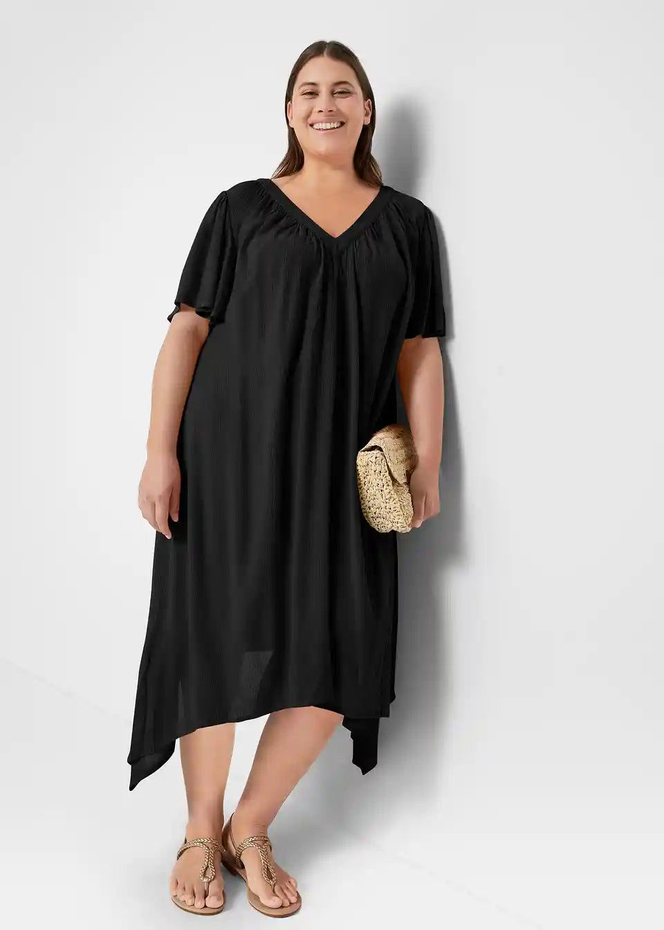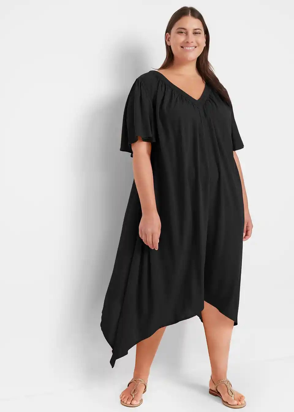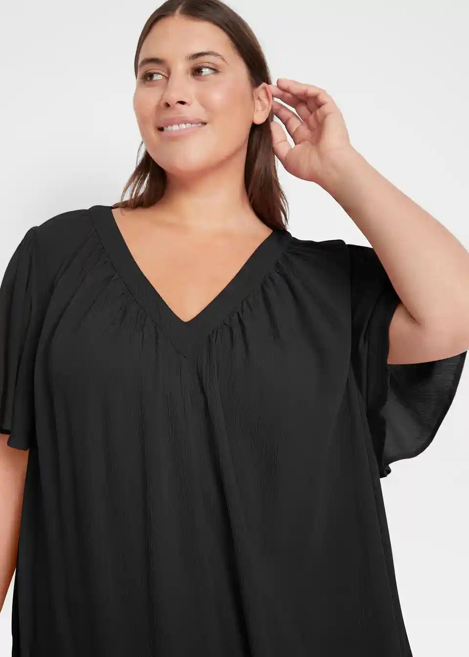 Kaftan-haljina oversized kroja s lijepim V-izrezom i rukavima s volanima u dugom kroju