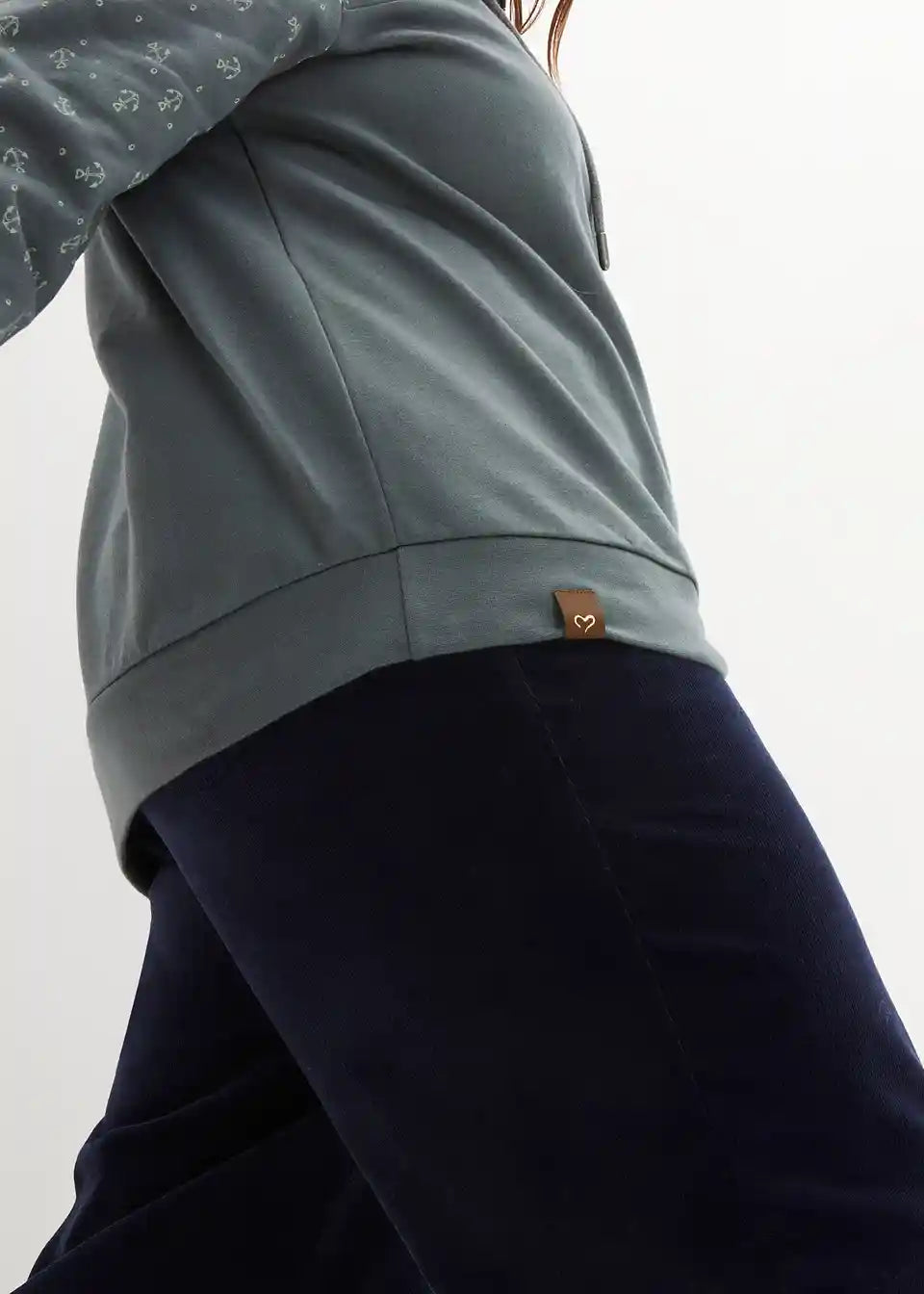Materijal:gornji materijal: 100% pamuk (organski), podstava kapuljače: 100% pamuk (organski), obrube: 95% pamuk, 5% elastan