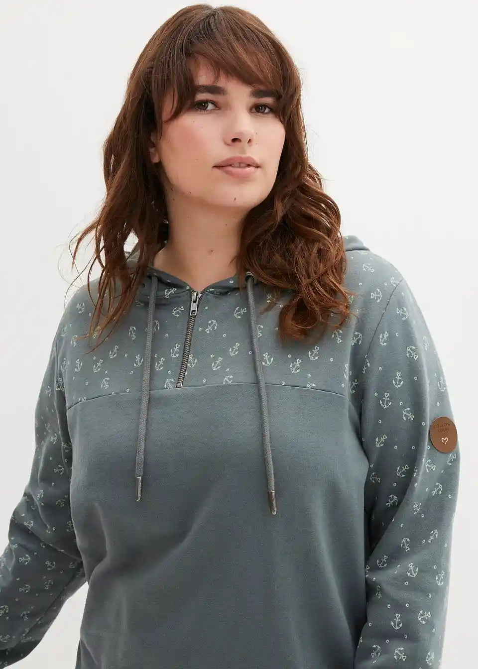 Majica od trikoa s kapuljačom i patentnim zatvaračem od pamuka