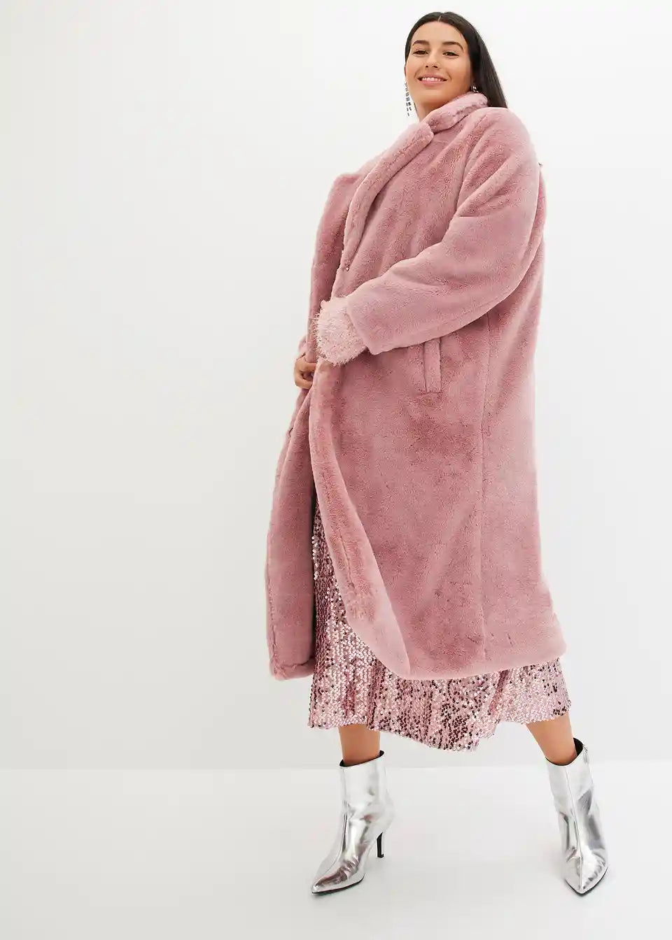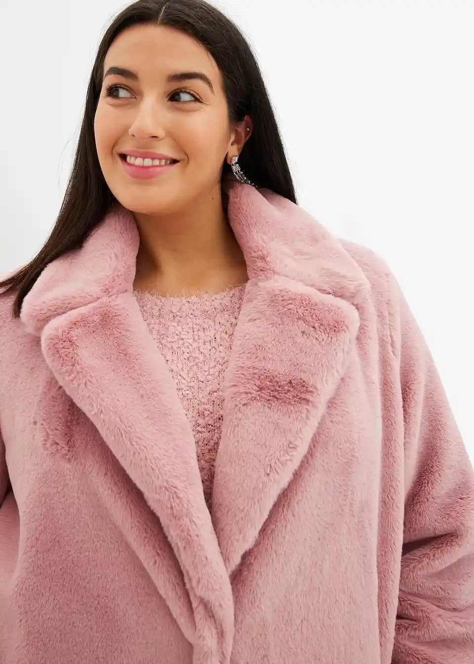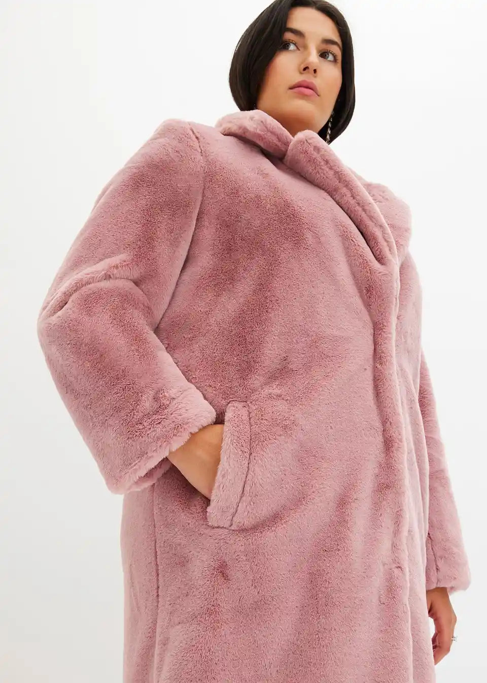 modni kaput od imitacije krzna s prednjim kopčanjem na drukere