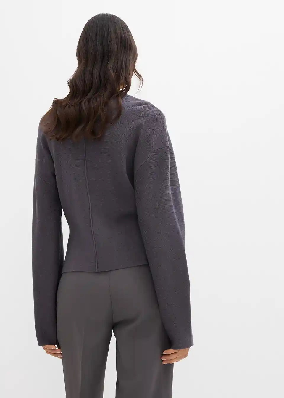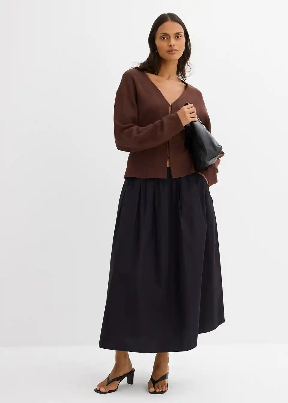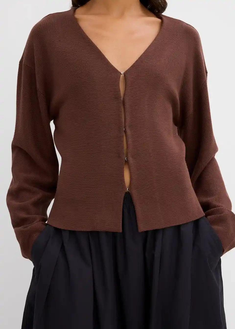 Kardigan s voluminoznim rukavima, V-izrezom i prednjim kopčanjem na kukicu