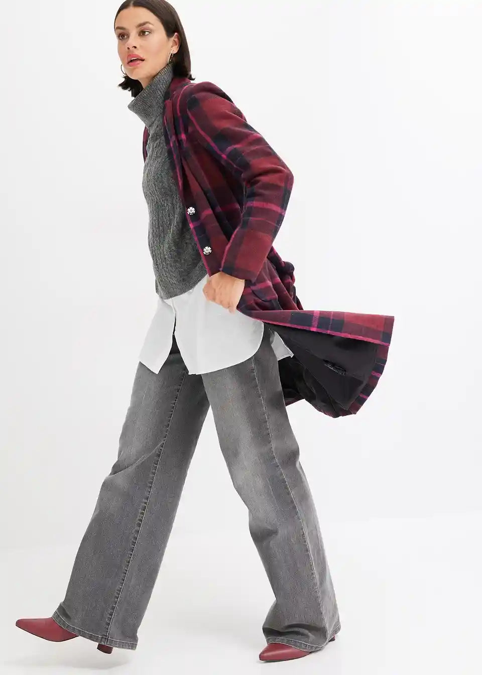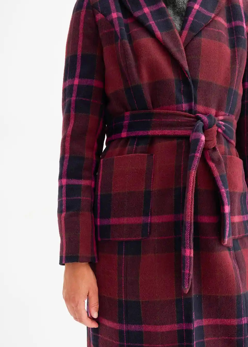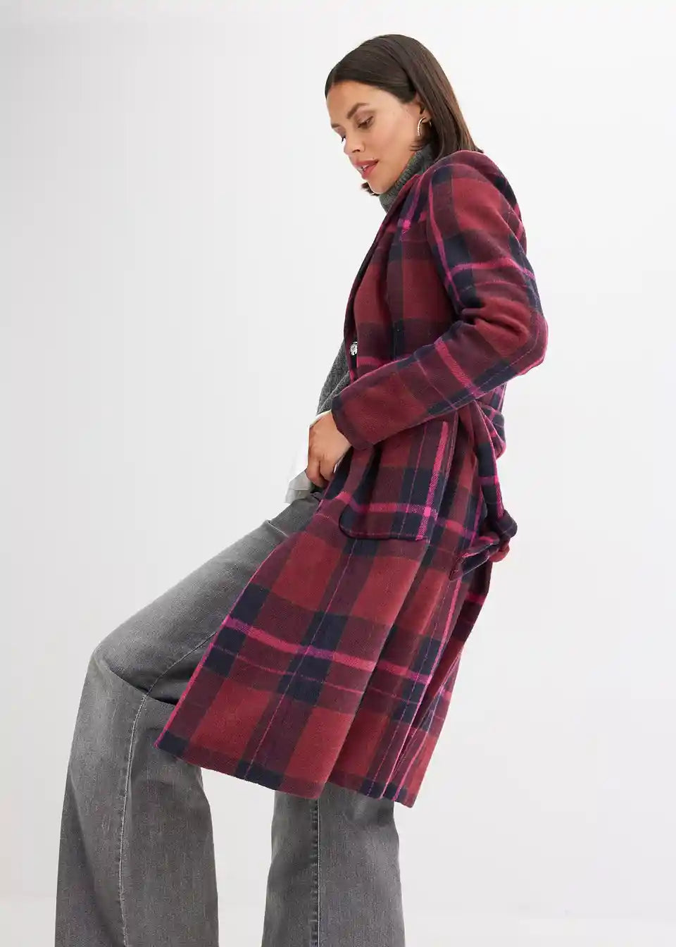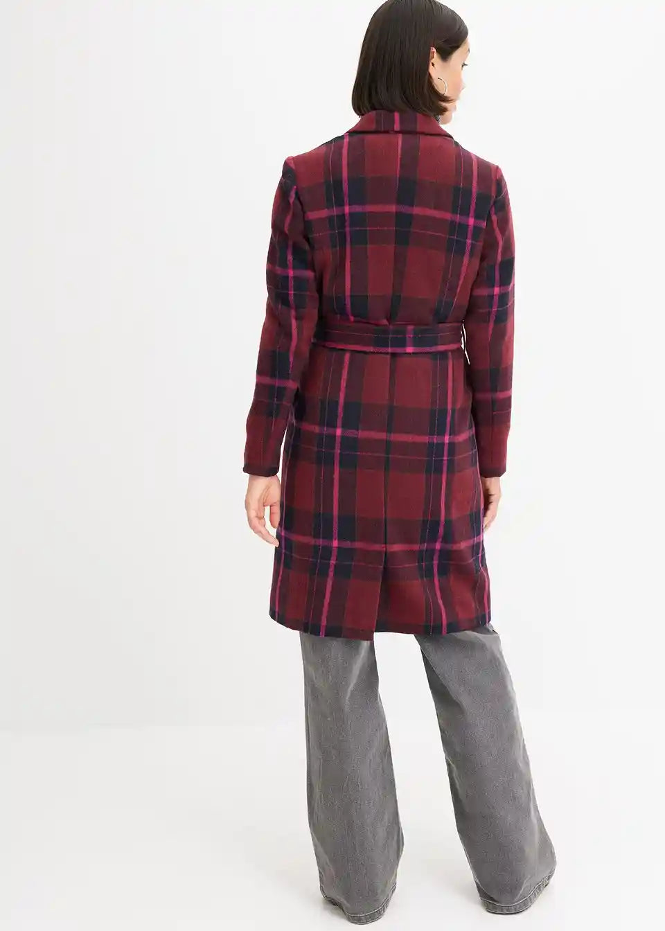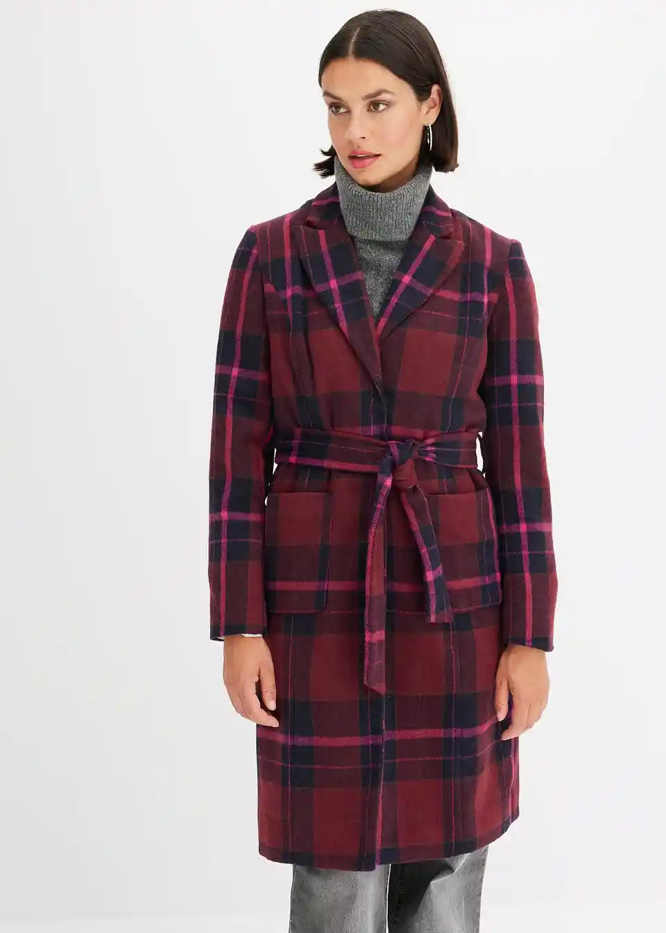 moderan karirani kaput s pojasom u struku i kopčanjem na pritisne gumbe sprijeda