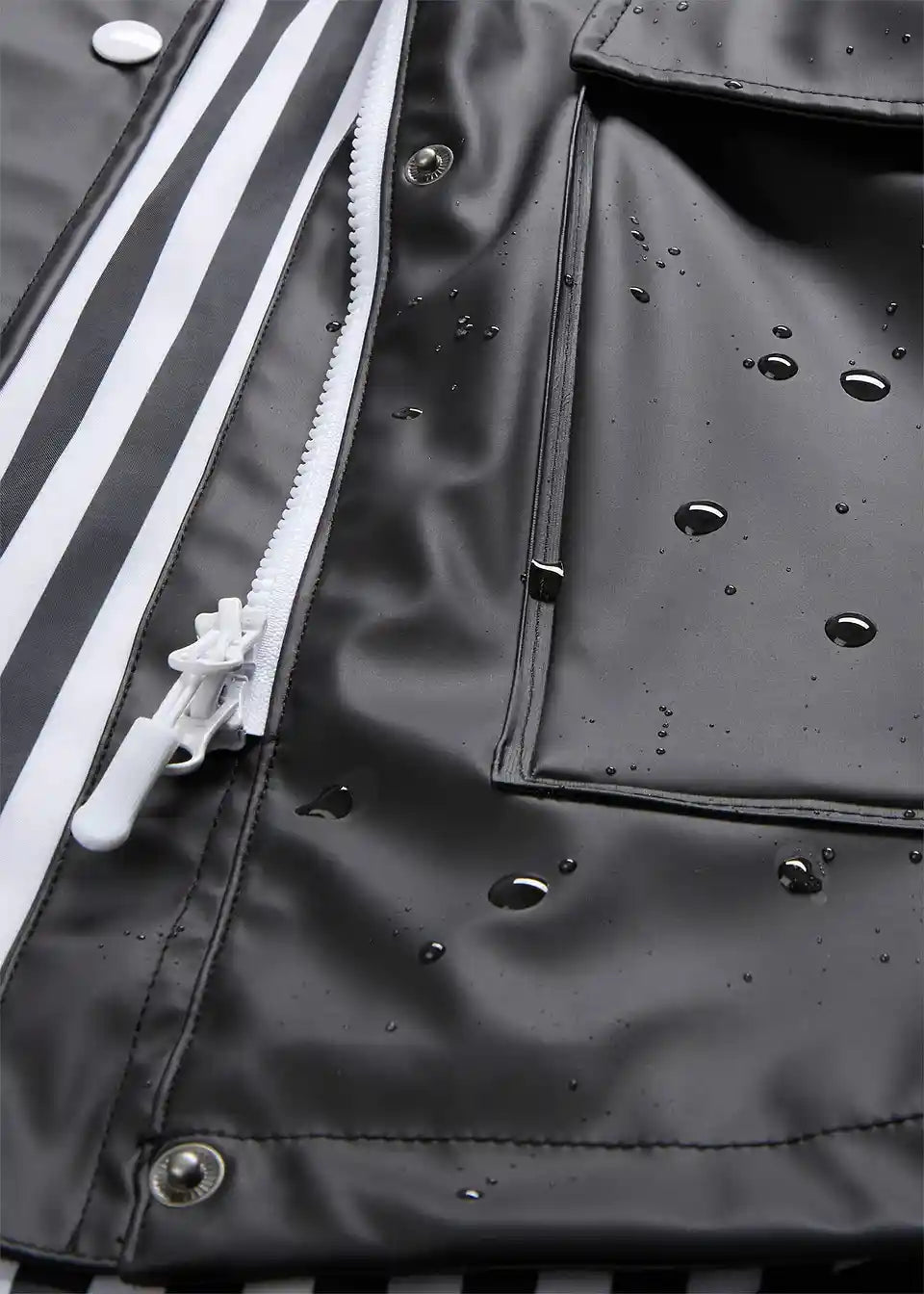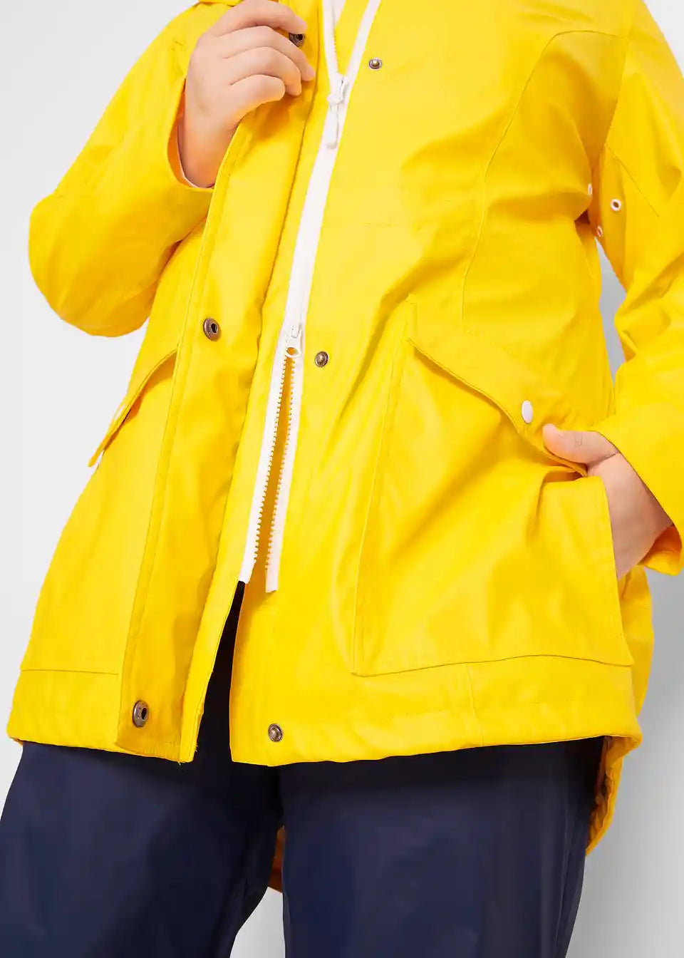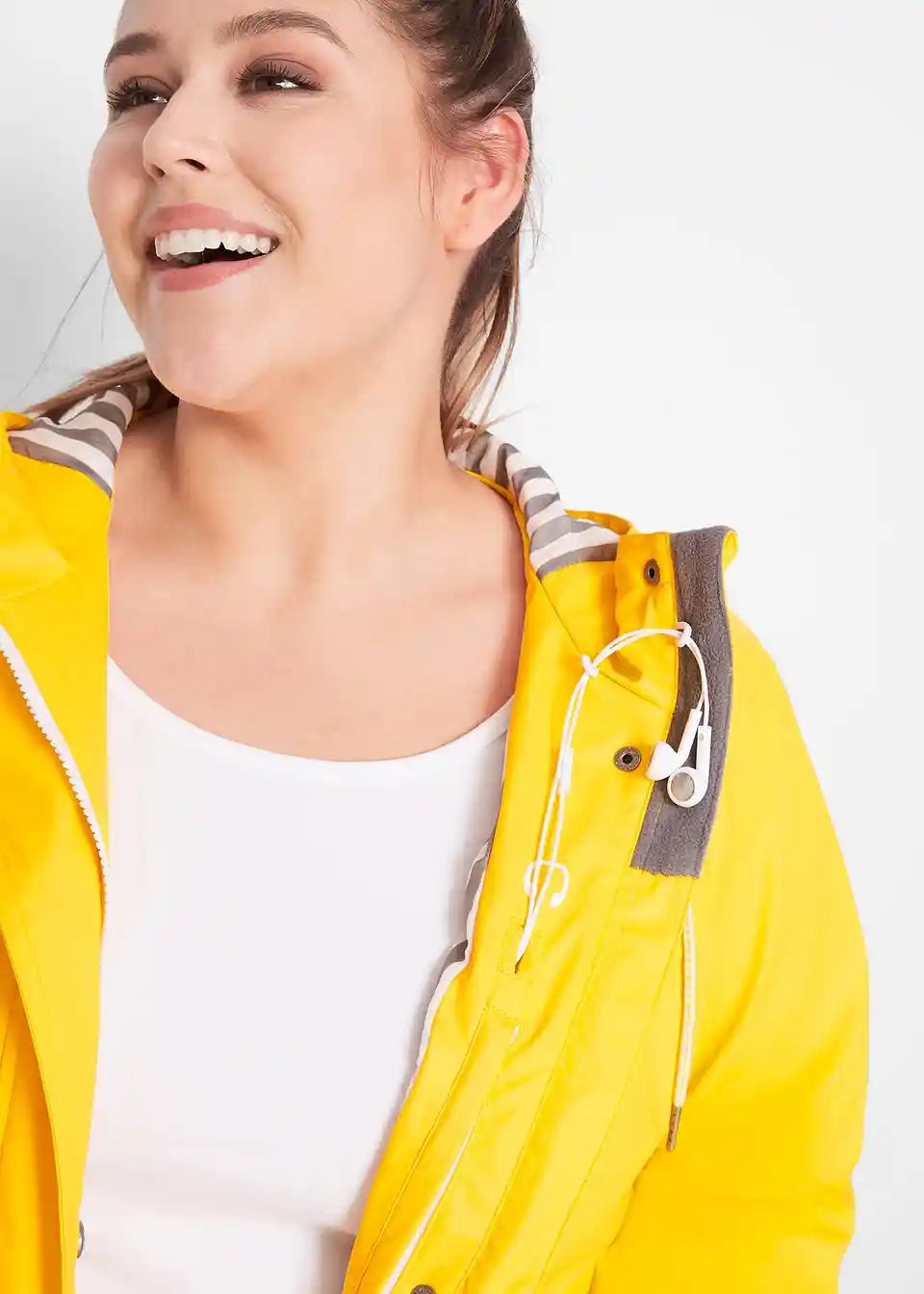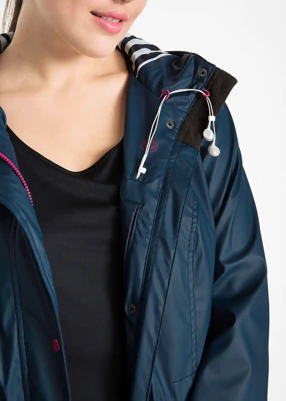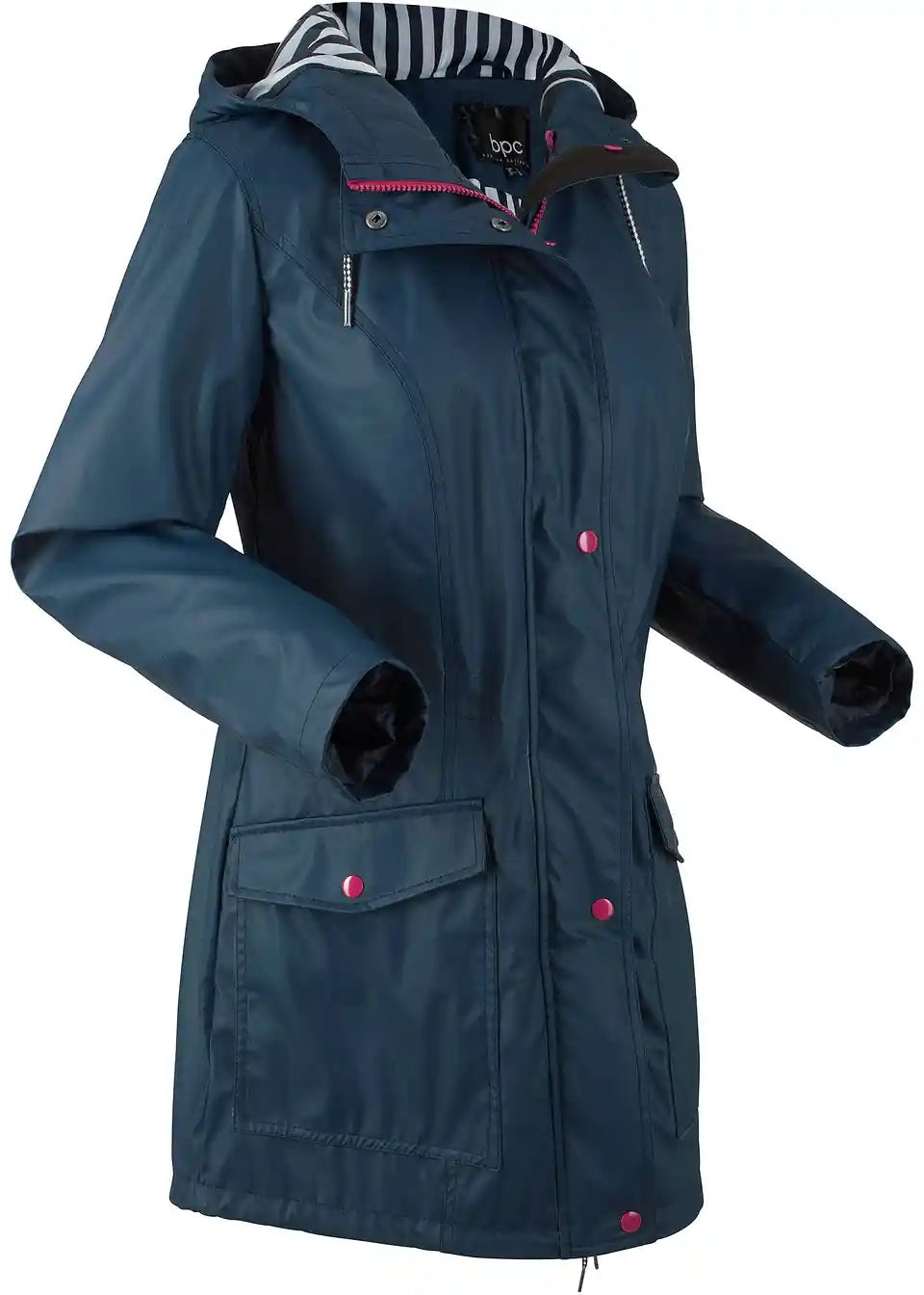 Ova praktična i funkcionalna kišna jakna štiti od vjetra i kiše. Model otporan na vjetar i vodu pogodan je za slobodno vrijeme i kao sportska odjeća. Preko dvosmjernog patentnog zatvarača nalazi se dodatna preklopna traka za zatvaranje. Osim dva velika vanjska džepa s preklopom, postoji i unutarnji džep s funkcijom kabela. Prozračivanje ispod pazuha i kapuljača savršeno zaokružuju kišnu jaknu iz kolekcije bpc.