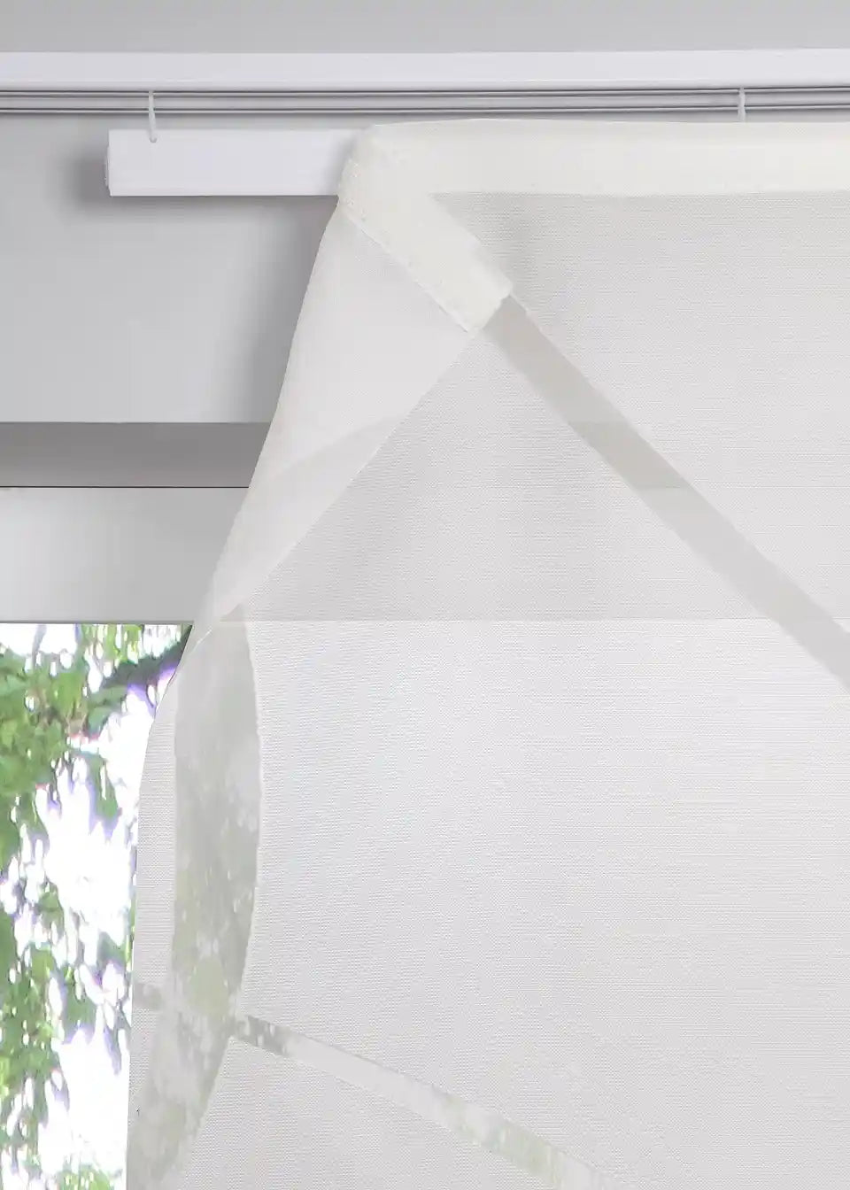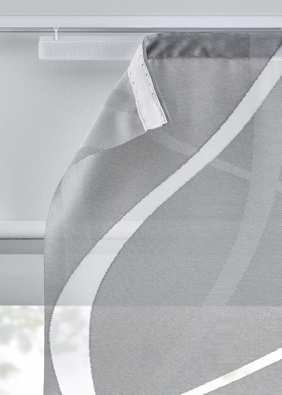 Moderna klizna zavjesa od poluprozirnog materijala. Moderan uzorak izrađen je Scherli postupkom i ima trendi resaste rubove. Dostupna u raznim atraktivnim bojama za dom.