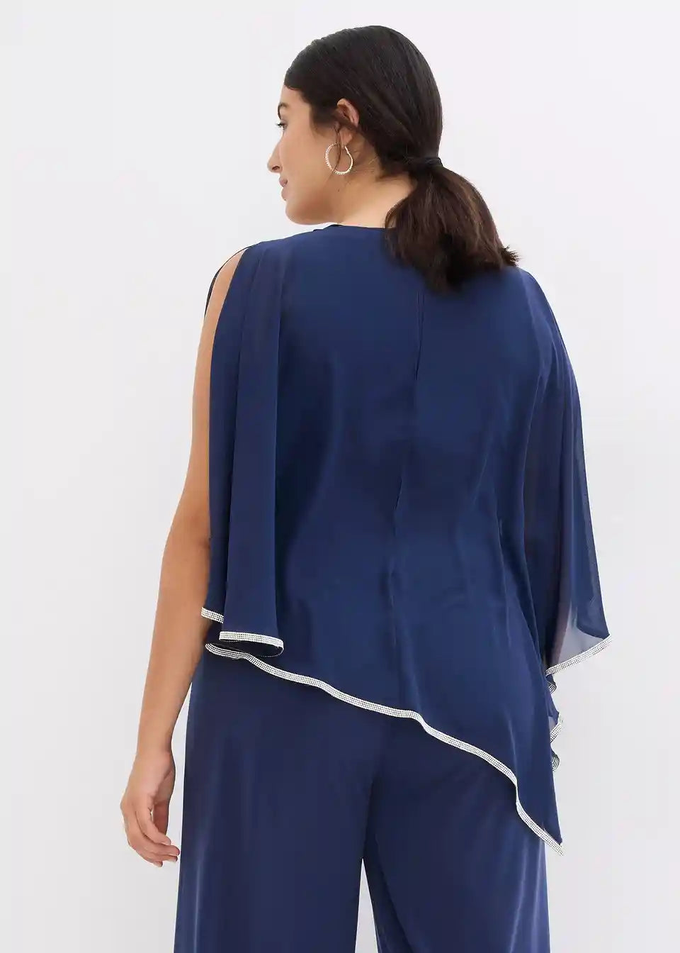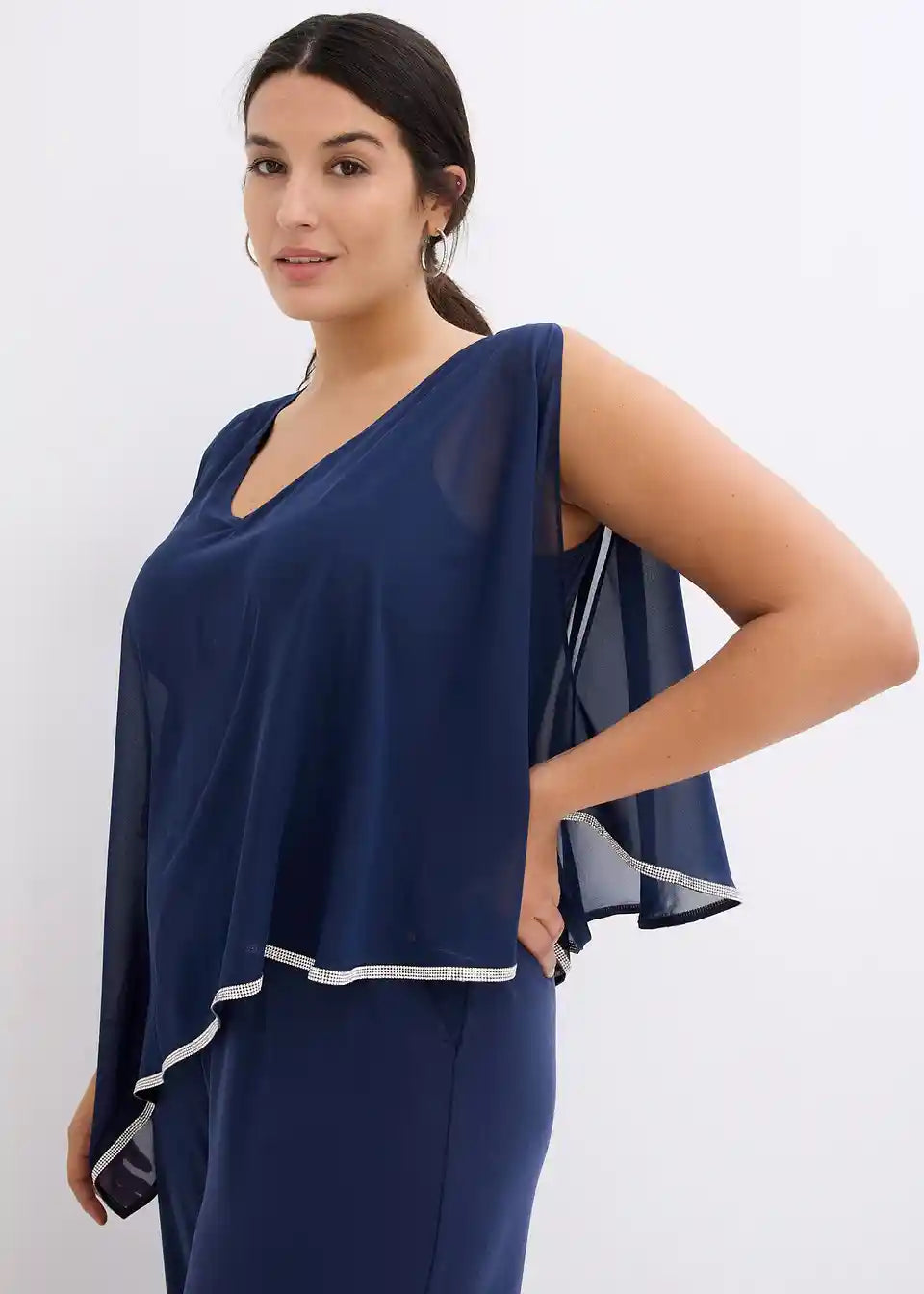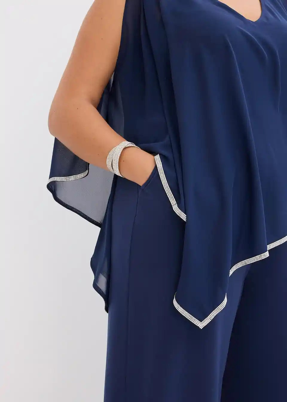svečani kombinezon s laskavim prekrivačem od šifona i elegantnim sjajnim ukrasnim kamenčićima
