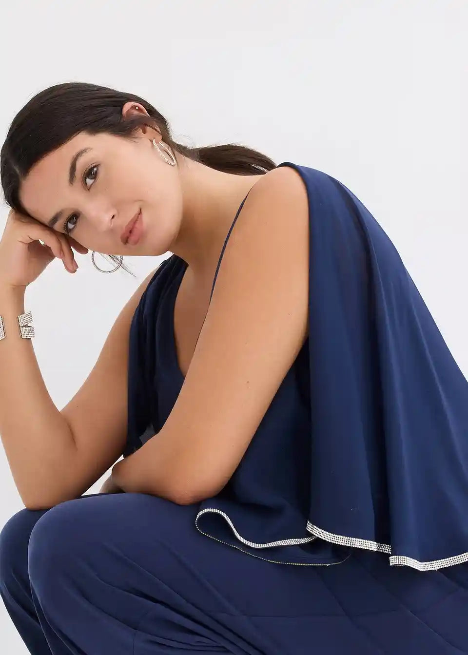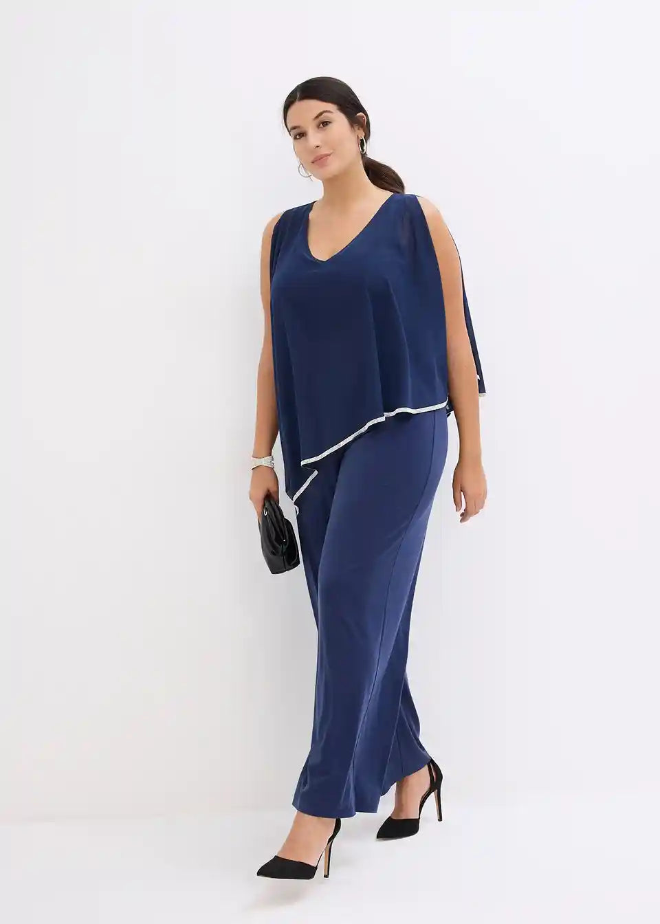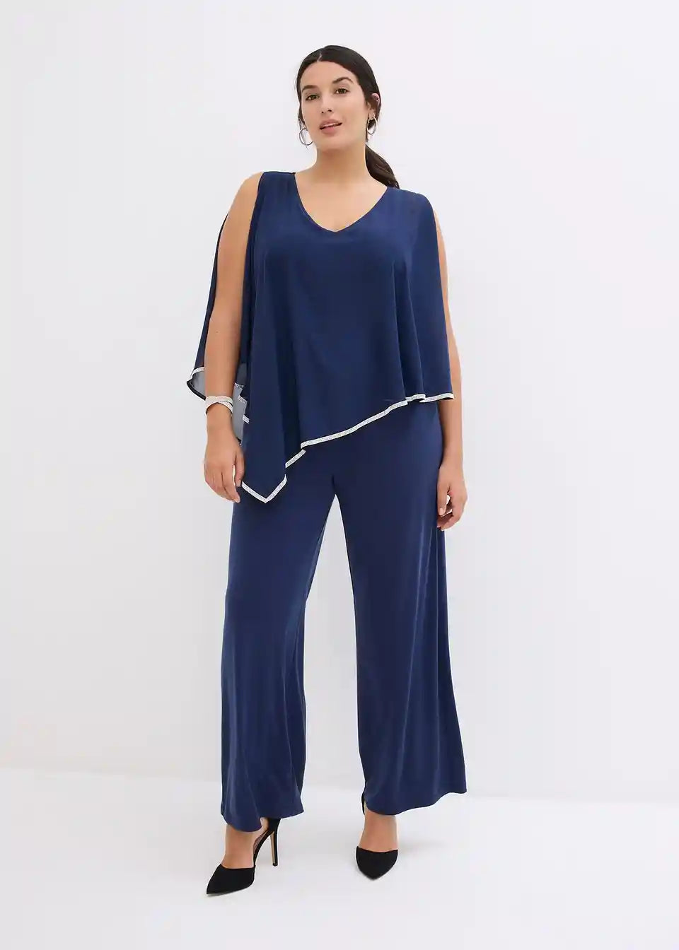 svečani kombinezon s laskavim prekrivačem od šifona i elegantnim sjajnim ukrasnim kamenčićima