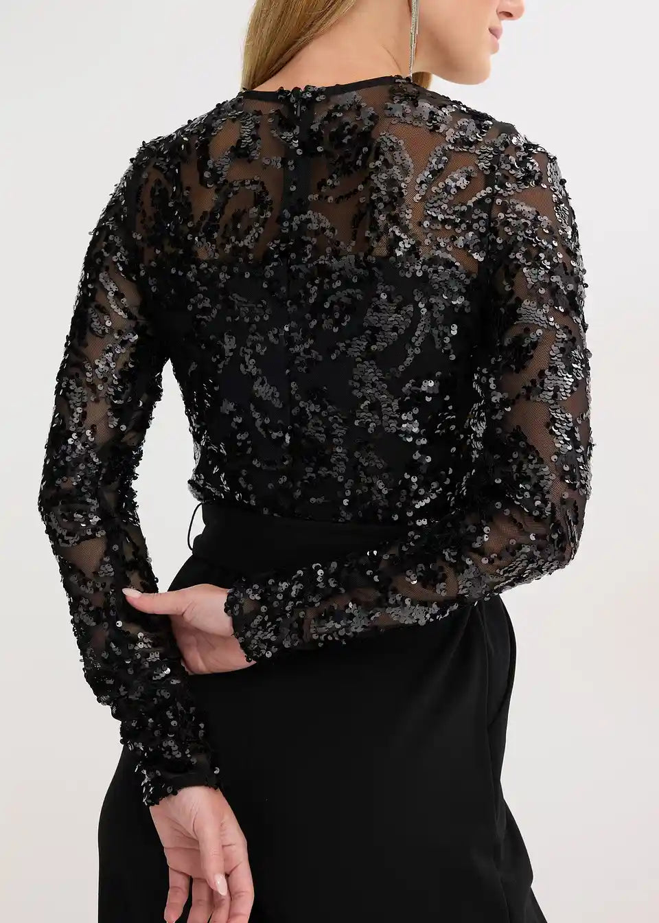 Moderan i ženstven: kombinezon s vezom od šljokica i detaljem vezanja u struku