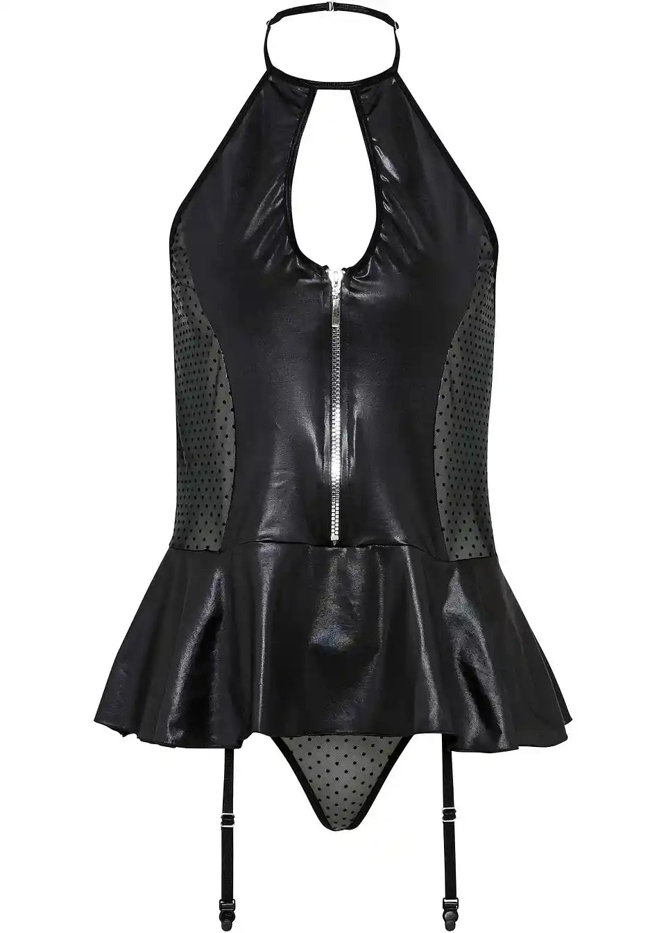 Korzet s pojasom s držačima za čarape i tanga gaćice mokrog efekta