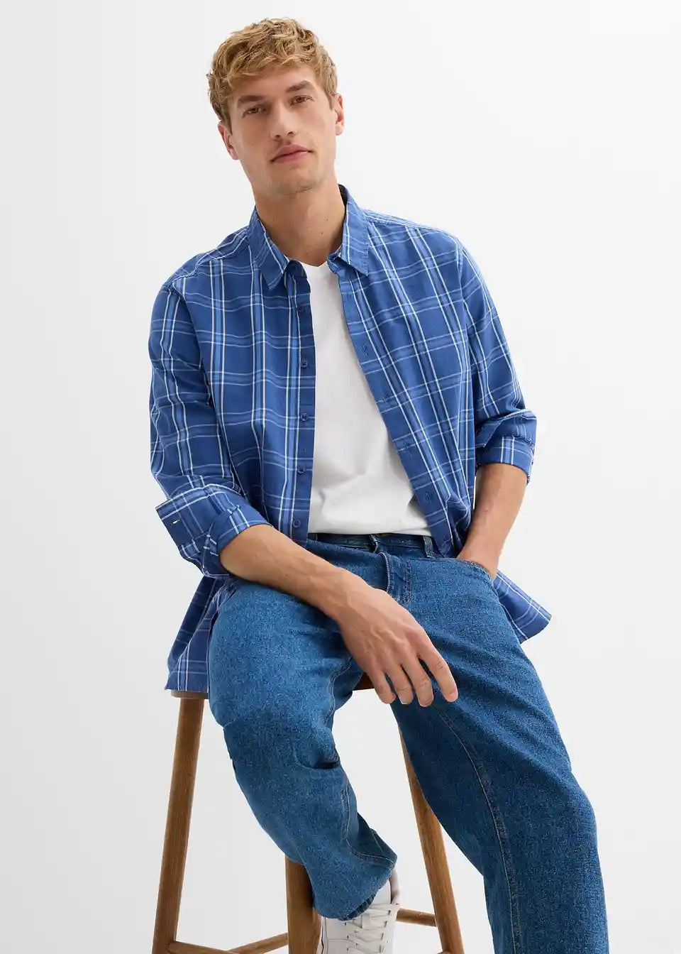 moderna košulja dugih rukava s karo uzorkom od koži ugodnog čistog organskog pamuka