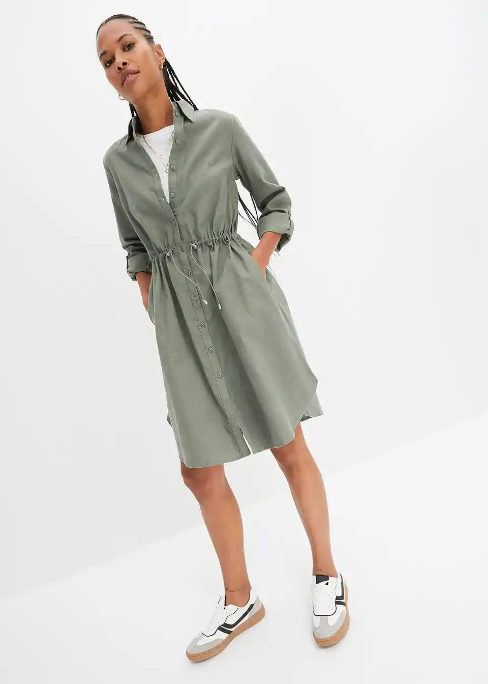 Moderna haljina s džepovima i elastičnim pojasom u struku, dužine do koljena
