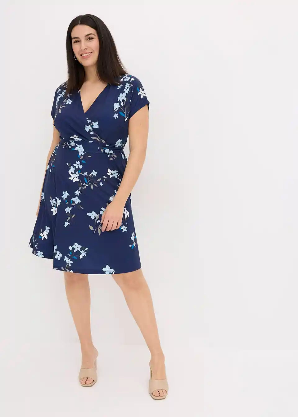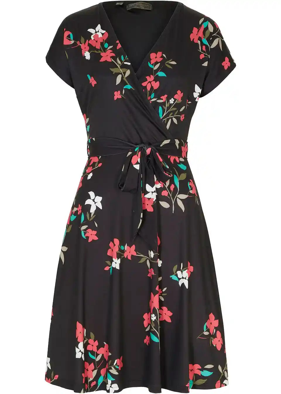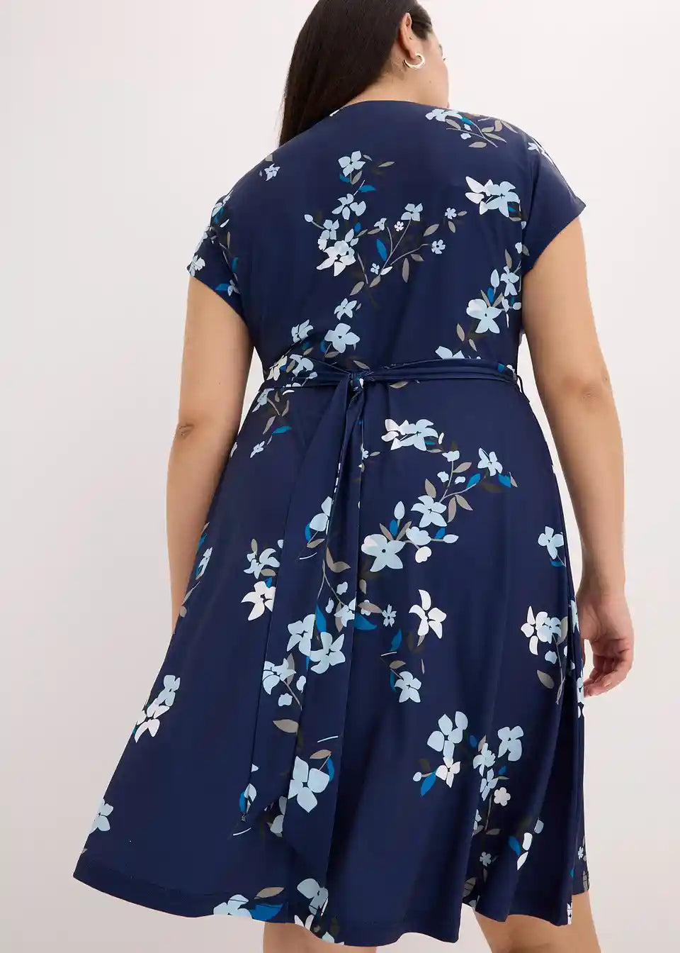 Haljina koja laska figuri s tiskanim uzorkom po cijeloj površini i vezanim remenom