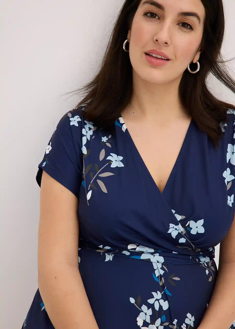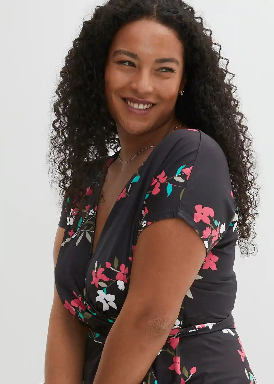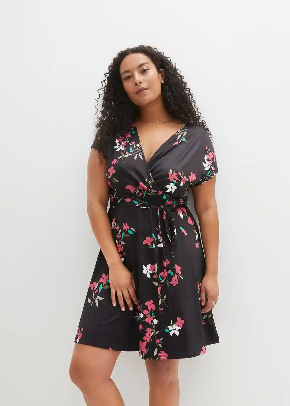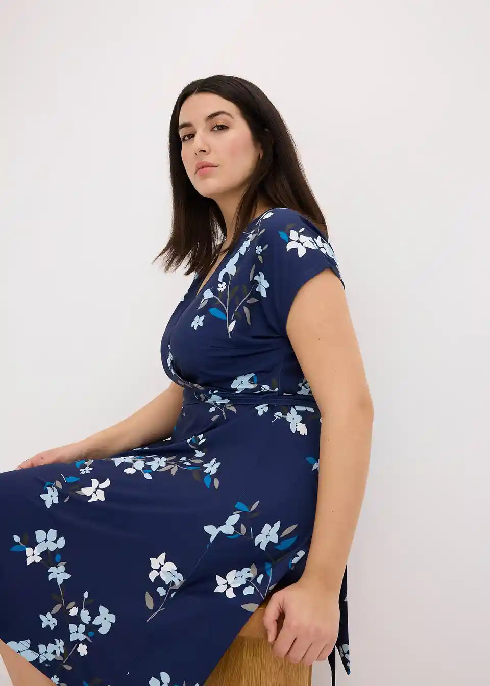 Haljina koja laska figuri s tiskanim uzorkom po cijeloj površini i vezanim remenom