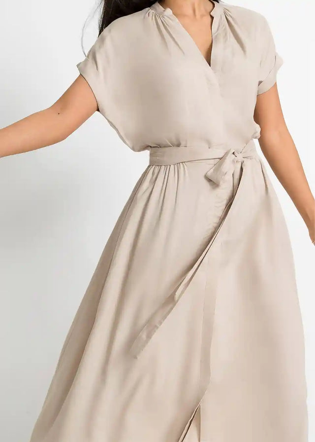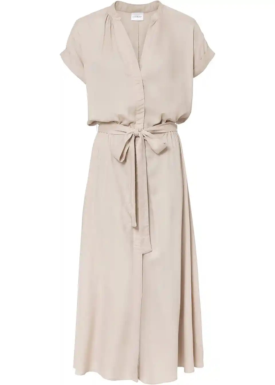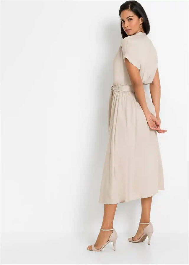 Moderna košulja-haljina s pojasom za vezanje u struku.