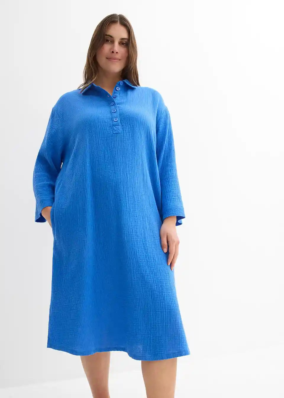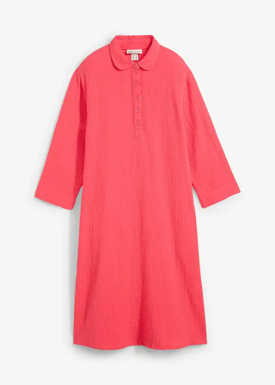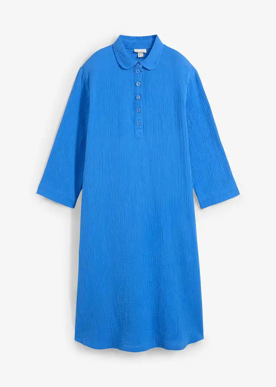Košulja-haljina od pamuka A-kroja. S kopčanjem na gumbe i 3/4 rukavima.