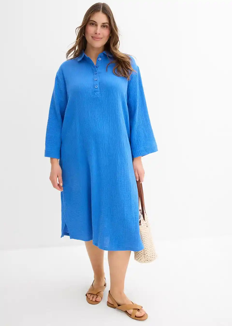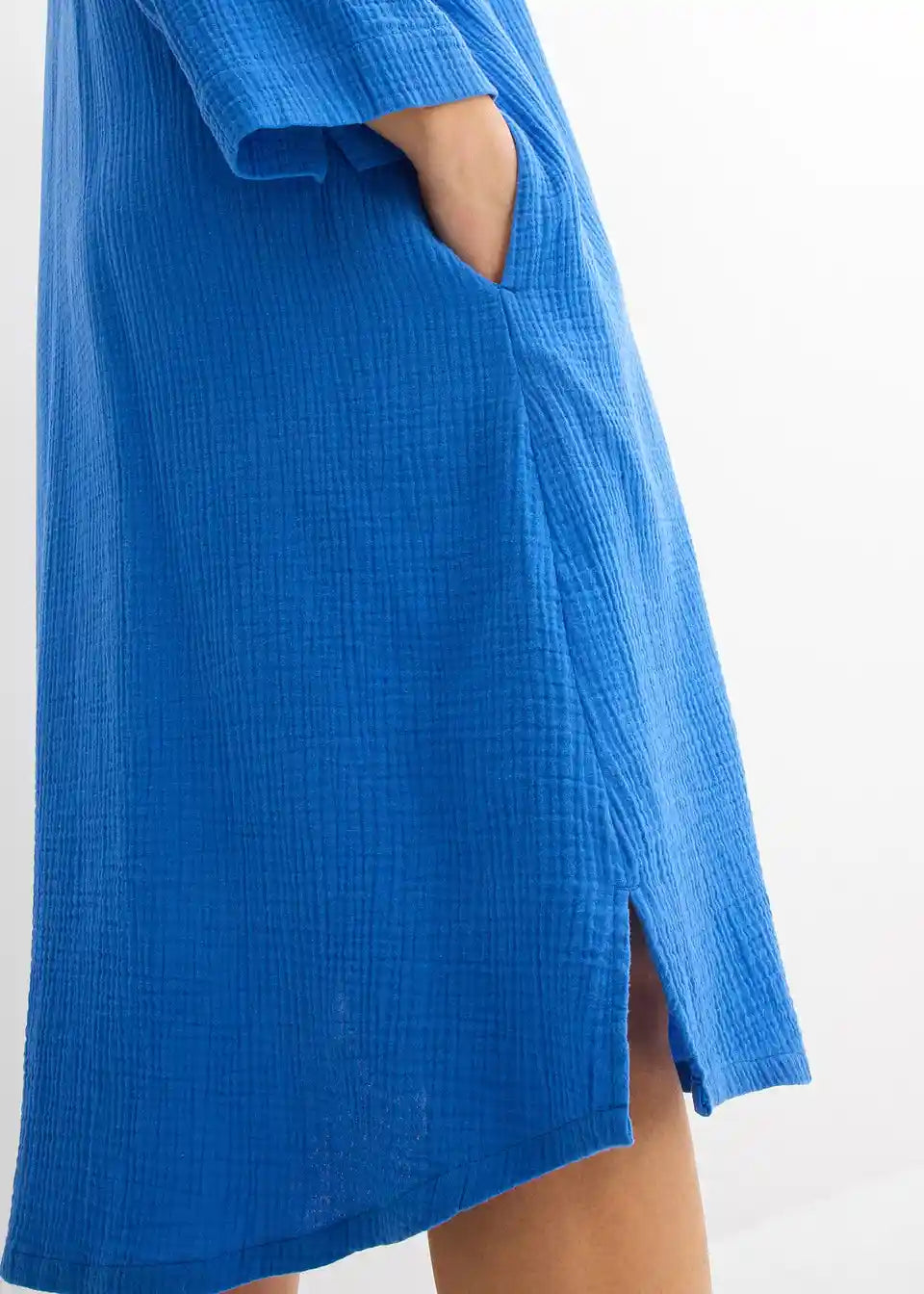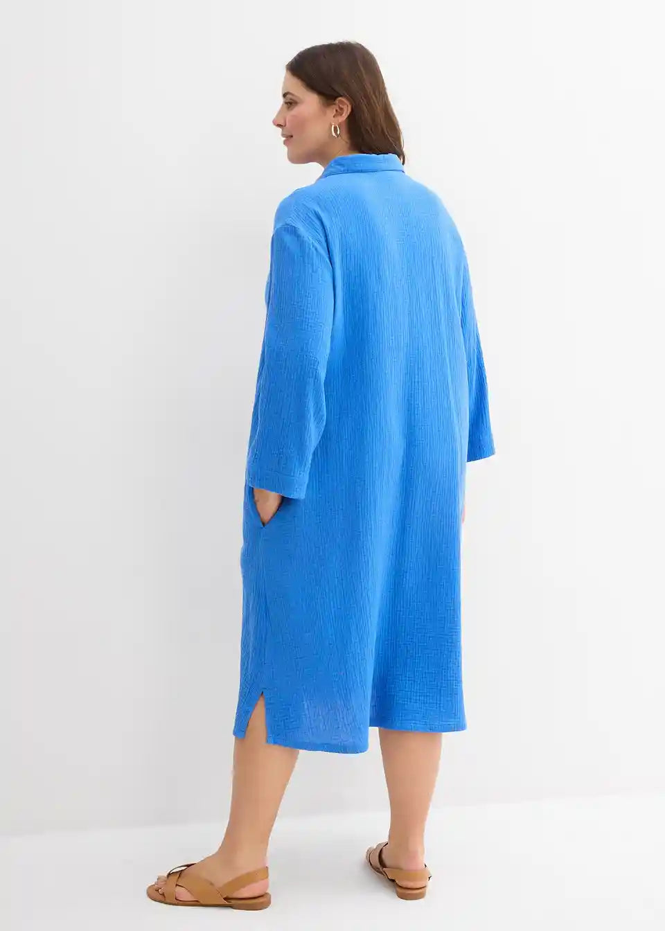 Košulja-haljina od pamuka A-kroja. S kopčanjem na gumbe i 3/4 rukavima.