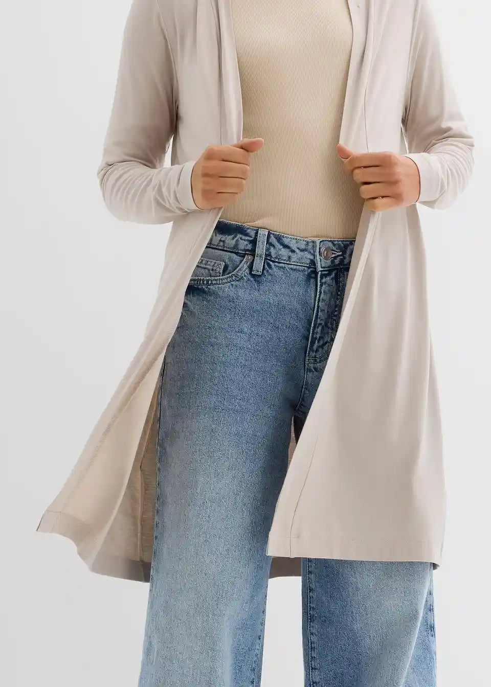 Dugi model košulja-jakne marke bpc predstavlja osnovni komad koji se može kombinirati na razne načine. Zahvaljujući otvorenom kroju koji nježno obavija tijelo, laska ženskoj figuri. Meko, lepršavo pletivo pruža ugodnu udobnost nošenja i čini ovu košulja-jaknu omiljenim komadom. Raznolikost je zajamčena s jaknom dugih rukava: pristaje uz traperice i majicu, kao i uz haljine i suknje.