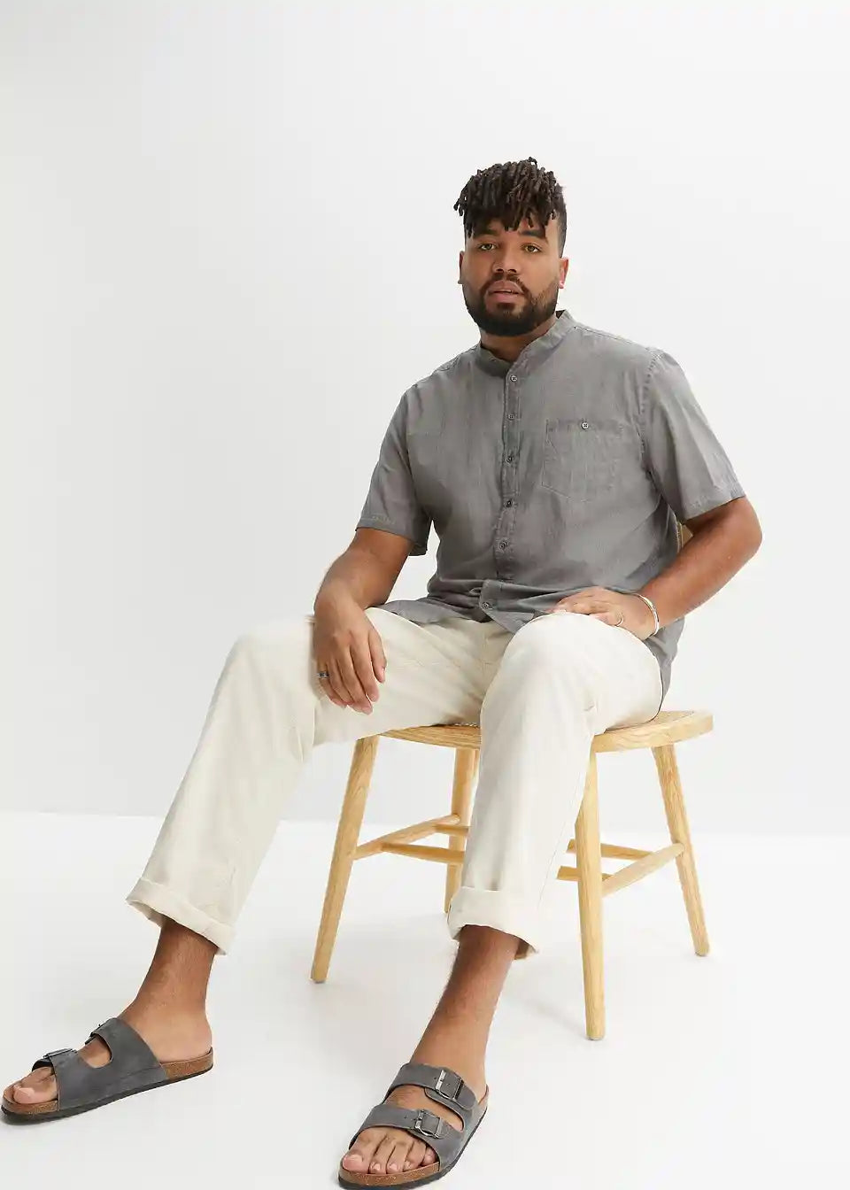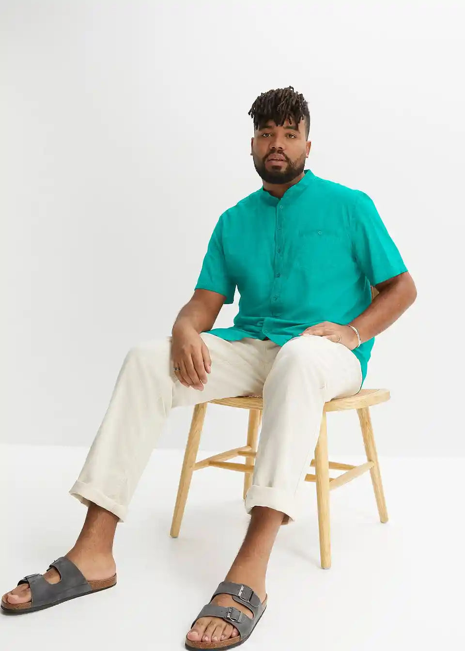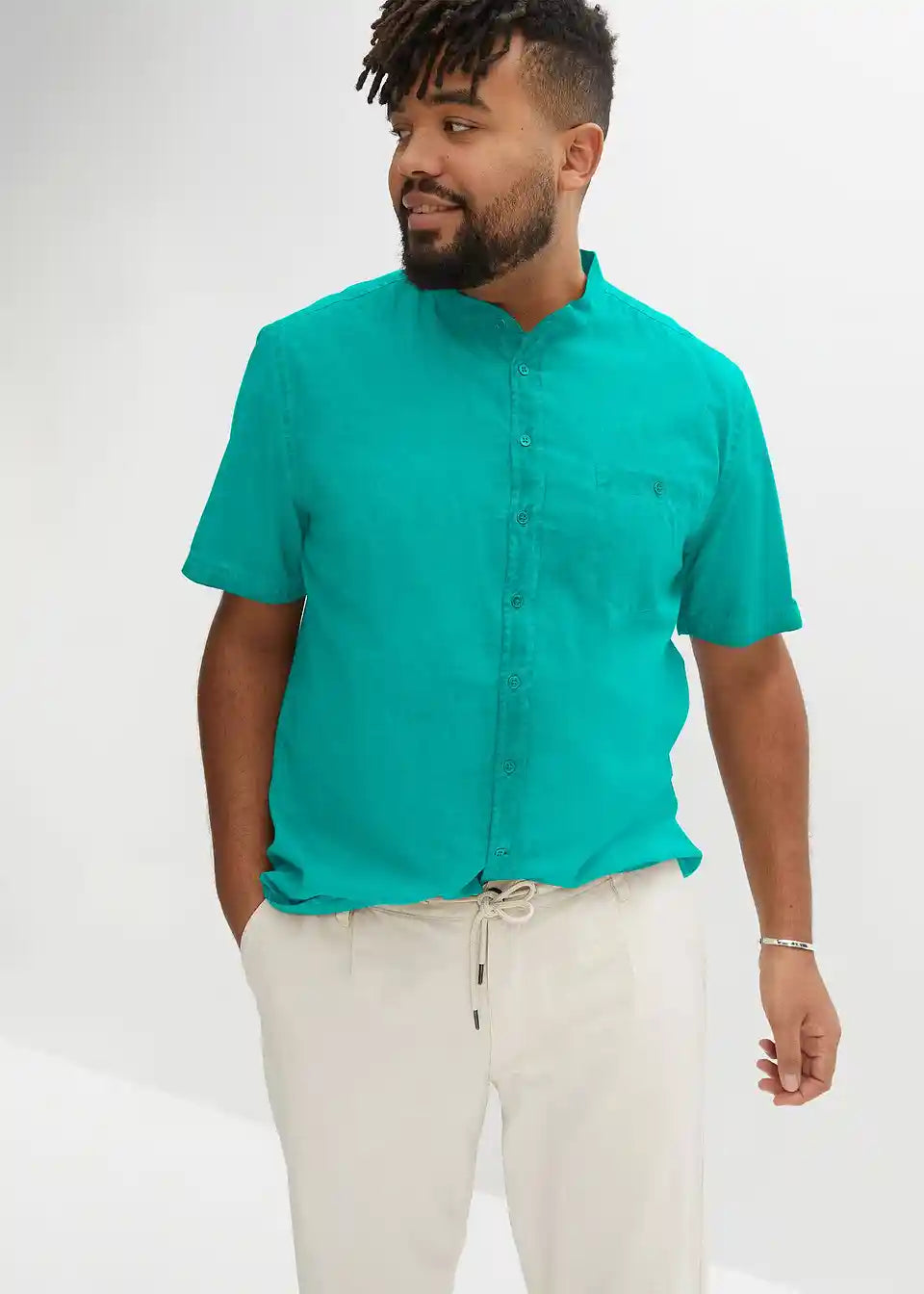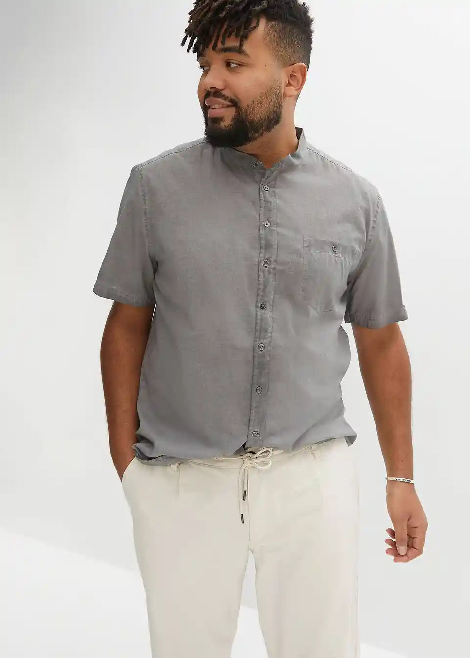 Čvrsta košulja kratkih rukava u vintage izgledu s uspravnim ovratnikom