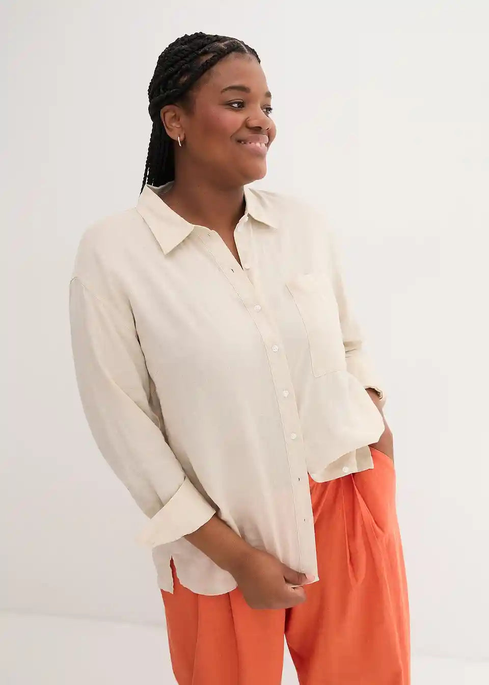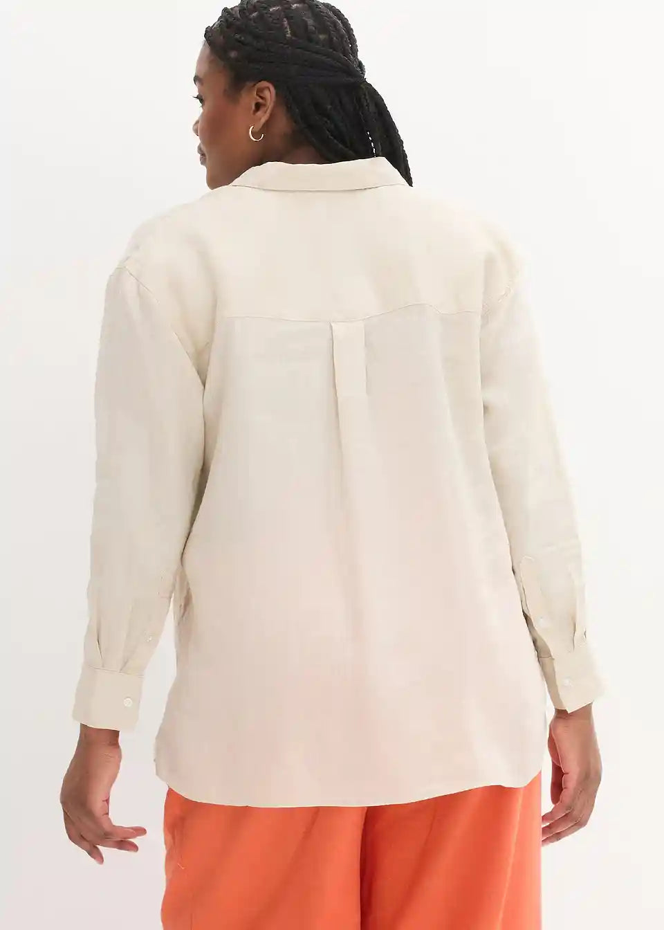 moderna lanena košulja s našivenim džepom, u trendi oversize kroju