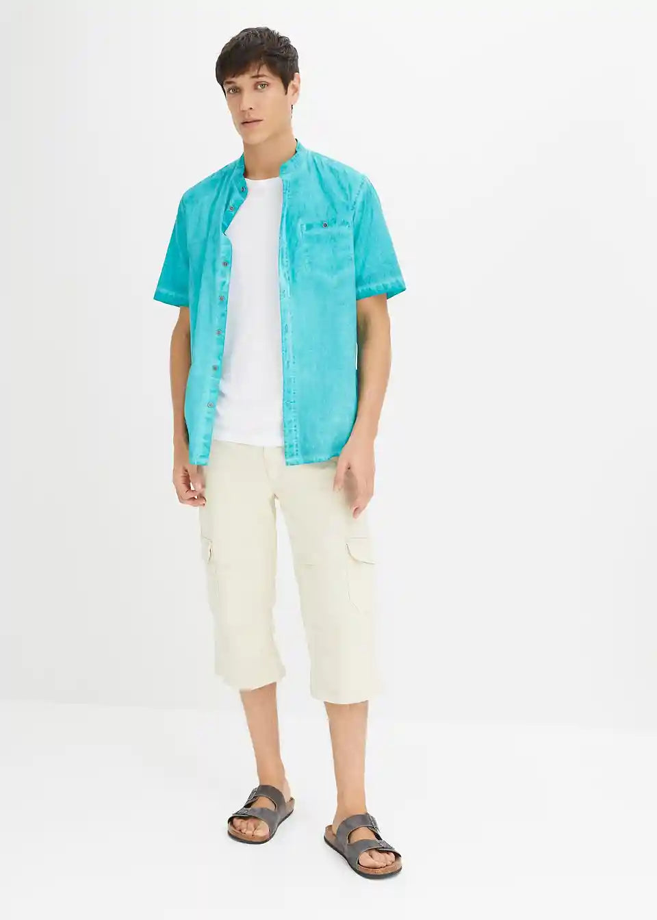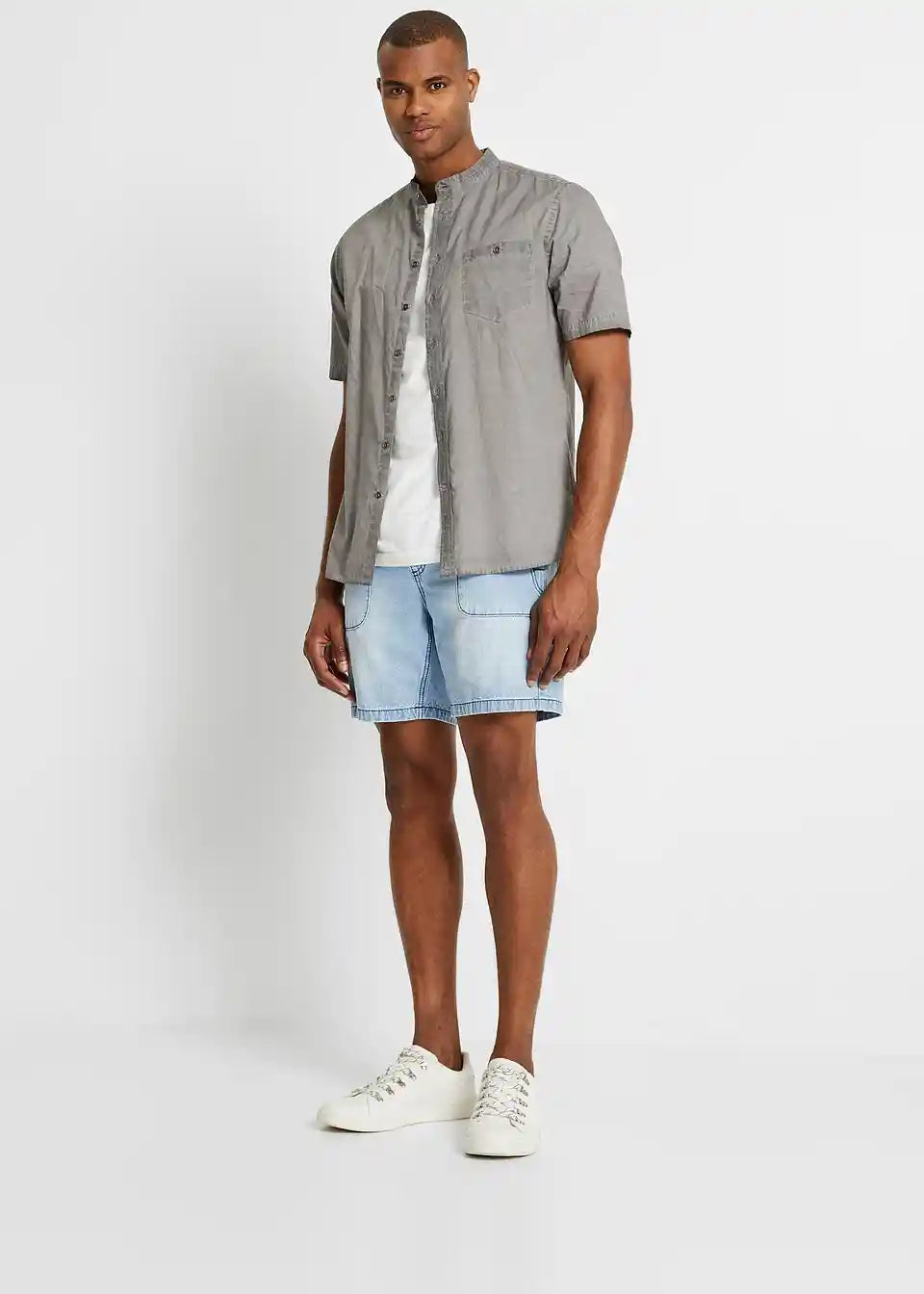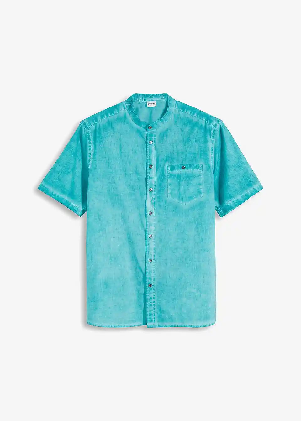 Robusna košulja s kratkim rukavima u Vintage stilu s uspravnim ovratnikom