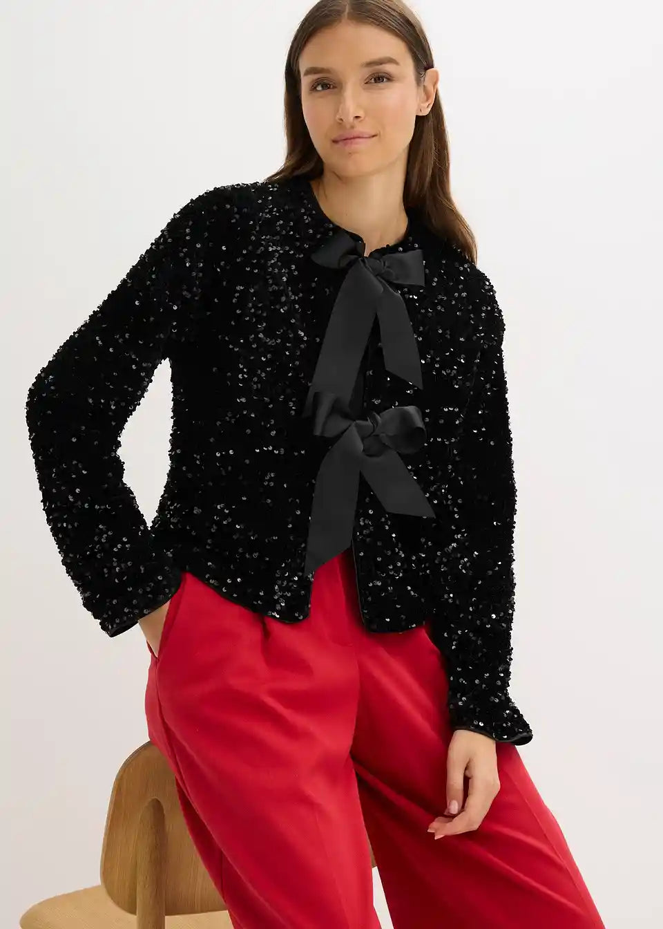 moderna kratka jakna s Pailletten sa Schleifen-Verschluss sprijeda. Podstava.