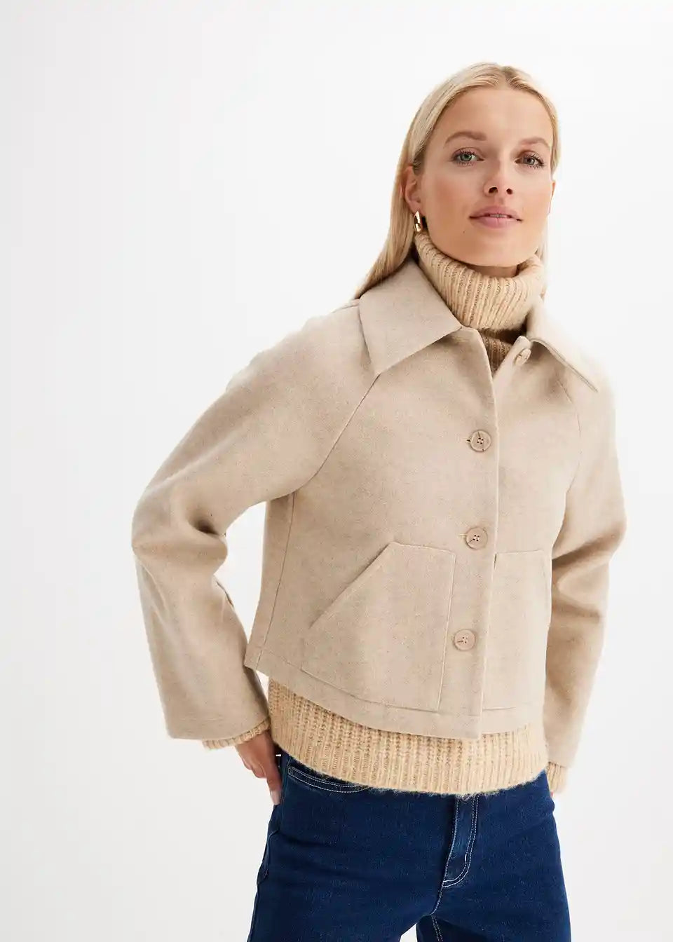 Moderna kratka jakna u vunenom izgledu