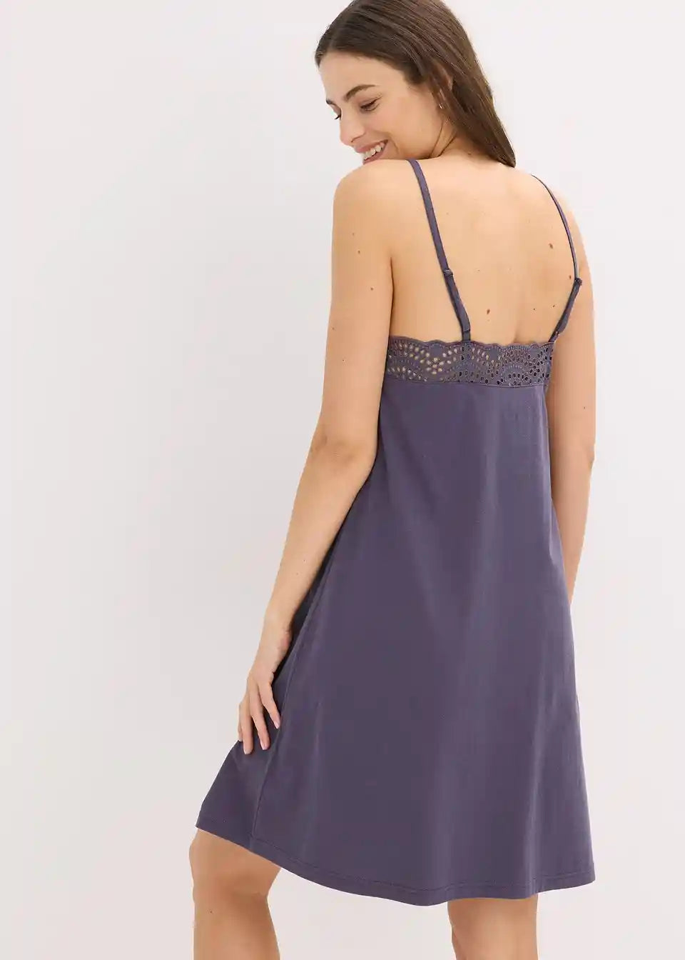 Kratka spavaćica s tankim naramenicama i nježnom čipkom