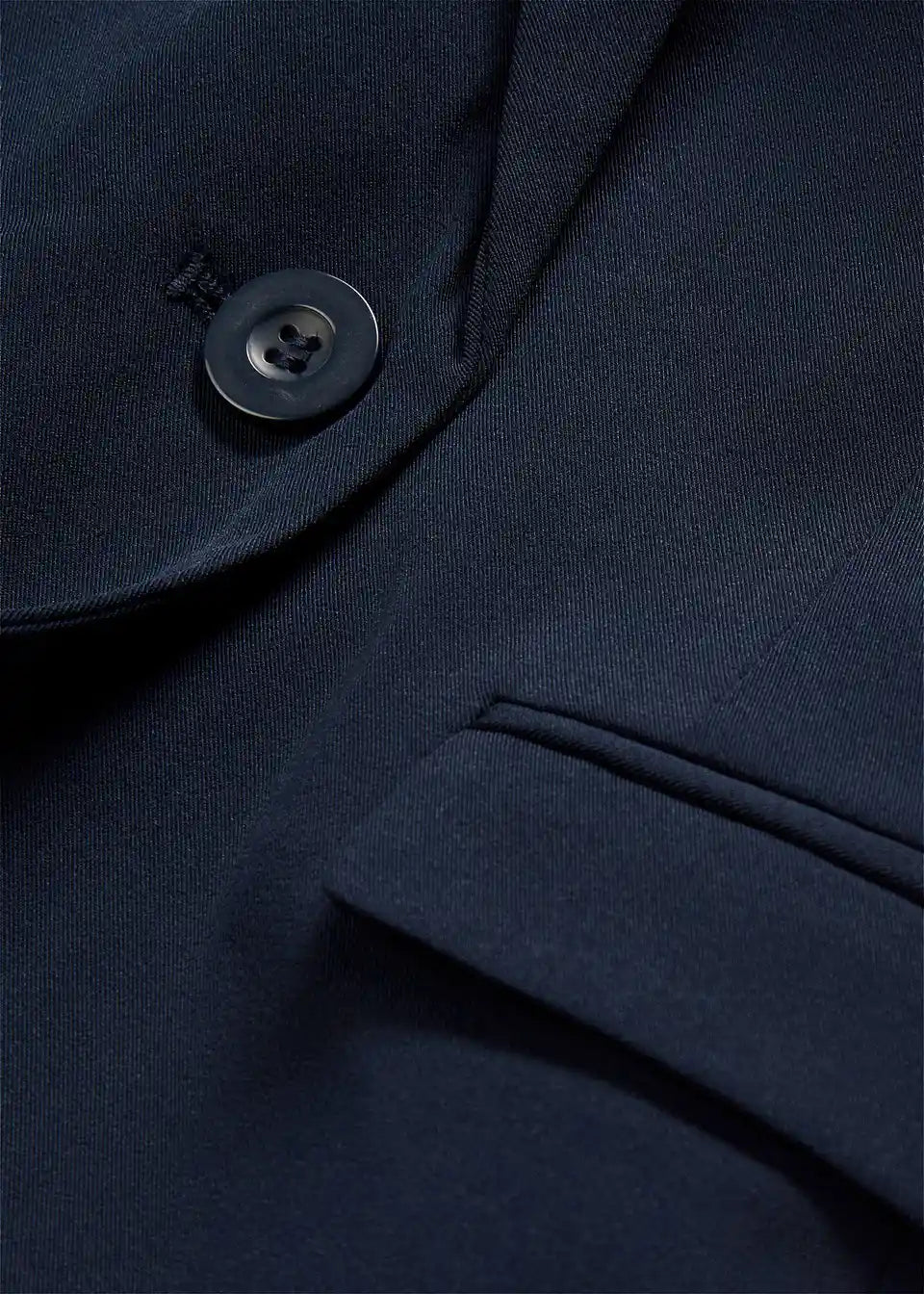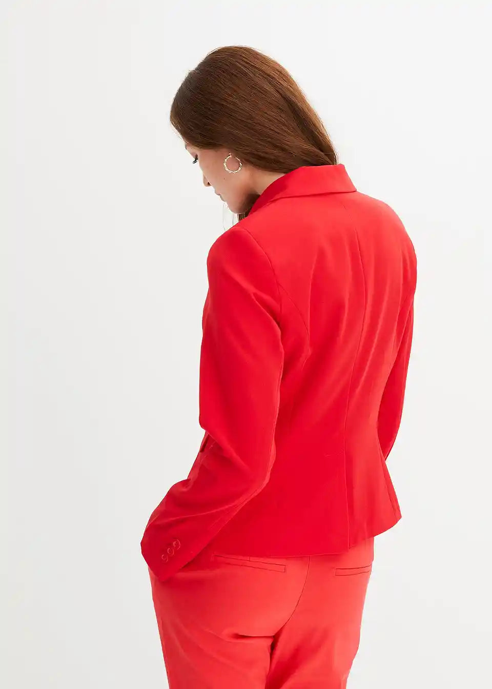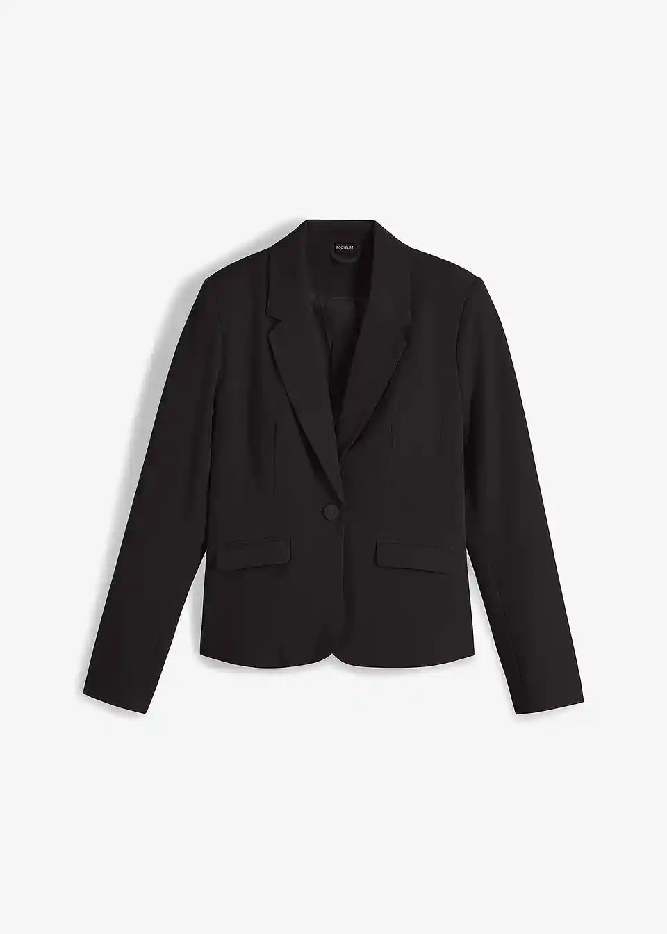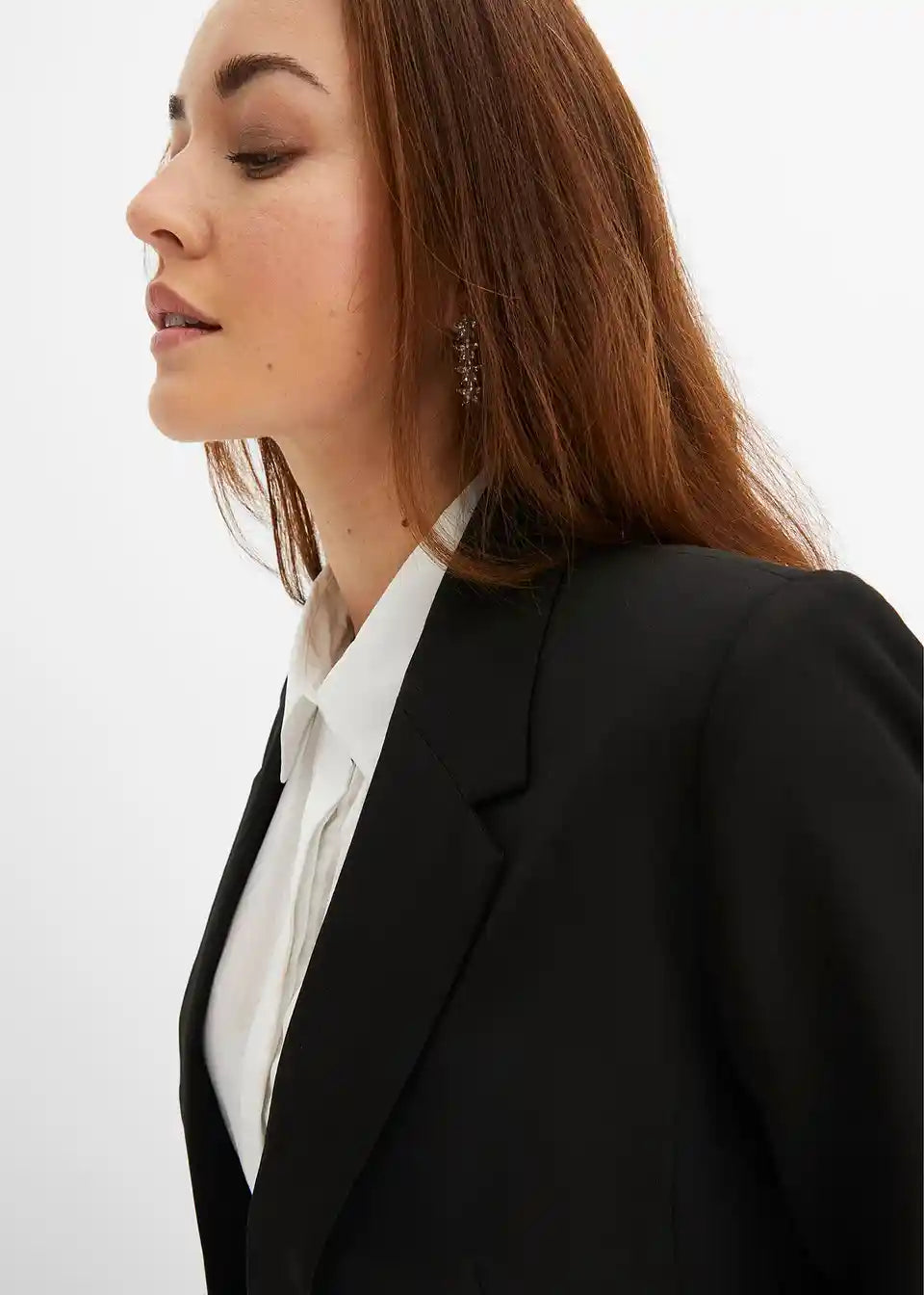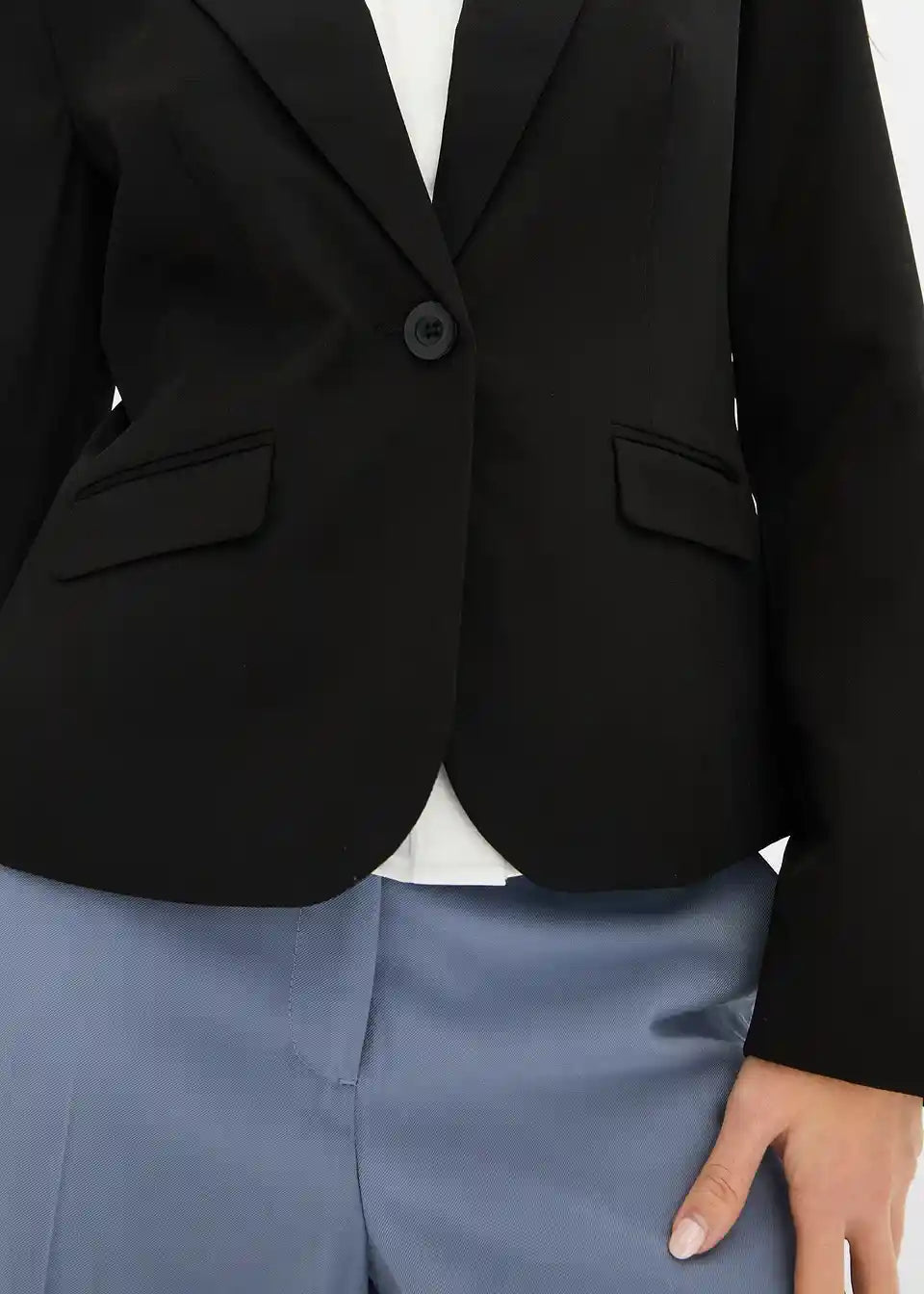 Ovaj kratki poslovni blejzer ima dva našivena džepa s preklopom i kopča se na gumb sprijeda. Duljina u veličini 38 cca 58 cm.