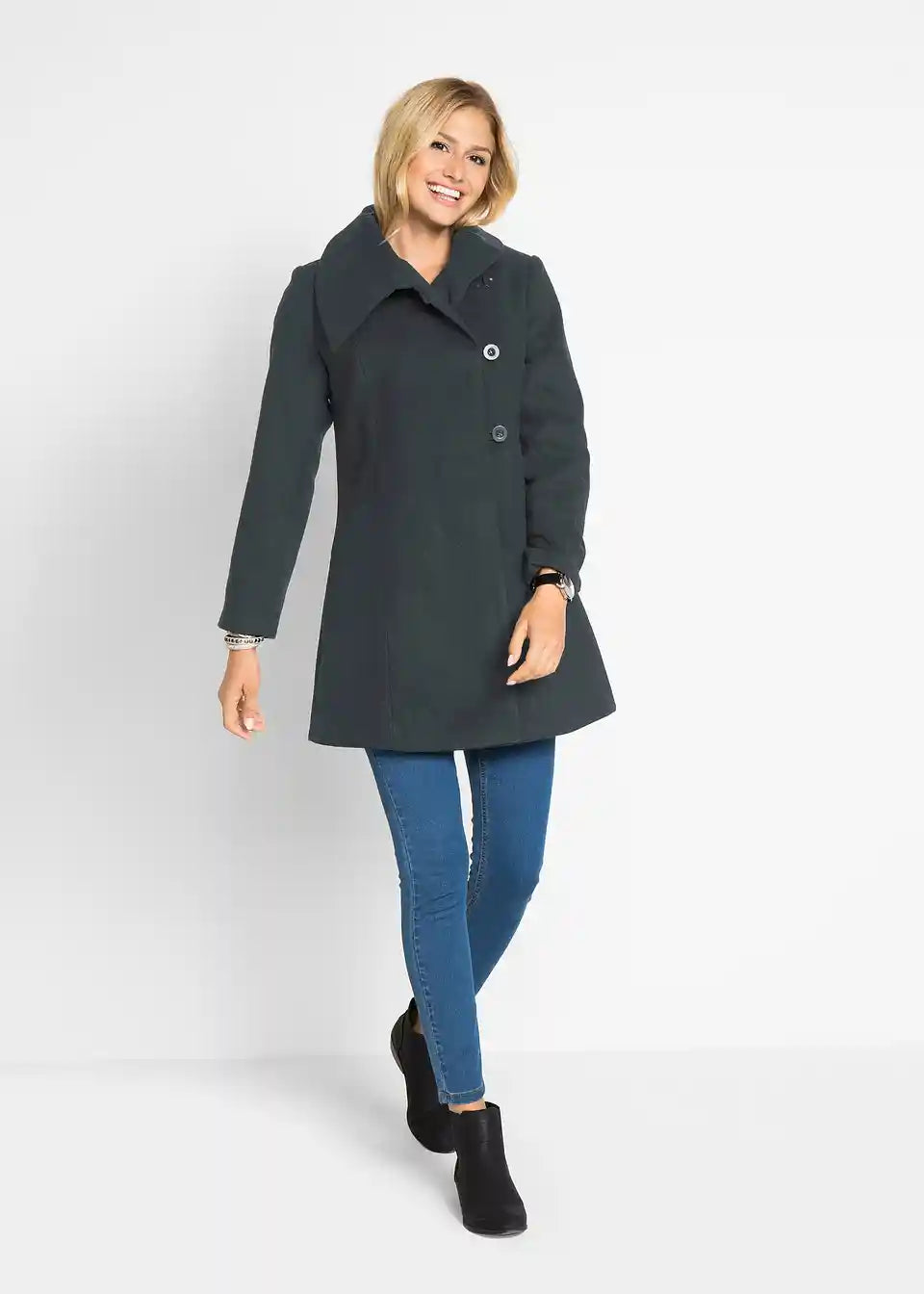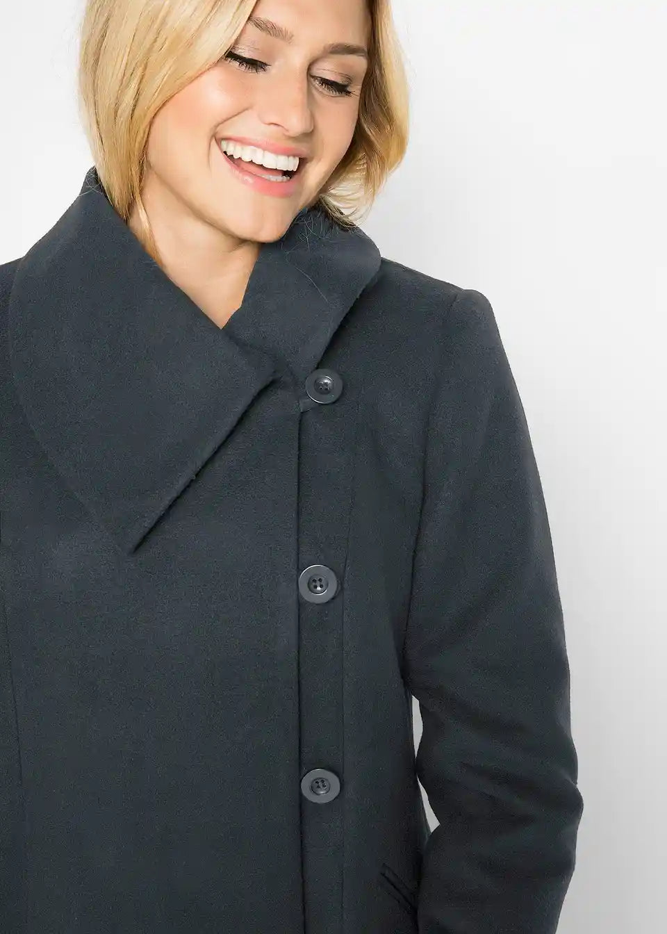 Ovaj moderni kaput iz kolekcije bpc pravi je svestrani komad za slobodno vrijeme i put do ureda. Mekani kaput ima upečatljiv široki ovratnik i može se zakopčati sprijeda s tri velika gumba. Odgovara različitim prilikama i može se kombinirati s ležernim i elegantnim odjevnim kombinacijama.