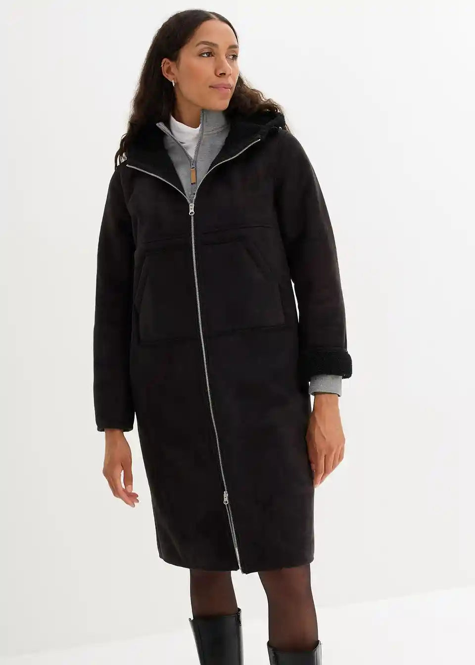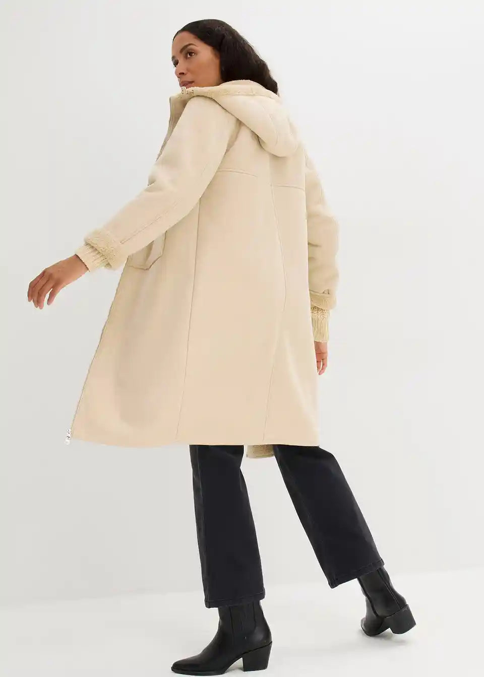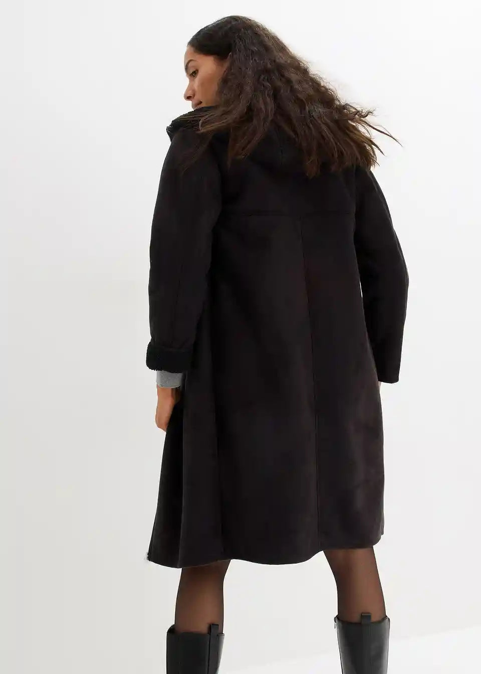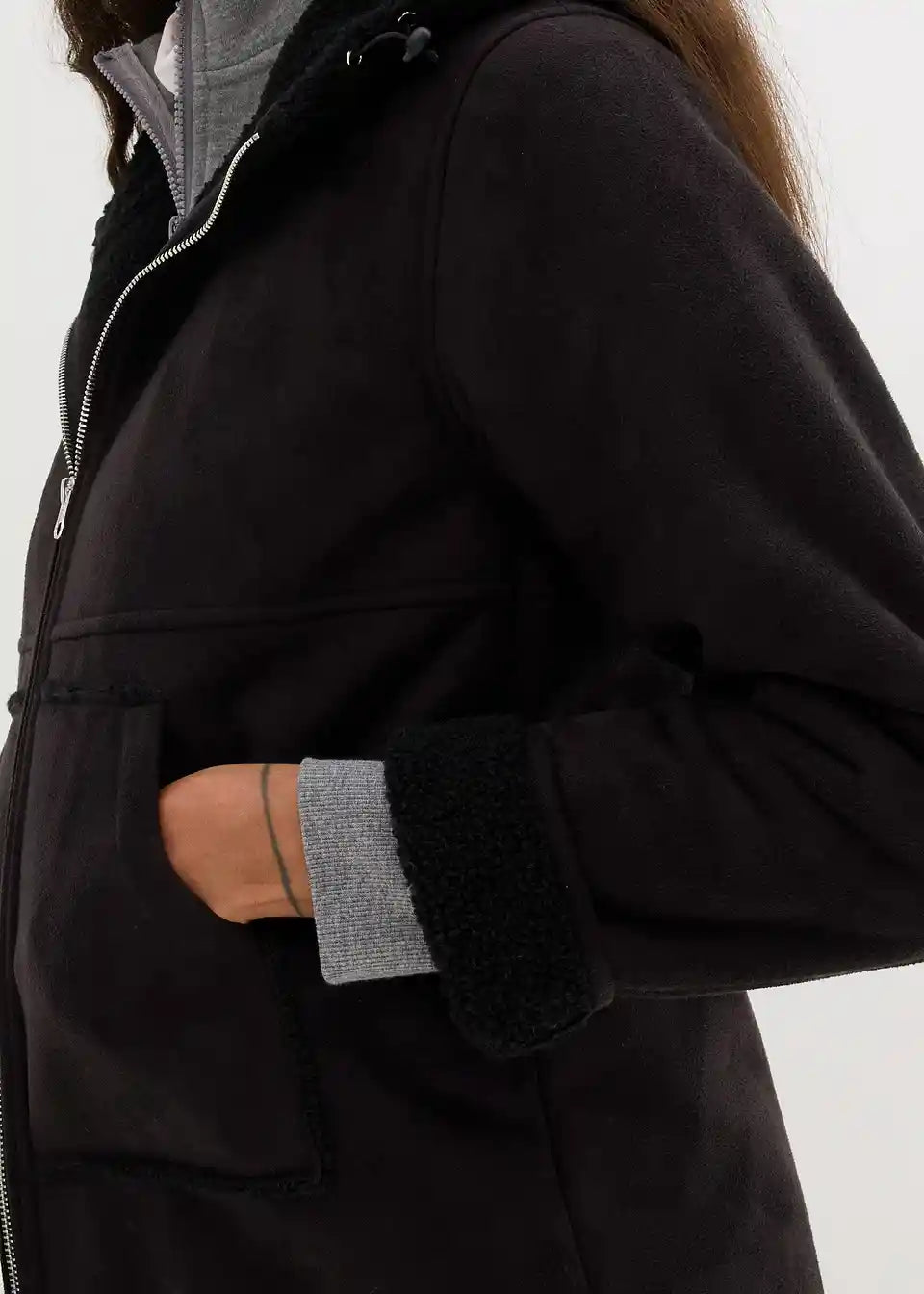 Oversized kaput od imitacije kože s Teddy podstavom