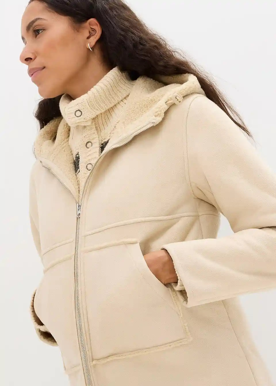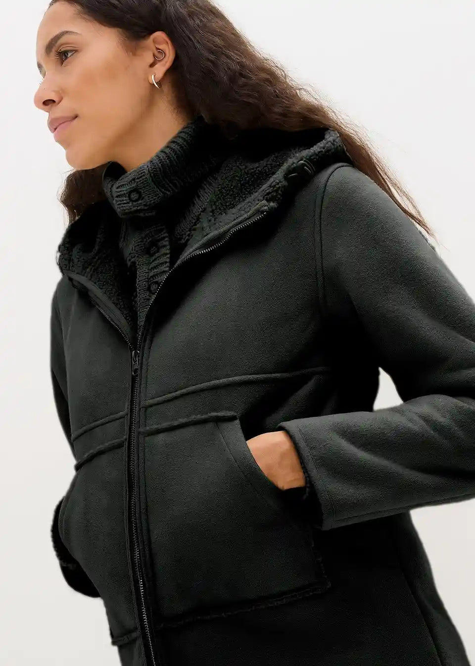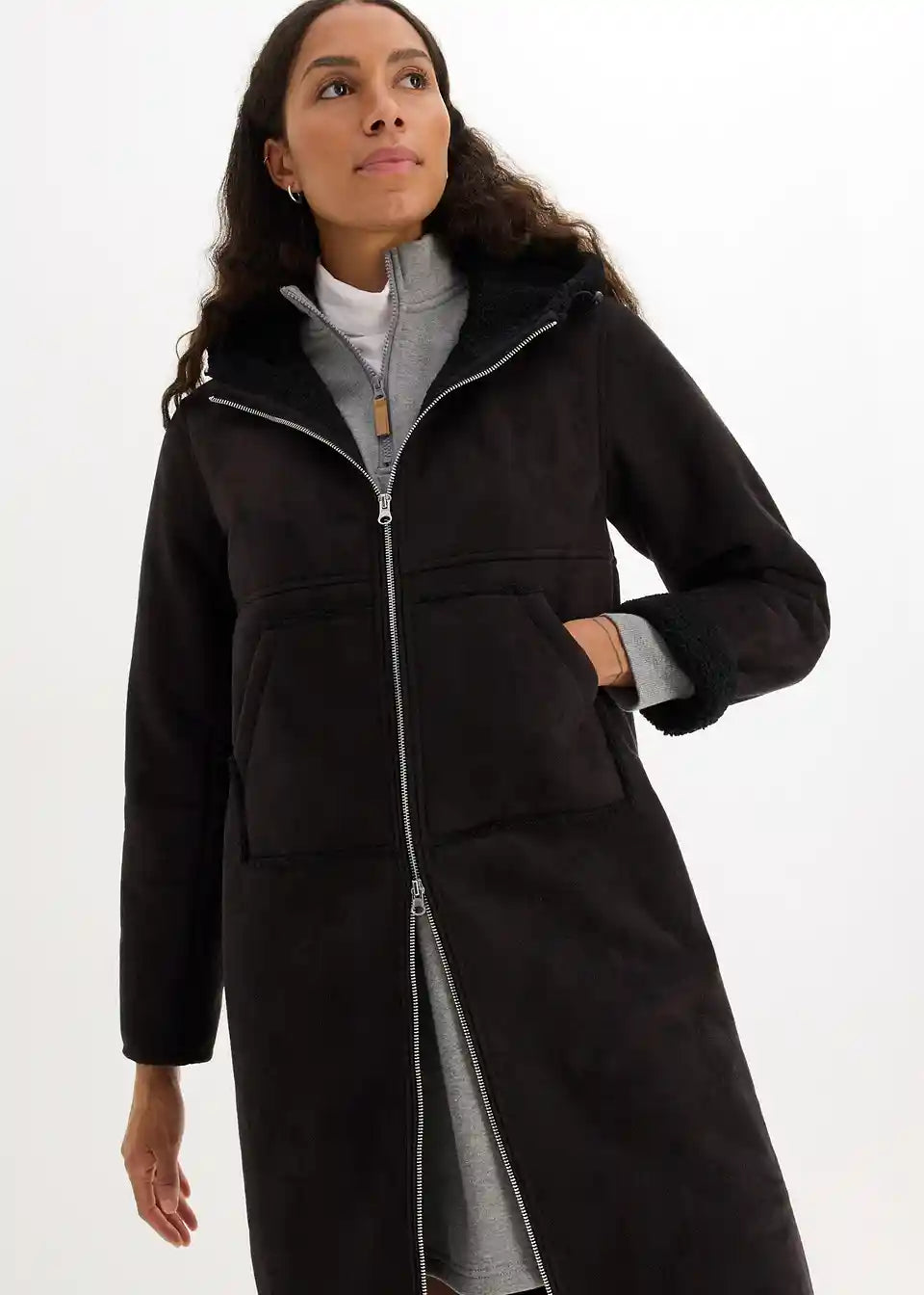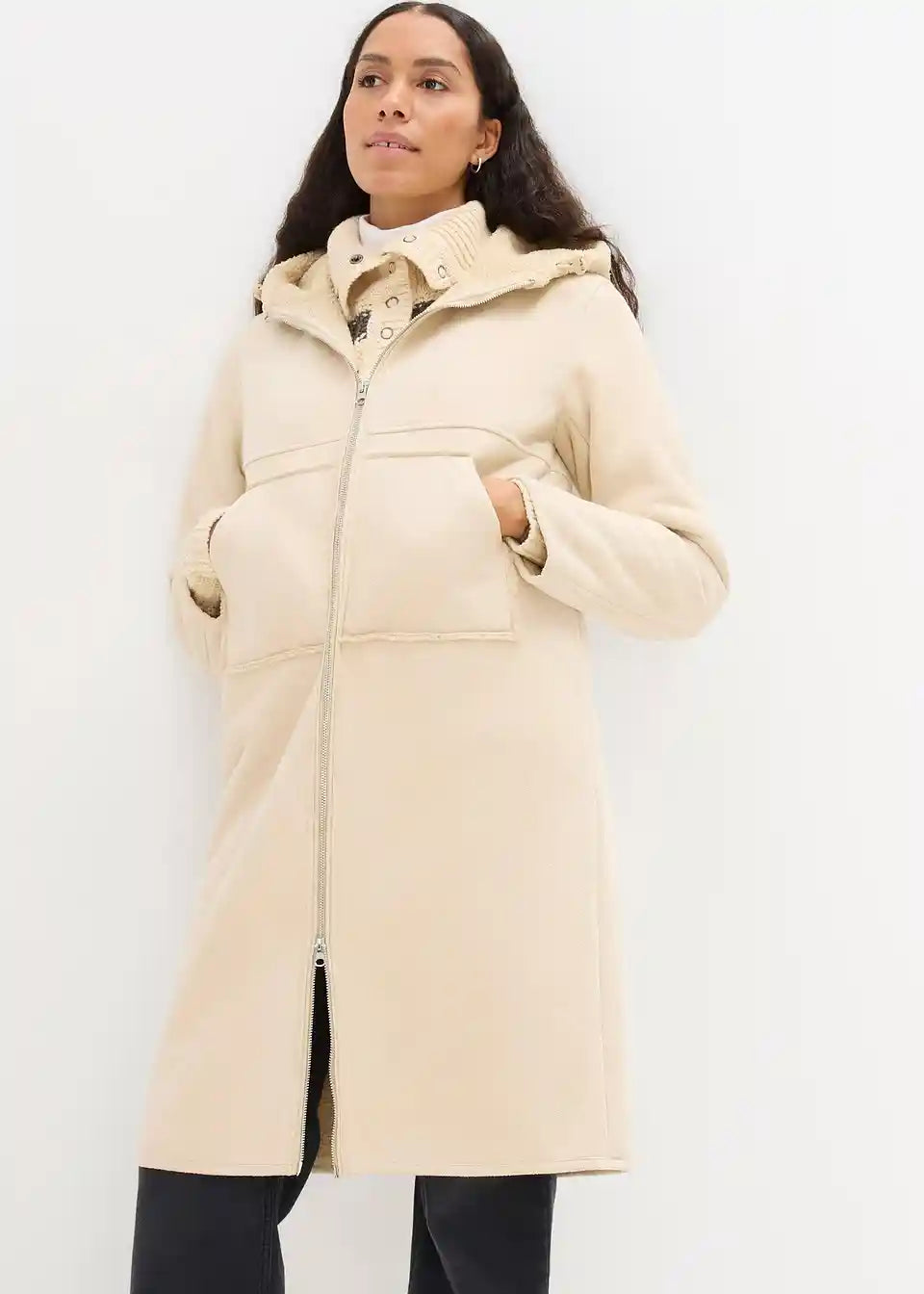 Oversized kaput od imitacije kože s Teddy podstavom