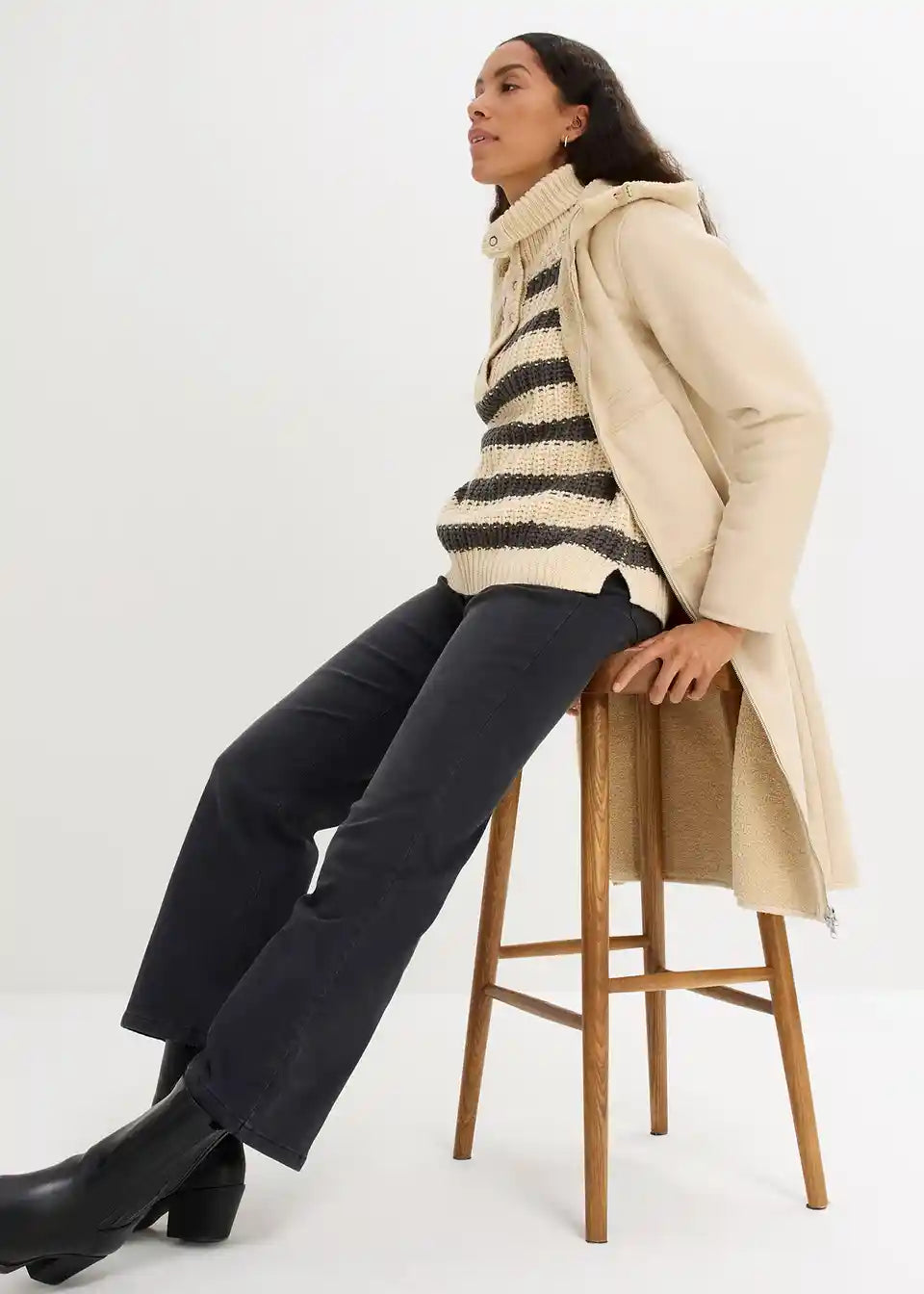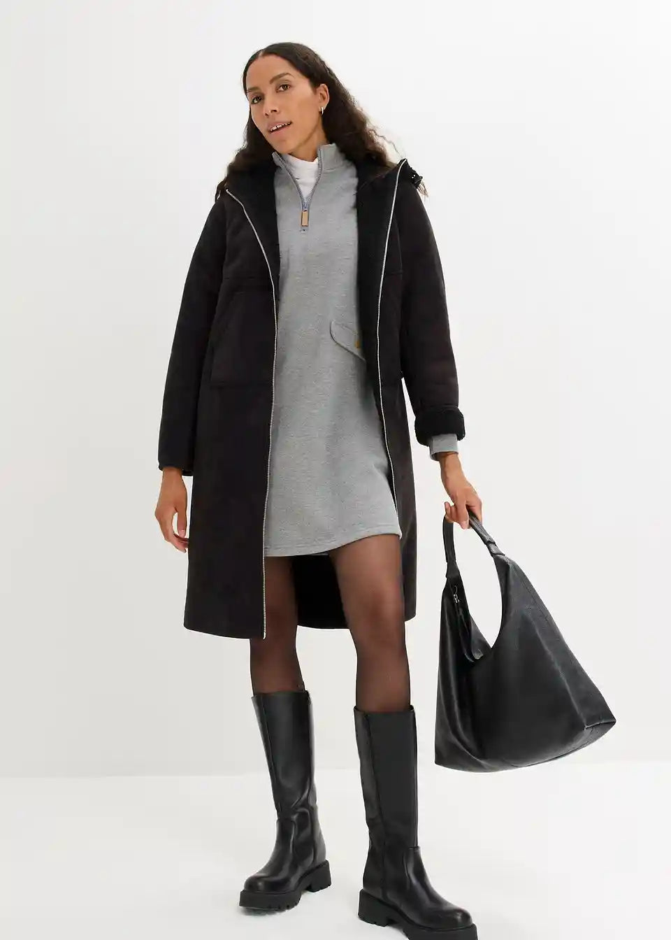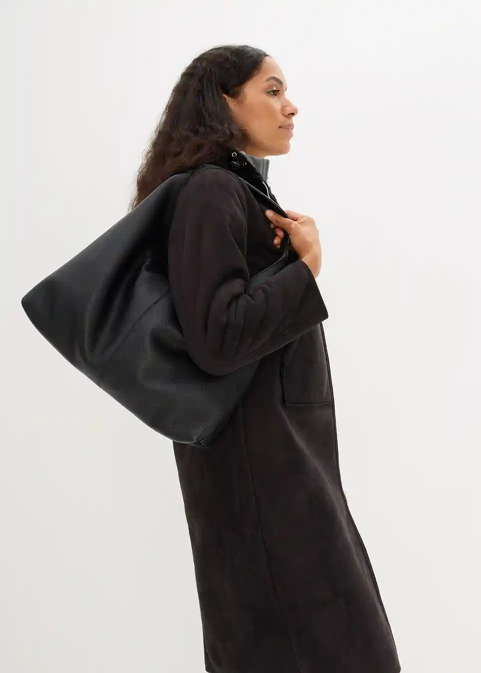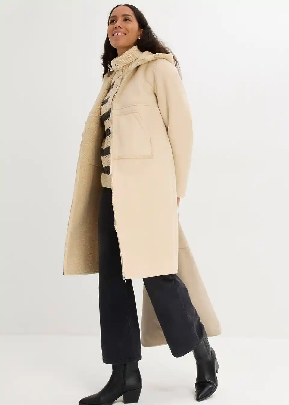 Oversized kaput od imitacije kože s Teddy podstavom