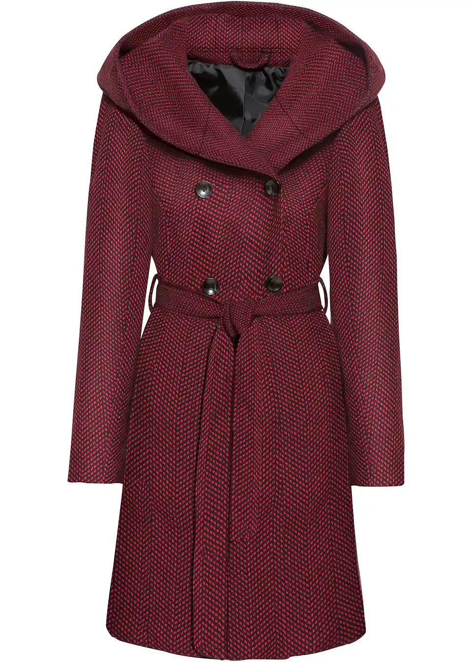 Lijepi kratki kaput s kapuljačom i pojasom za vezanje