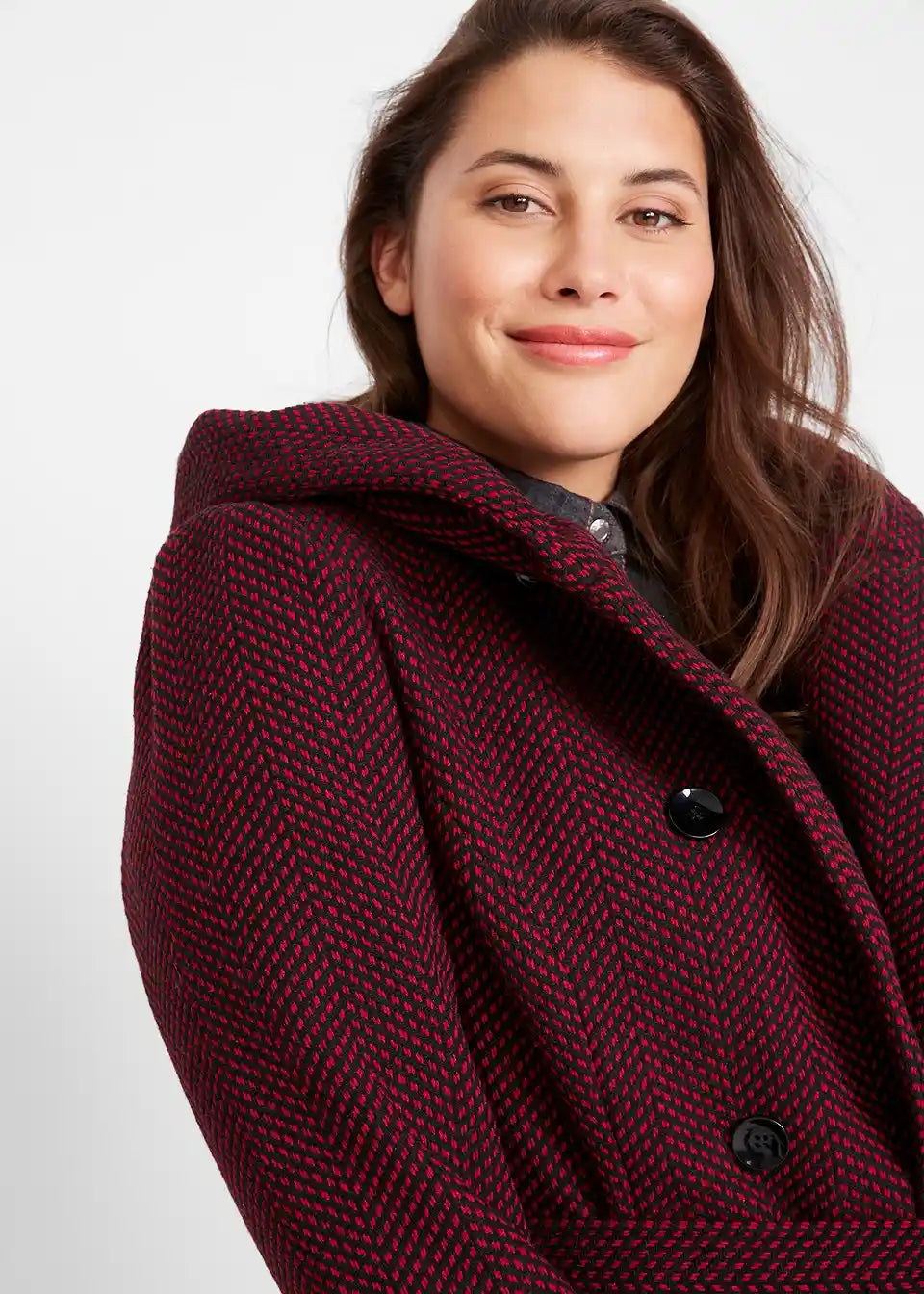 Velika kapuljača pruža udobnost i moderan izgled ovom dvostrukom kratkom kaputu s vunom. Model s potpisom John Baner zatvara se širokim pojasom za vezanje u struku. Opušteni kaput s vunom svestran je pratitelj koji se savršeno uklapa u moderne stilove s trapericama i čizmama.