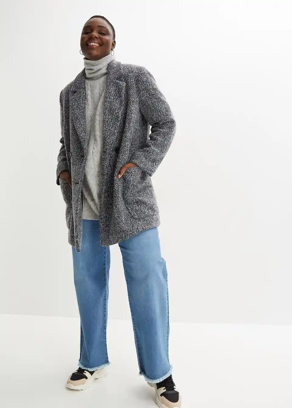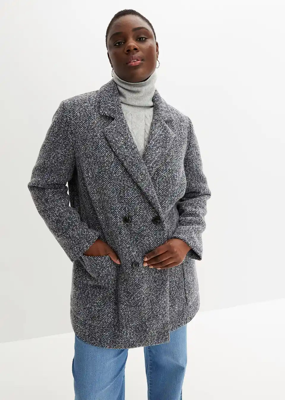 Dvoredni kratki kaput u meliranom izgledu vune s udobnim osjećajem prilikom nošenja