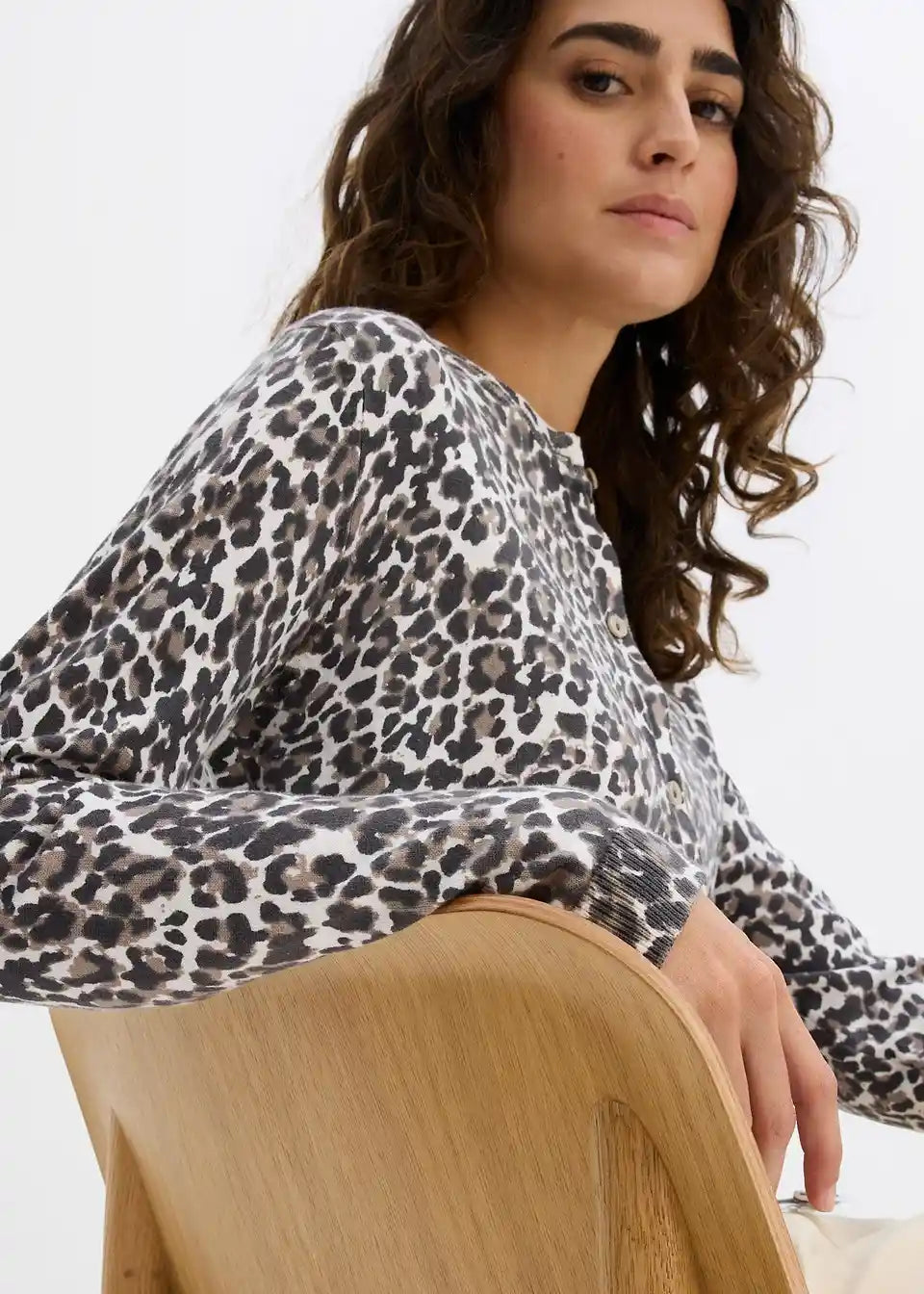 Ležerni kardigan od fine pletenine s leopard uzorkom i kopčanjem na gumbe