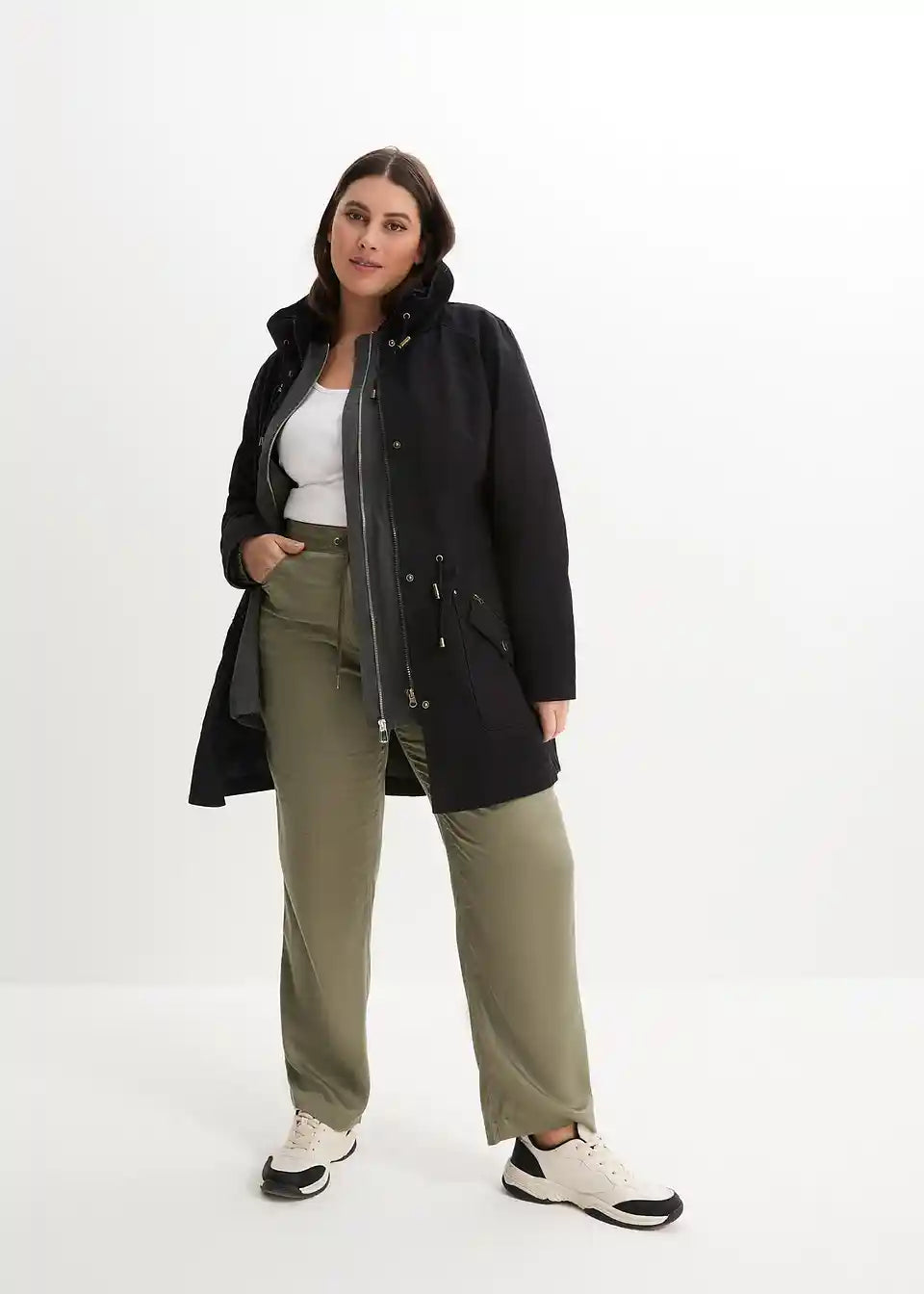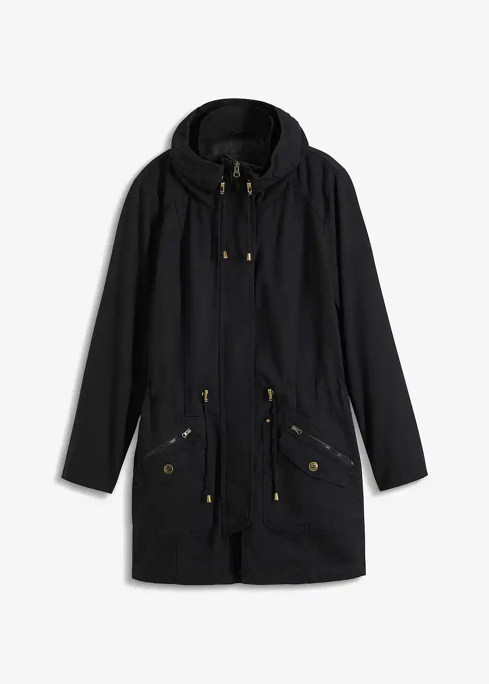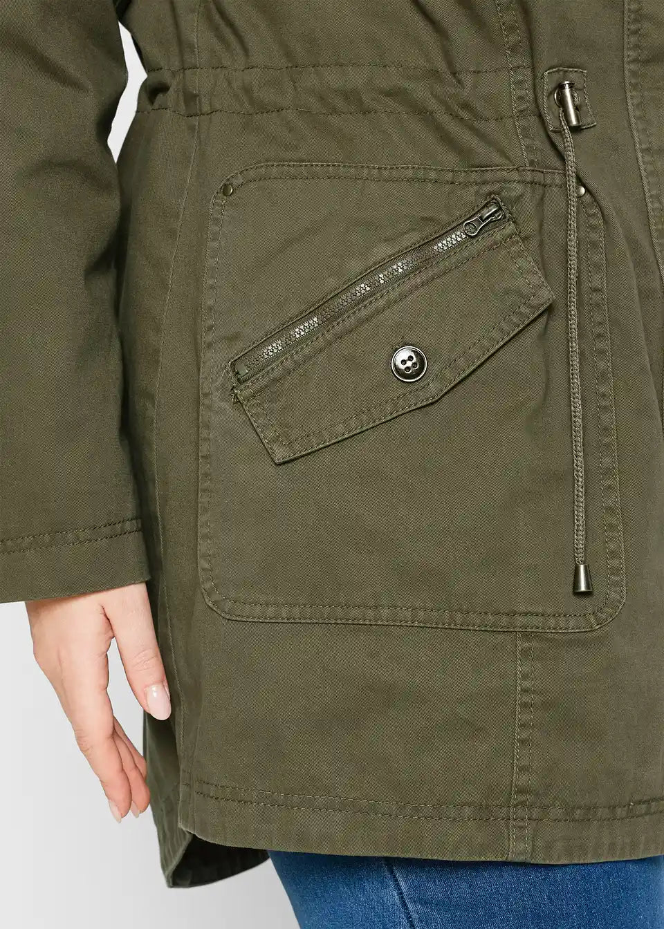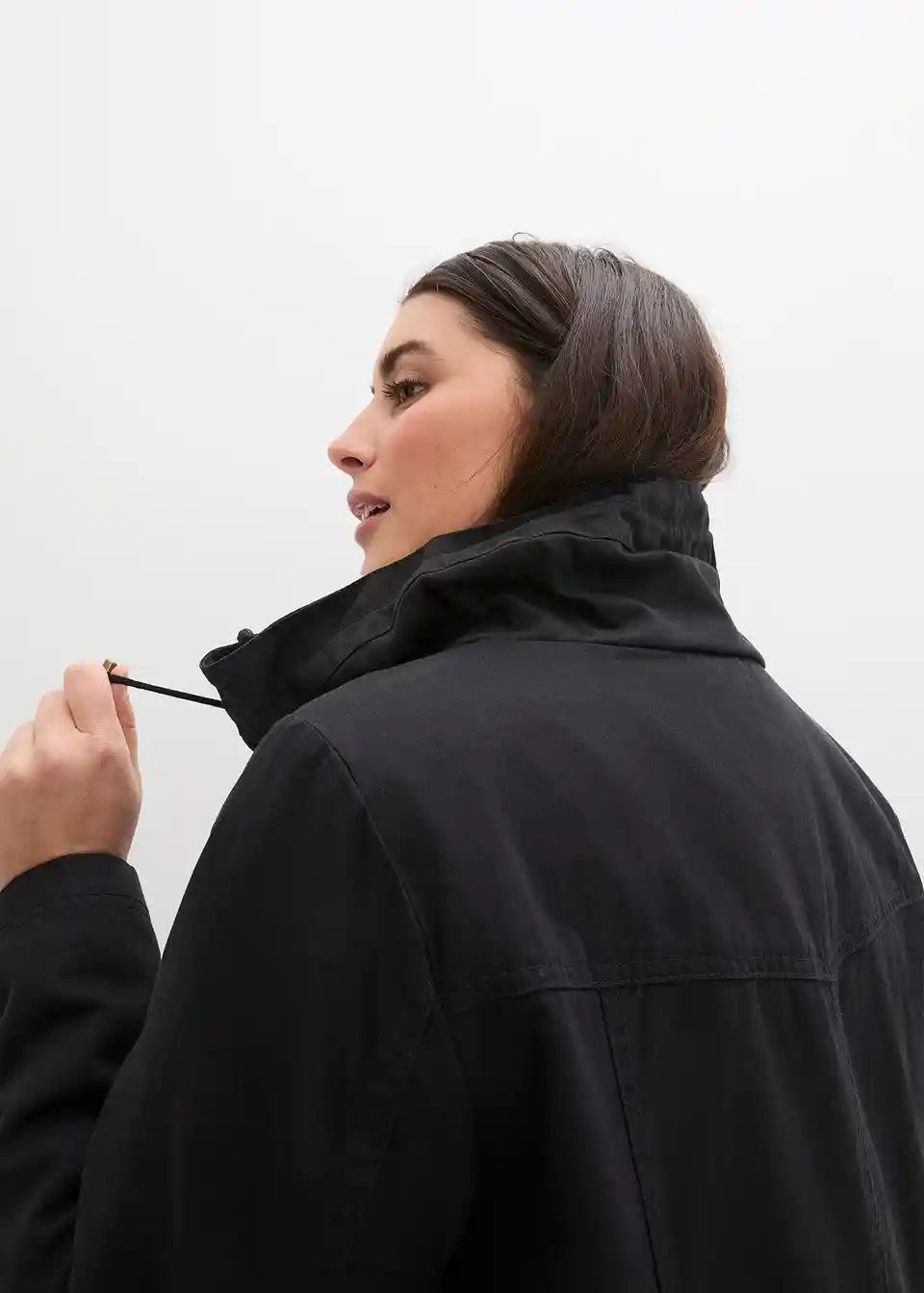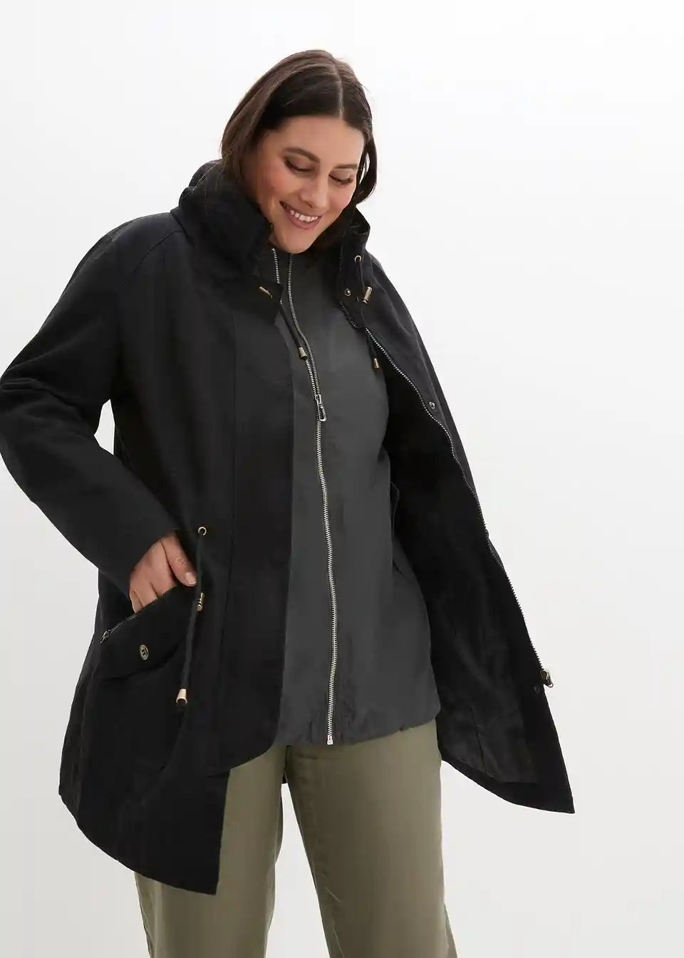 Ova ležerna jakna marke bpc praktičan je svestrani komad za prijelazna razdoblja. Izdvaja se svojim brojnim funkcionalnim detaljima: sprijeda se ugodna jakna zatvara patentnim zatvaračem. Stajaći ovratnik i širina struka mogu se regulirati pomoću vezica. Veliki džepovi s poklopcem i patentnim zatvaračem praktični su i ujedno moderni detalji.