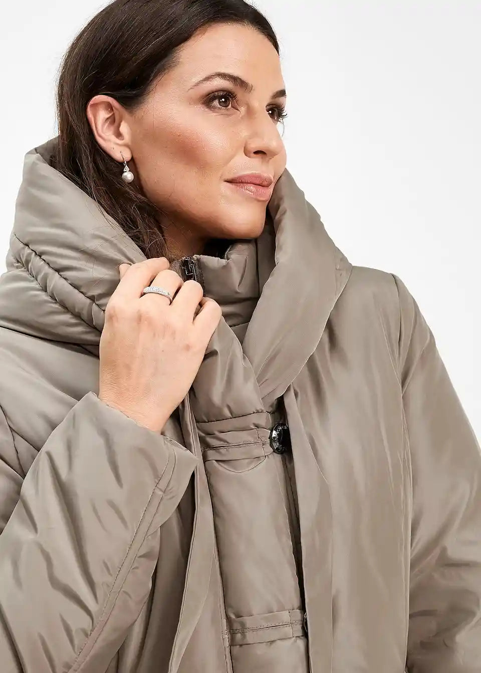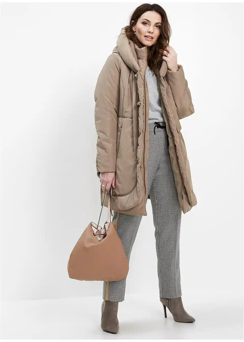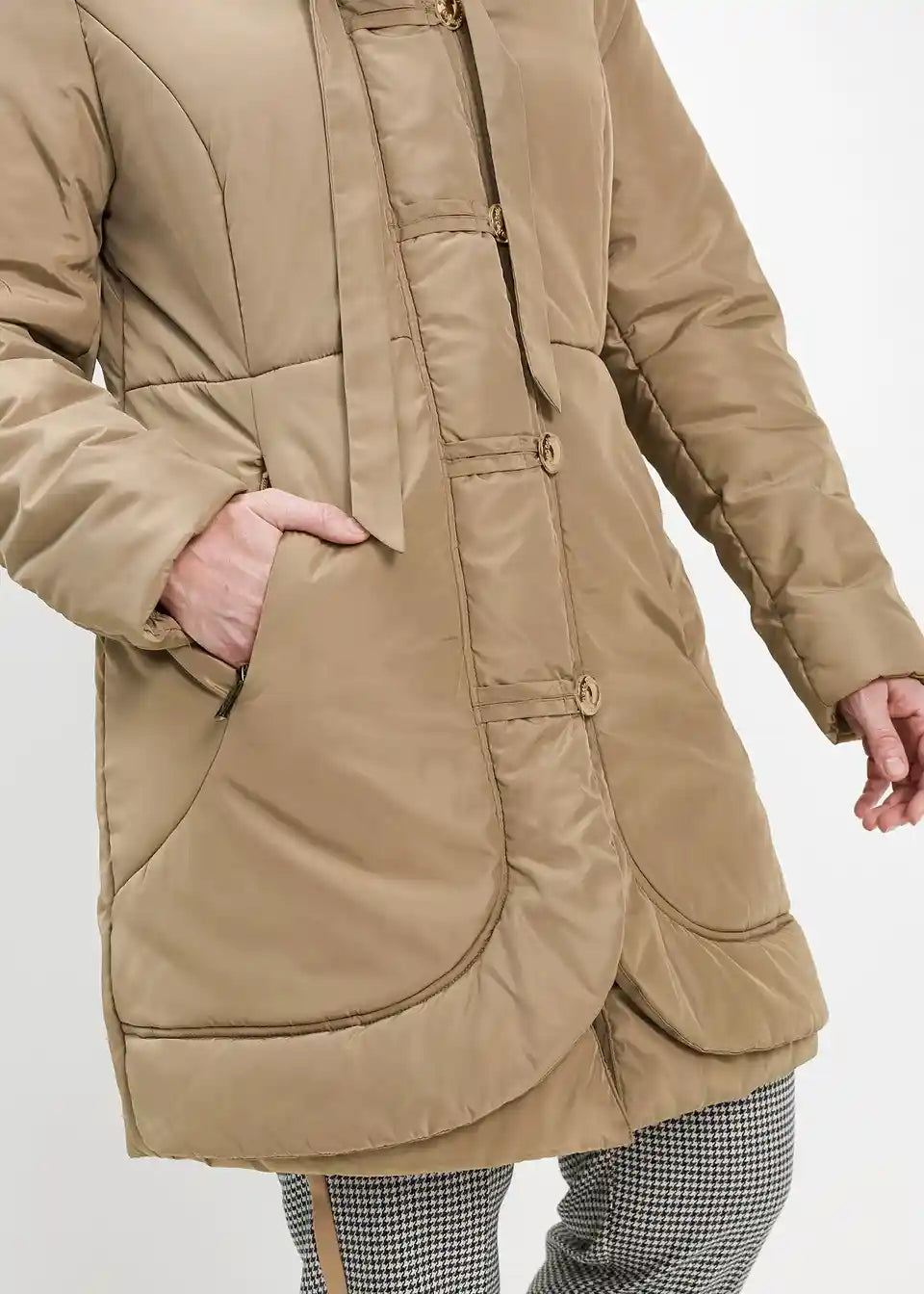 S bočnim džepovima i vidljivim gumbima, elegantna unutarnja obrada, patentni zatvarač, duljina otprilike 90 cm u svim veličinama, periv u perilici.