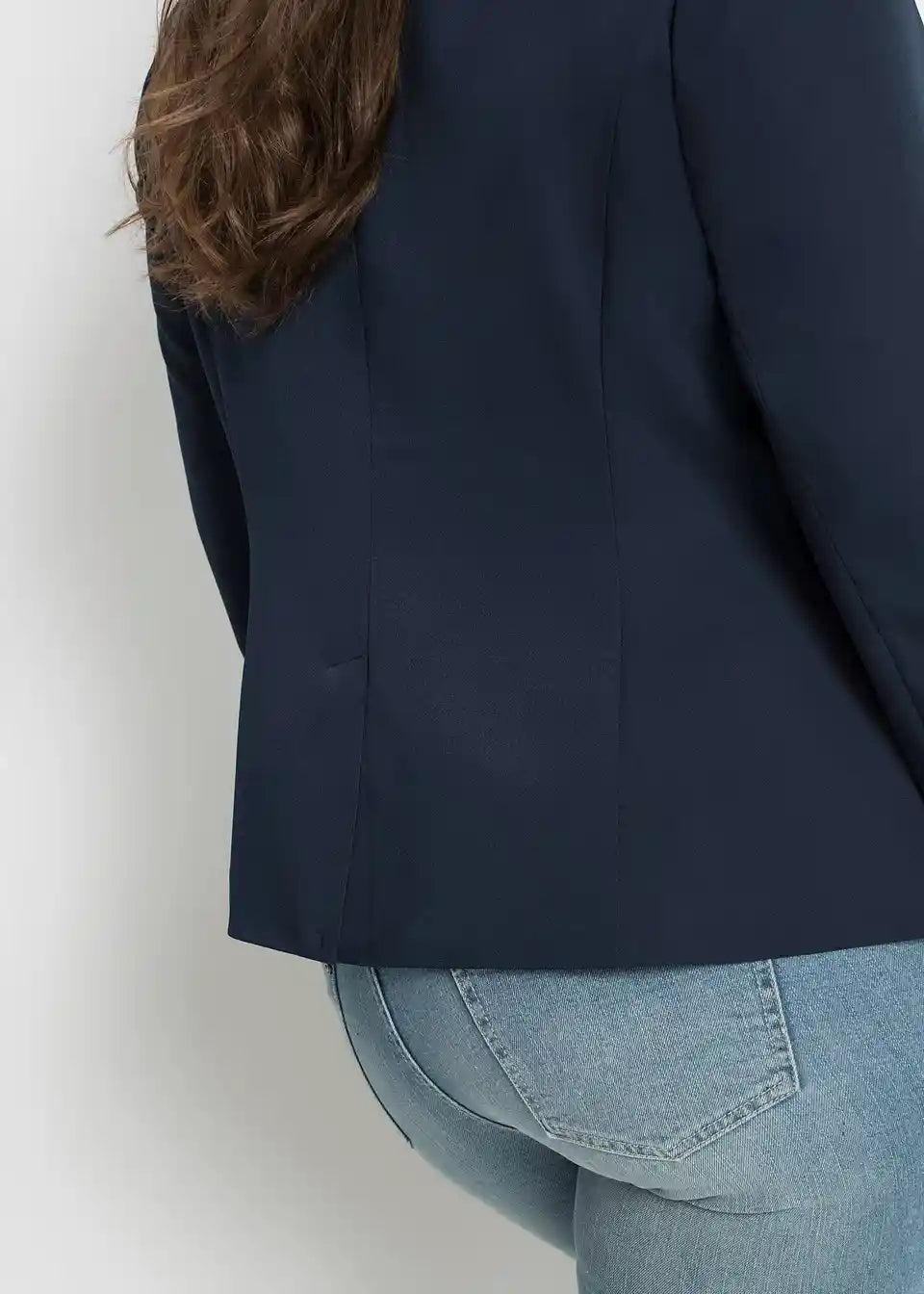 Ovaj kratki business sako ima dva našivena džepa na preklop i zakopčava se gumbom sprijeda. Duljina u vel. 38 cca 58 cm.
