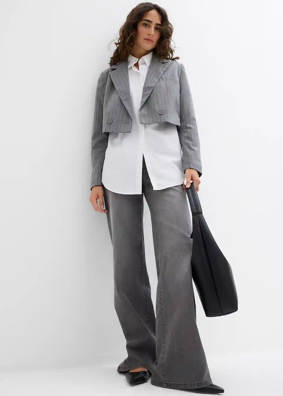 Moderan cropped sako s rever ovratnikom i kopčanjem na gumb
