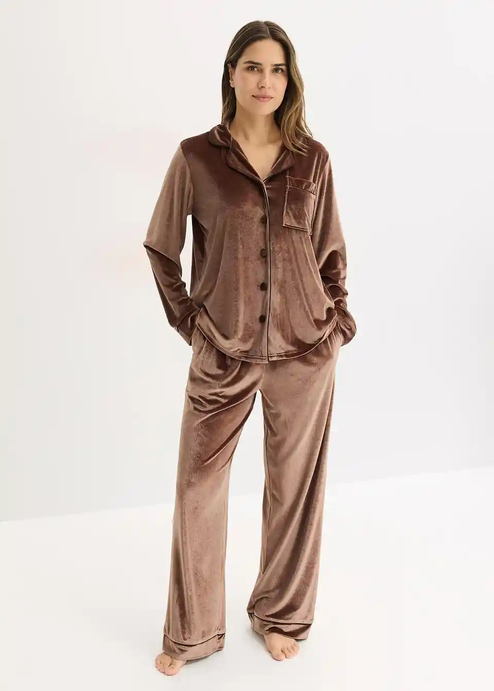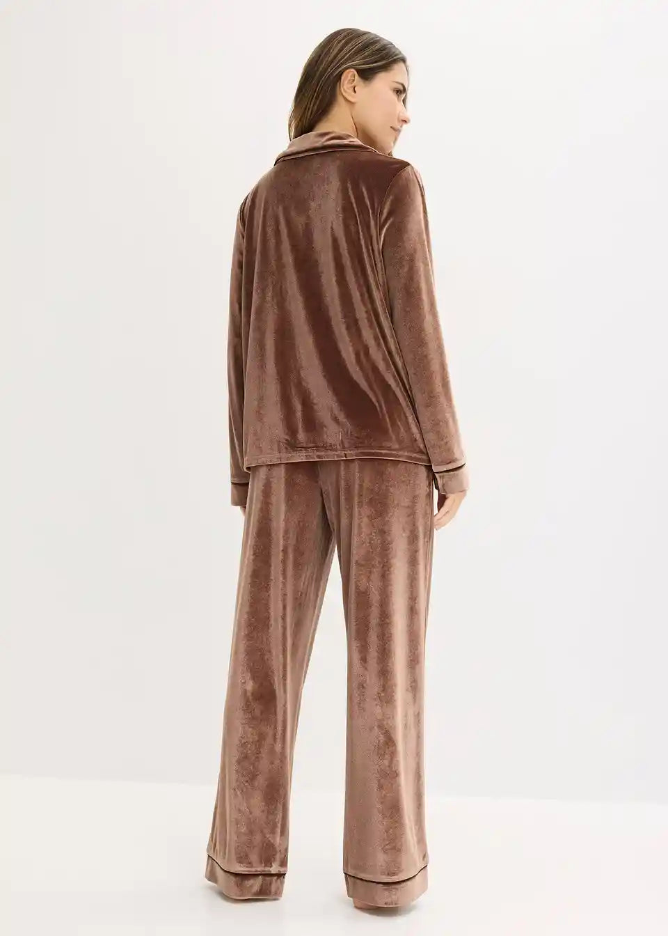 Kućni komplet od baršuna s rever-ovratnikom i bočnim uvučenim džepovima na hlačama