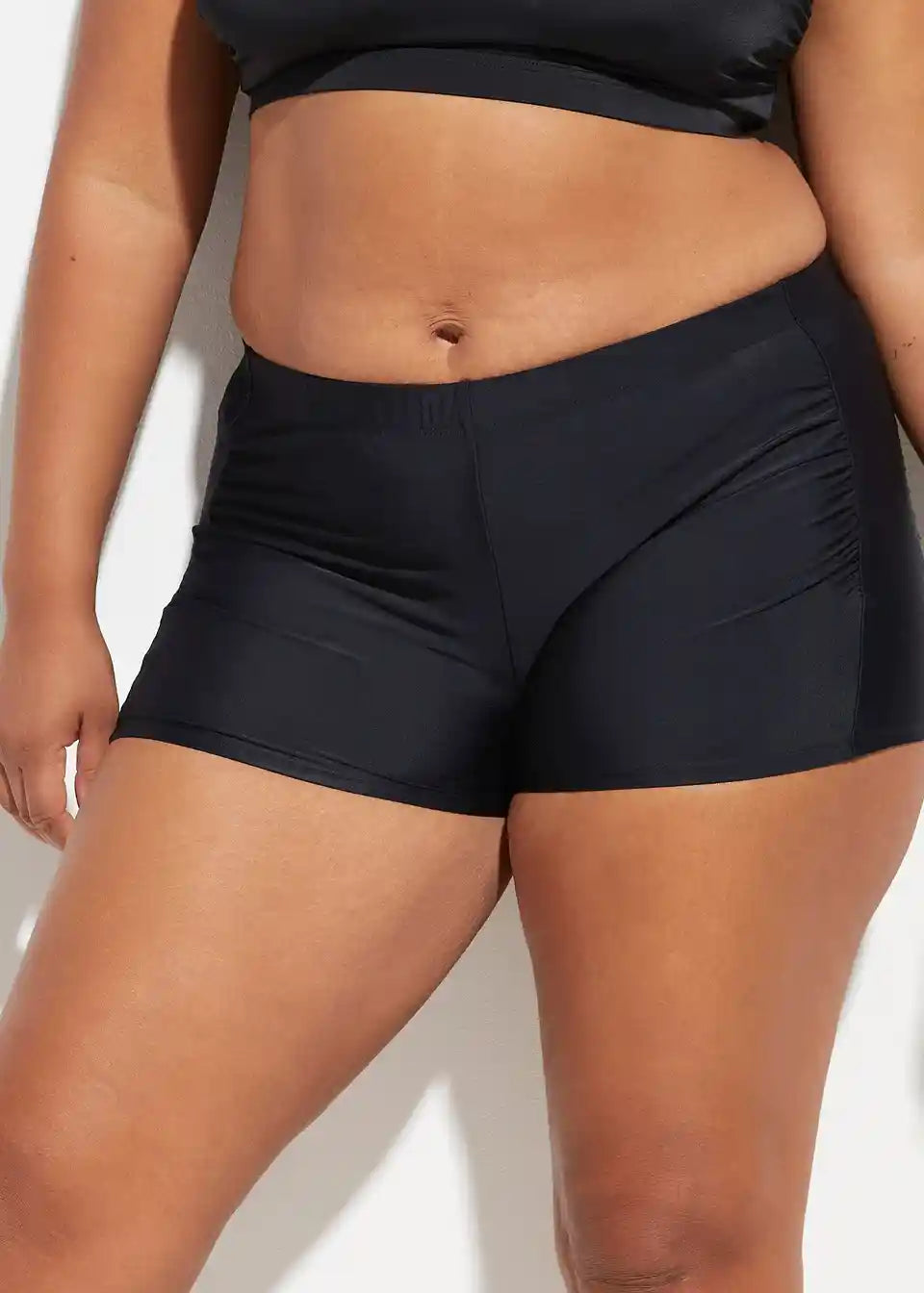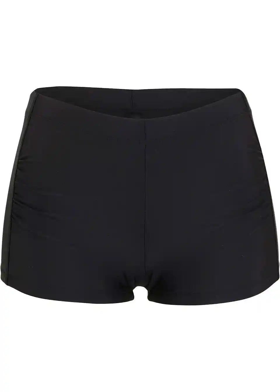 Ove Bikini gaćice od bpc selection u elegantnom obliku pantyja oduševljavaju svojom jasnom siluetom i širokim pojasom za izvrsno pristajanje. Male nabore uz oba bočna šava čine privlačne detalje. Umetak u predjelu međunožja dovršava udobne Bikini gaćice. Model omogućuje individualno sastavljanje kupaćih kostima i posebno je prikladan za žene s tipom figure H.