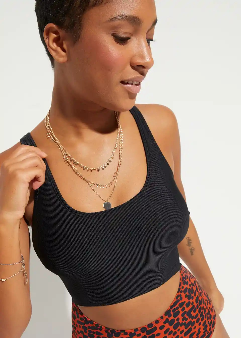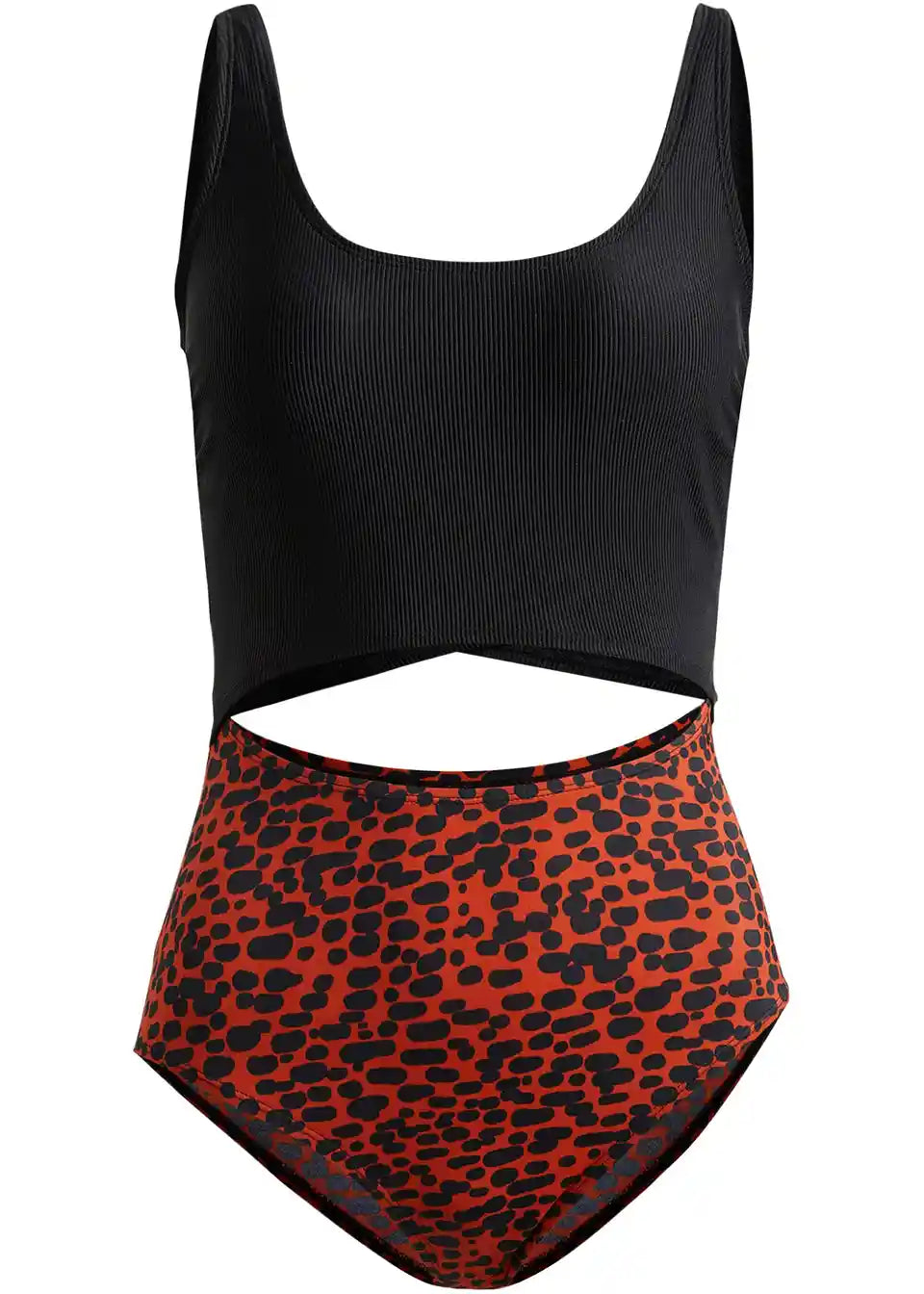 Ženski kupaći kostim djelomično izrađen od rebrastog materijala s modernim rješenjem za leđa