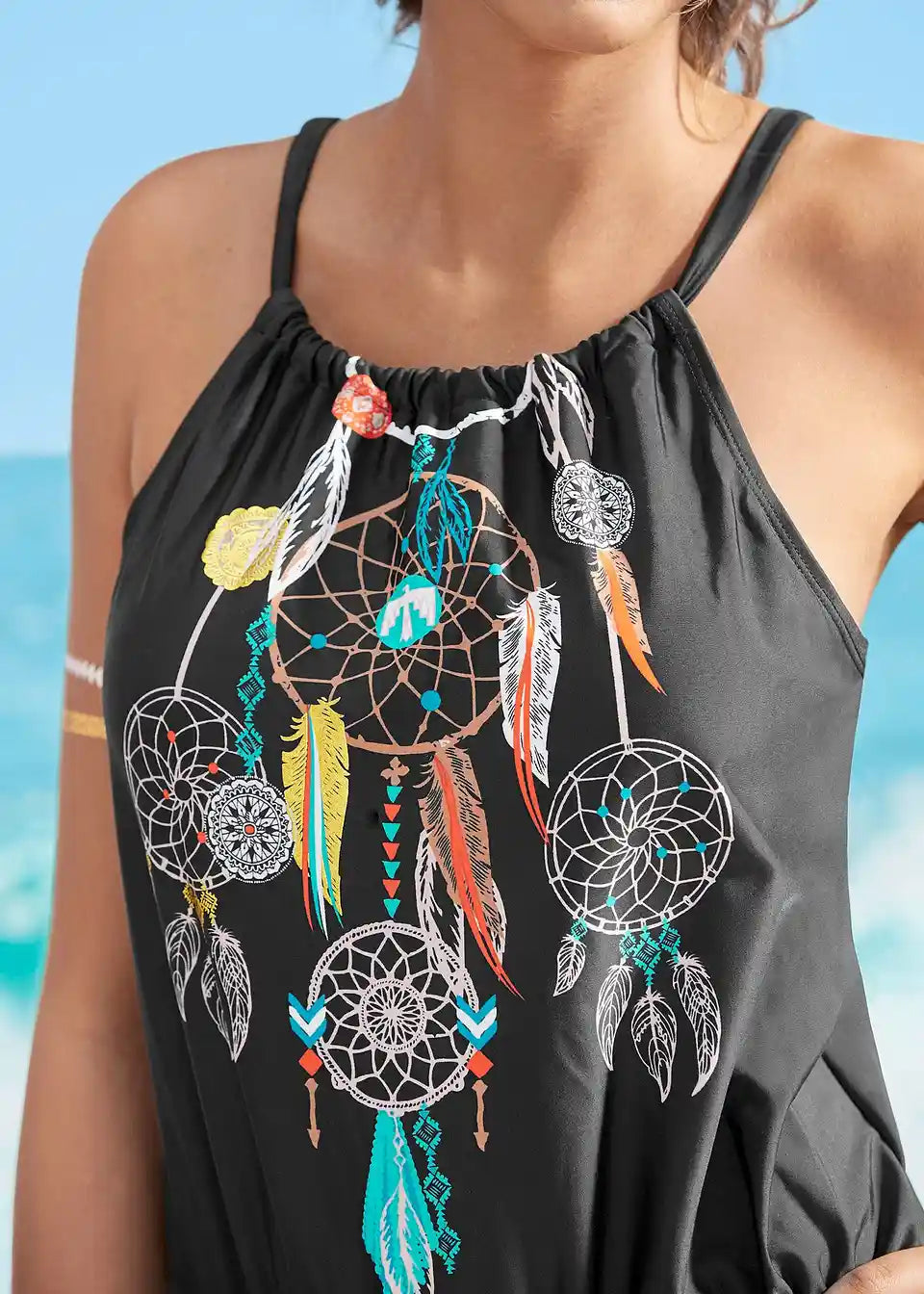 Tiskani kupaći kostim u figuri laskavom balon obliku