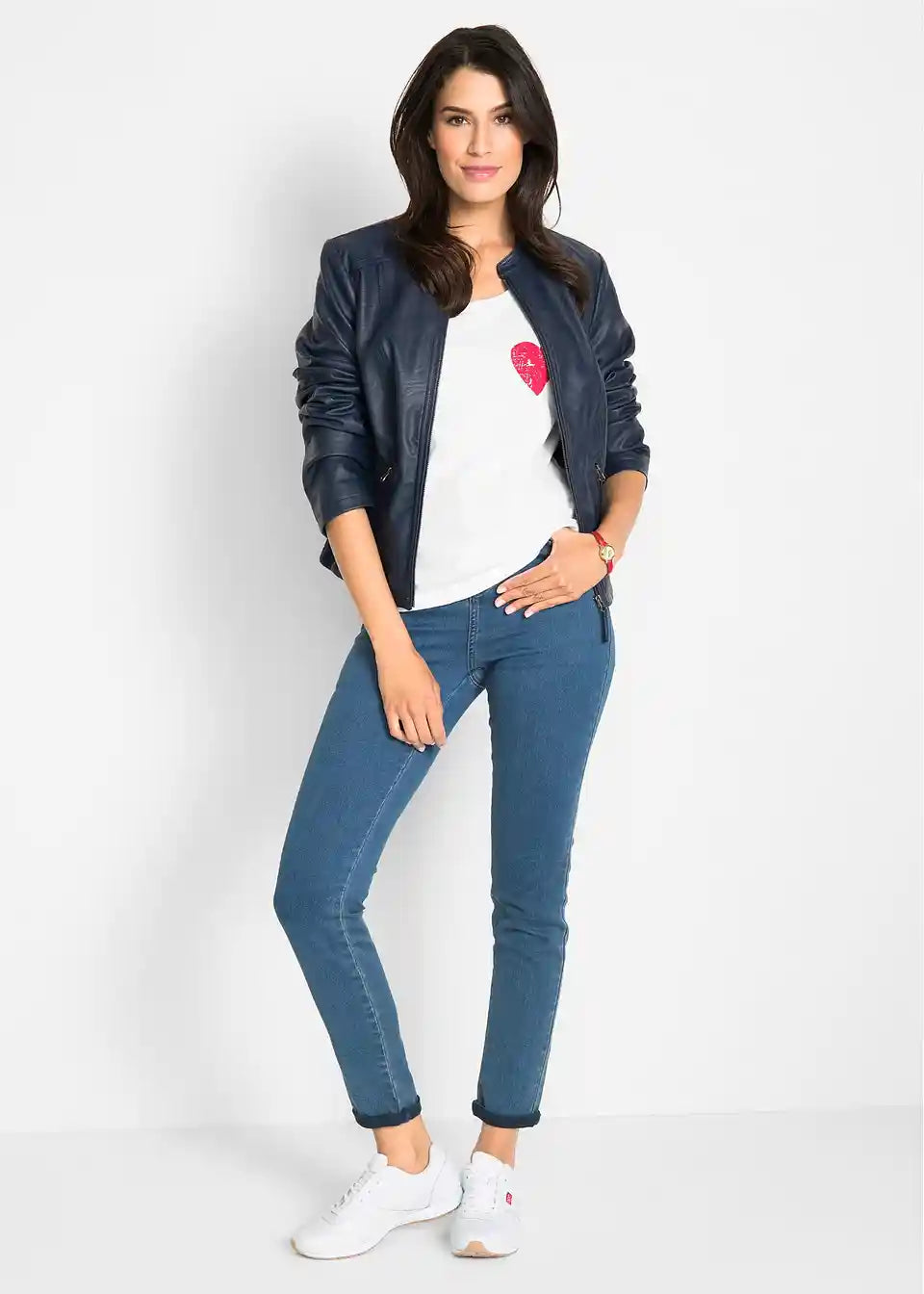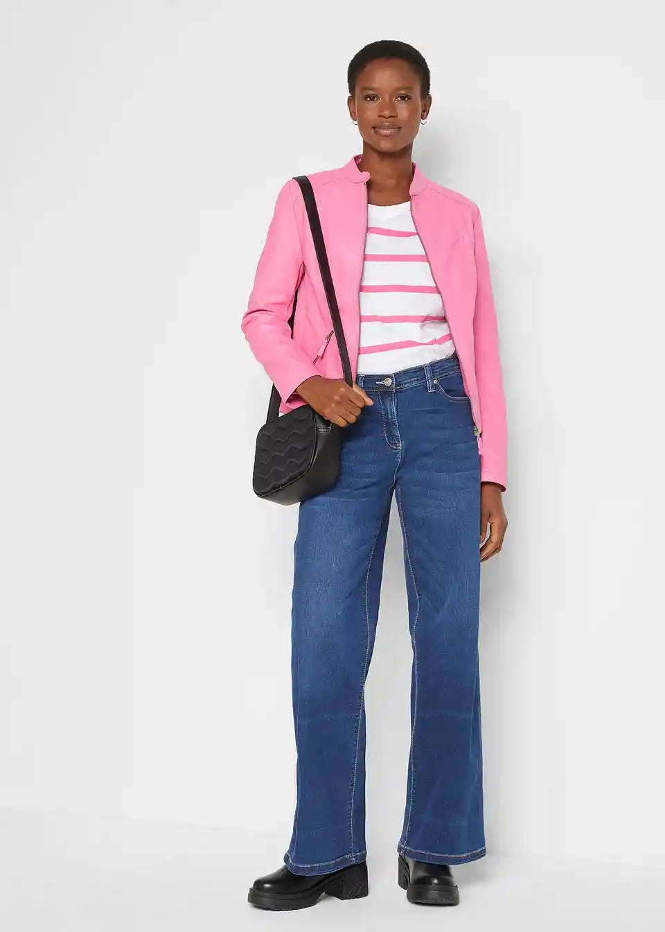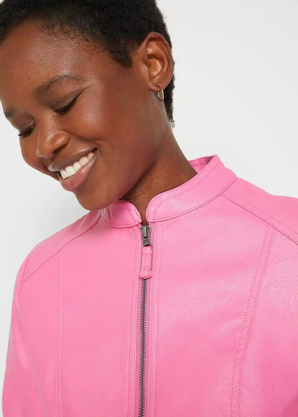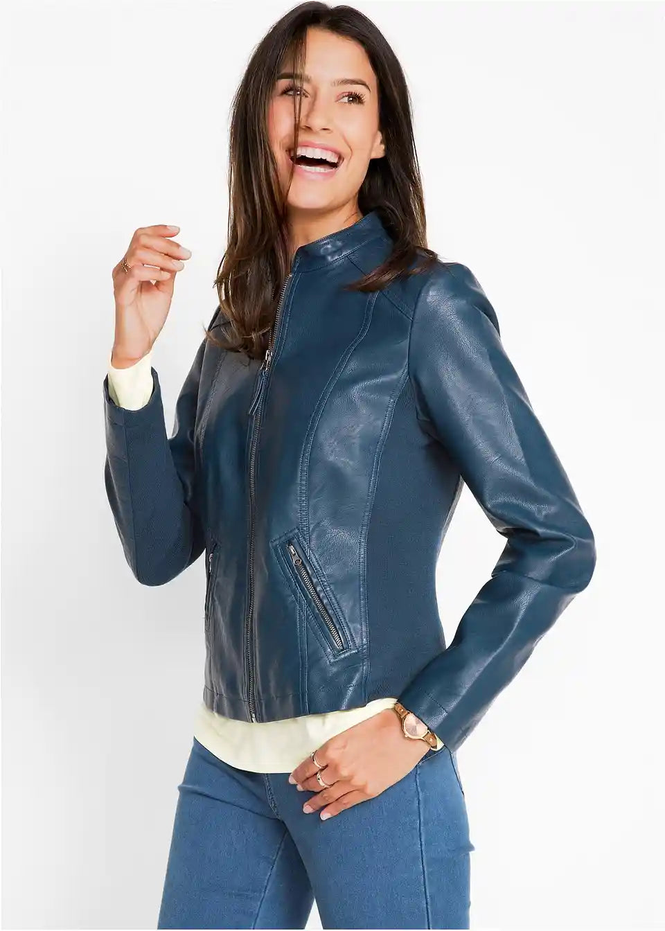 Ova privlačna jakna od imitacije kože iz bpc kolekcije ističe se finim detaljima. Uključuje mali stajaći ovratnik i dva bočna džepa s patentnim zatvaračima na prednjoj strani. Umetci od rebrastog materijala na bočnim stranama i rukavima osiguravaju dobru prilagodbu i ugodan osjećaj tijekom nošenja. Lagano strukirana jakna od imitacije kože idealan je dodatak trapericama i gležnjačama, ali također odlično nadopunjuje uske midi suknje s salonkama.