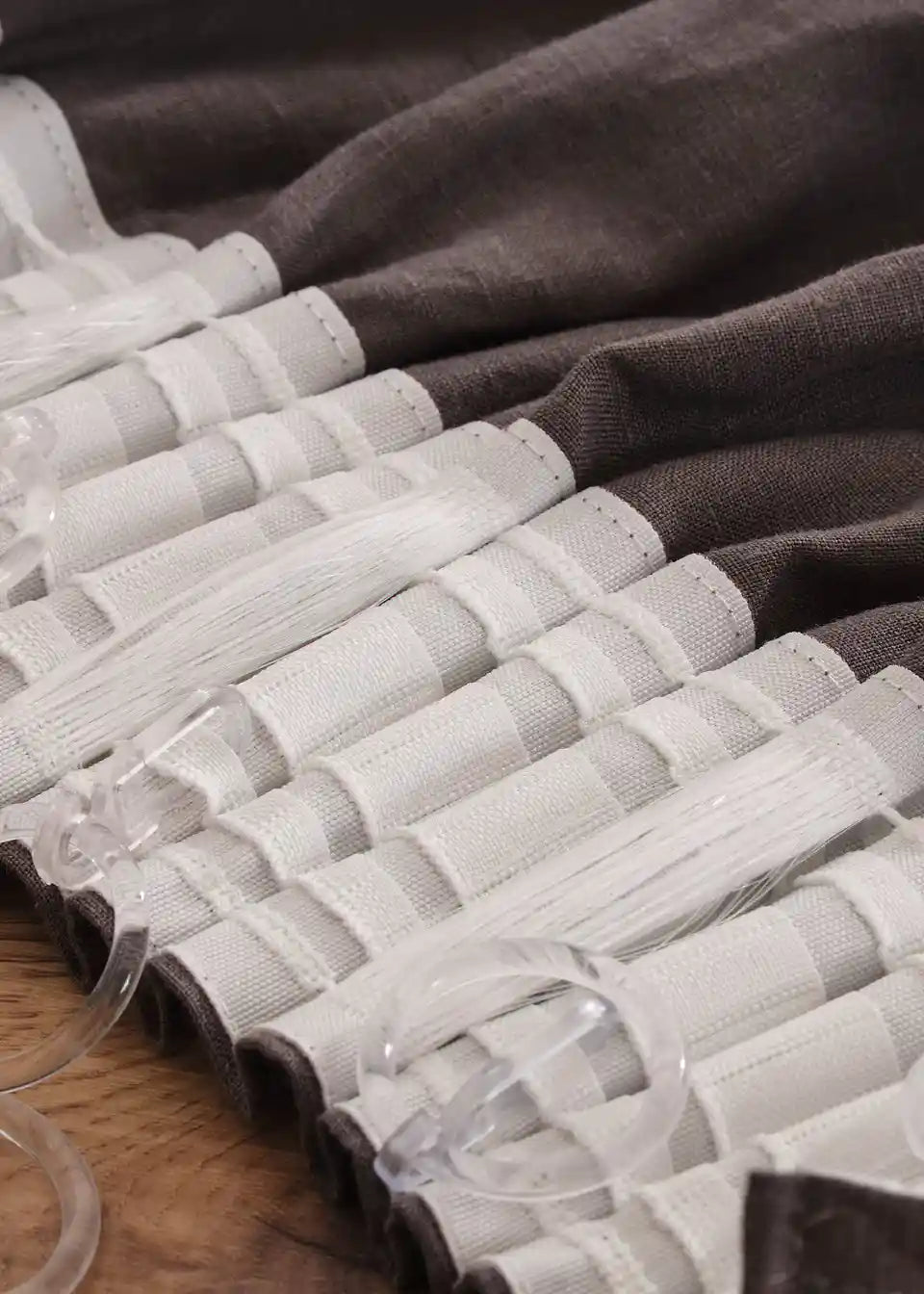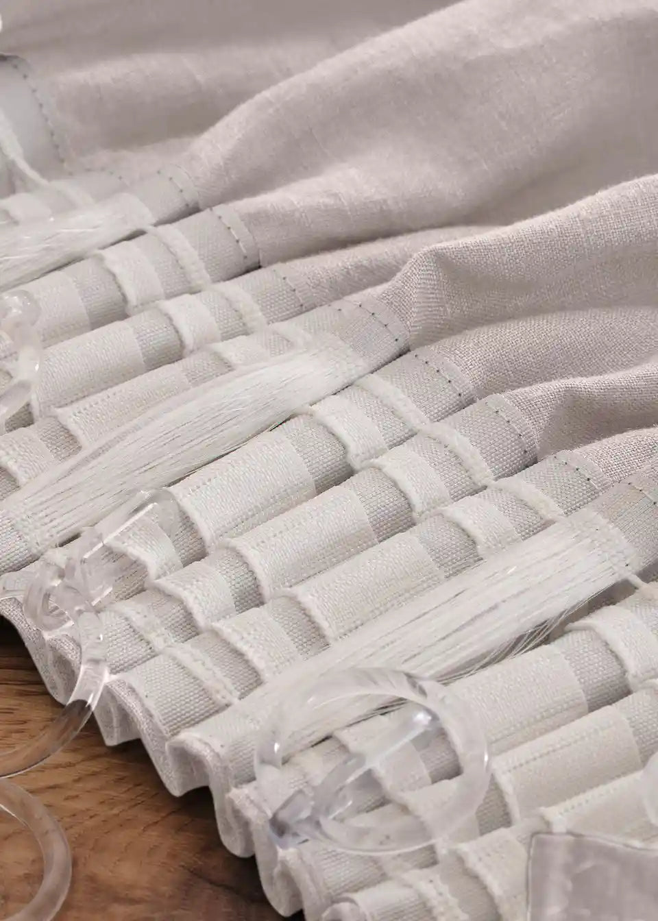 Unesi u svoj dom dašak prirodne elegancije s našim visokokvalitetnim zavjesama od 100% lana. Ove premium zavjese kombiniraju bezvremenski dizajn s neusporedivom kvalitetom čistog lana, stvarajući toplu i ugodnu atmosferu u tvom prostoru za život. Osim toga, lan je prozračan materijal koji osigurava ugodnu klimu u prostoriji, upijajući i ispuštajući vlagu.