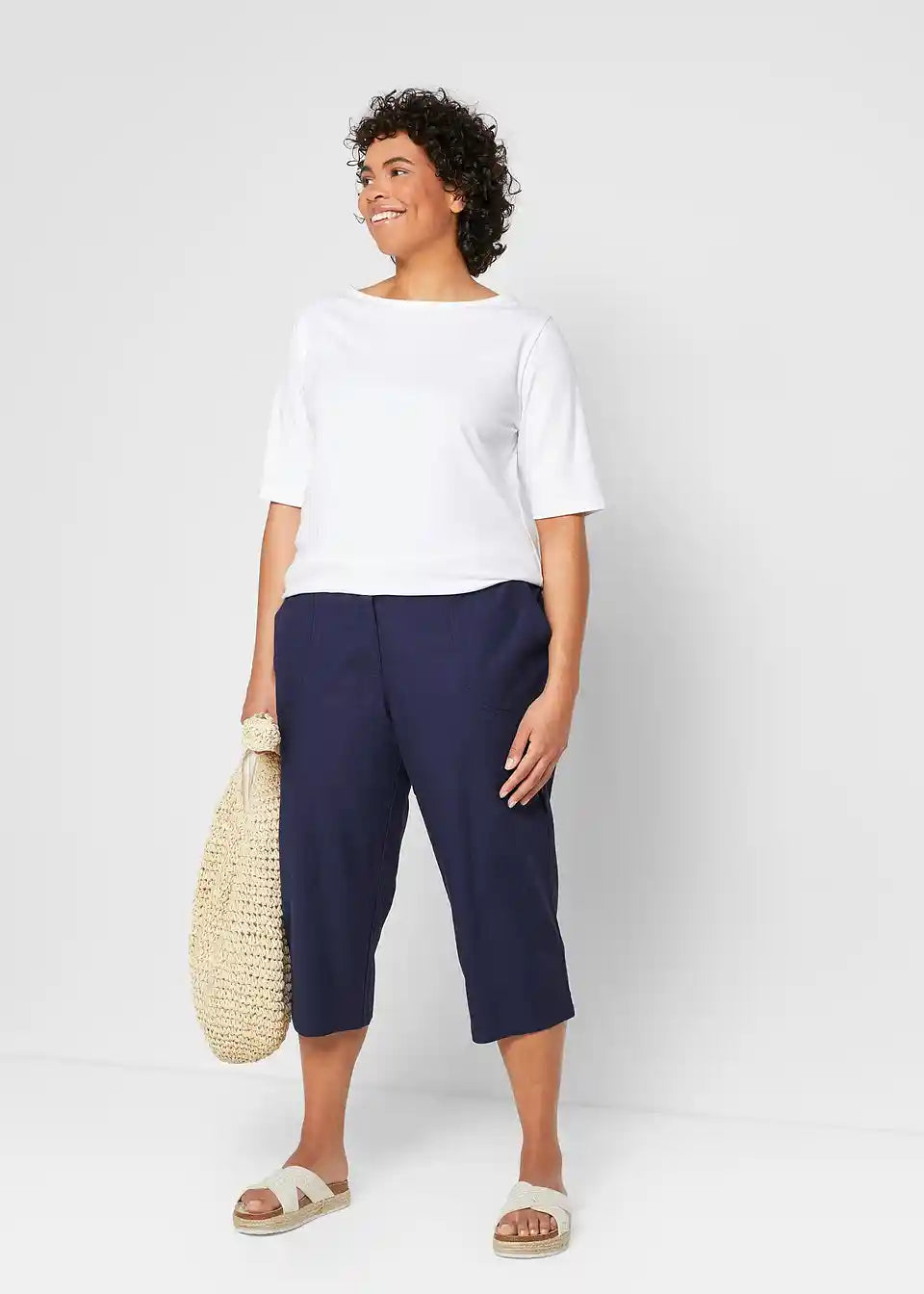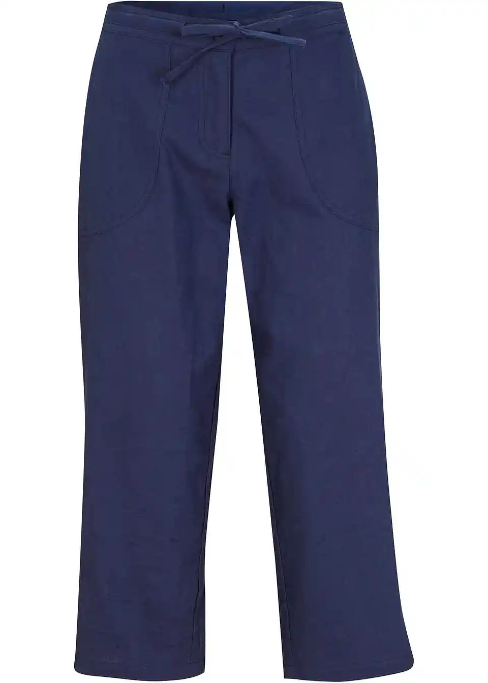 Udobne lanene 3/4 hlače s vezicom i džepovima