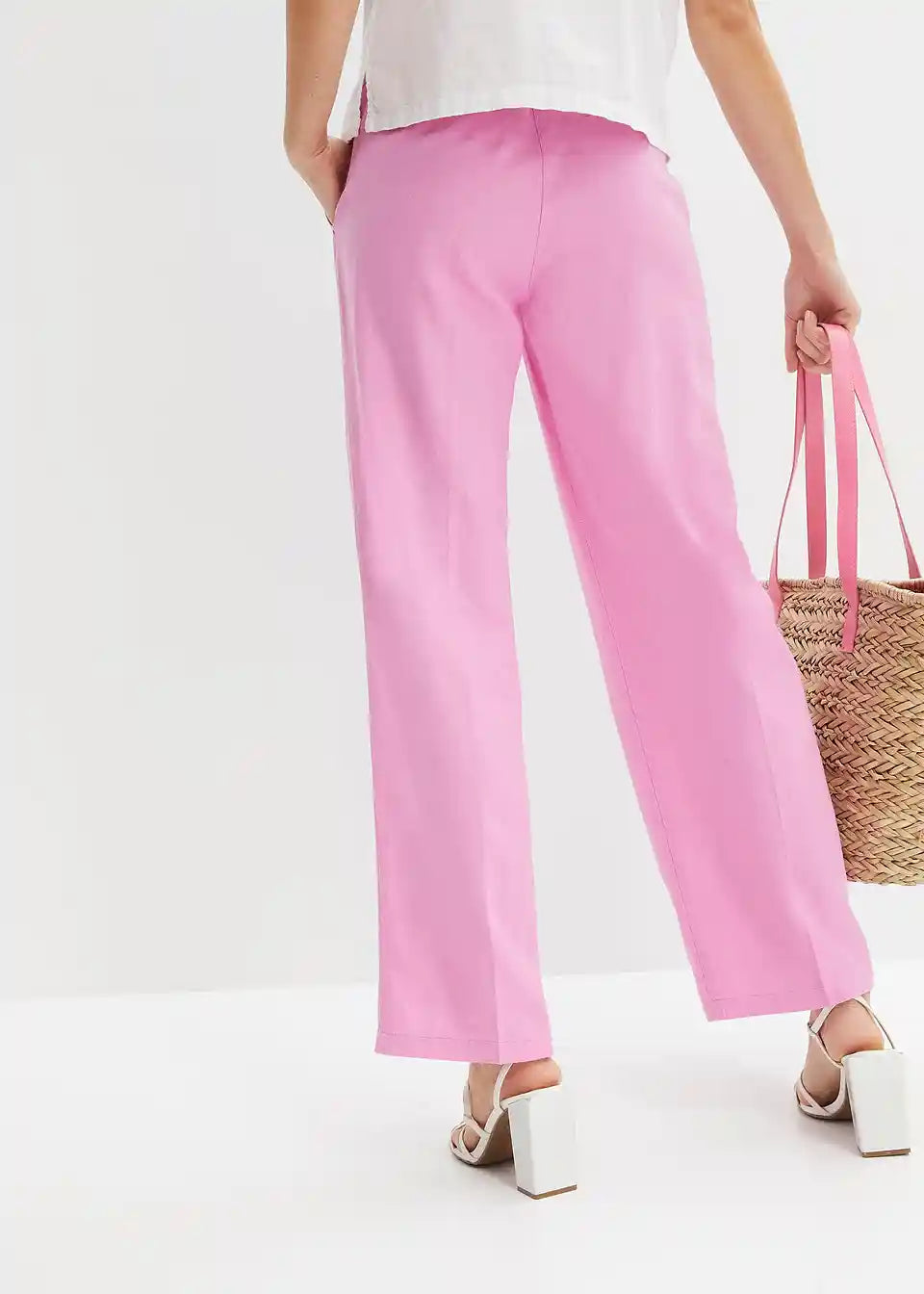 Moderne lanene hlače s dva stražnja lažna paspulirana džepa.