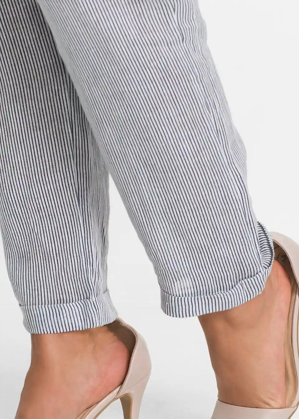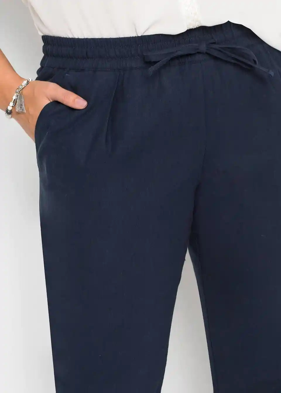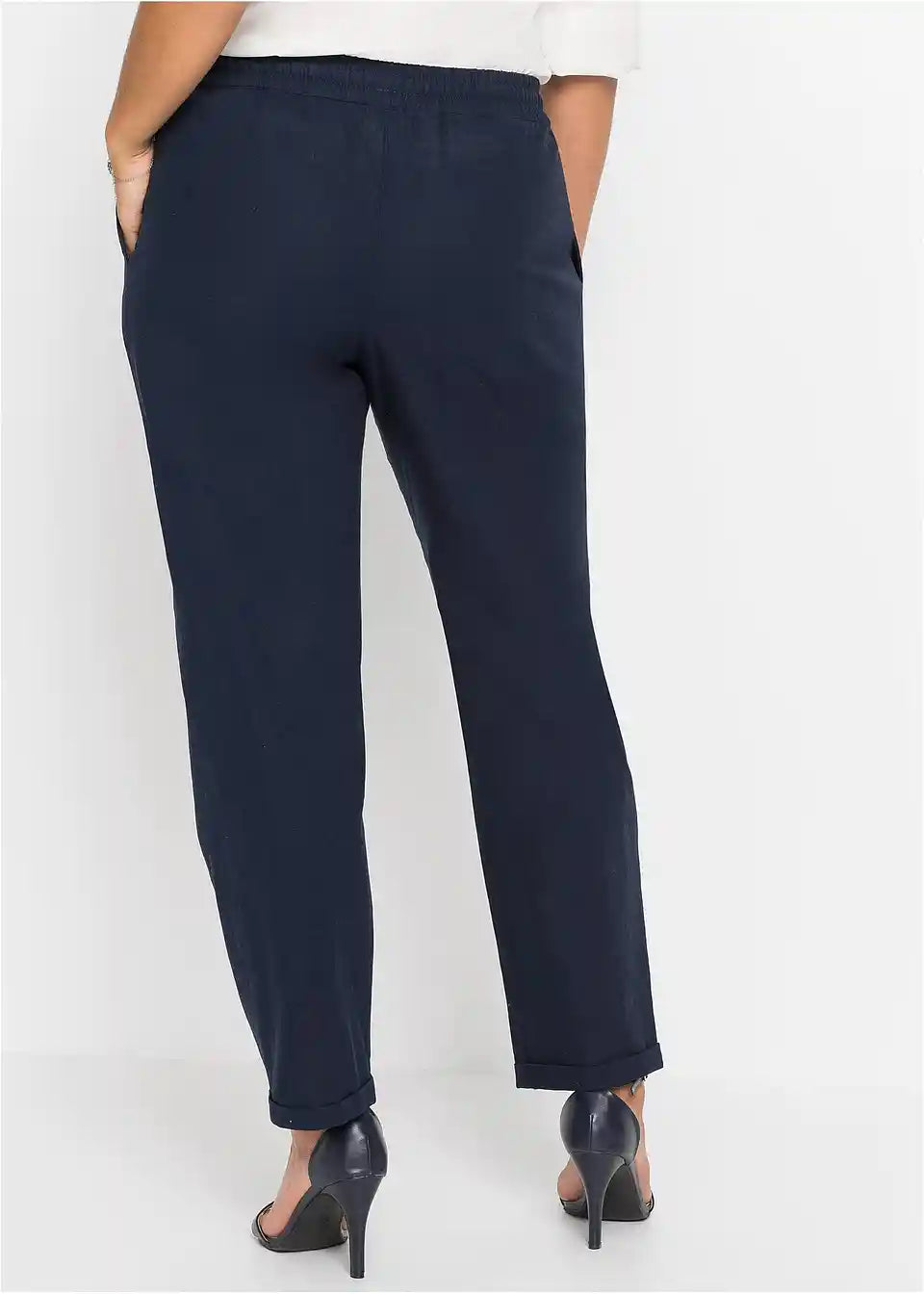 Ženstvene lanene hlače s elastičnim strukom i porubom s preklopom