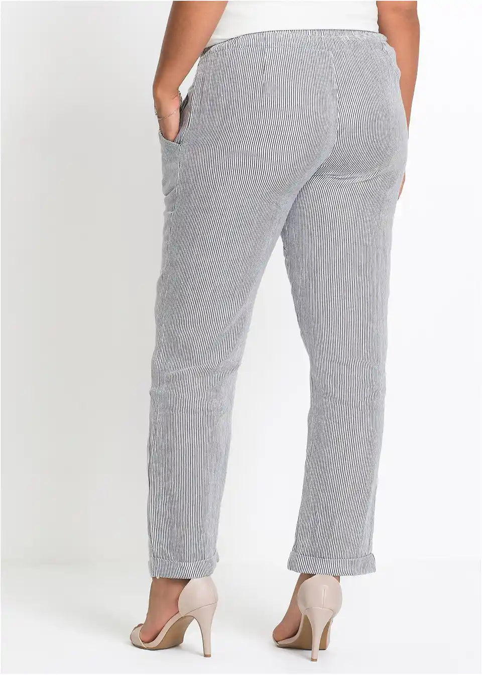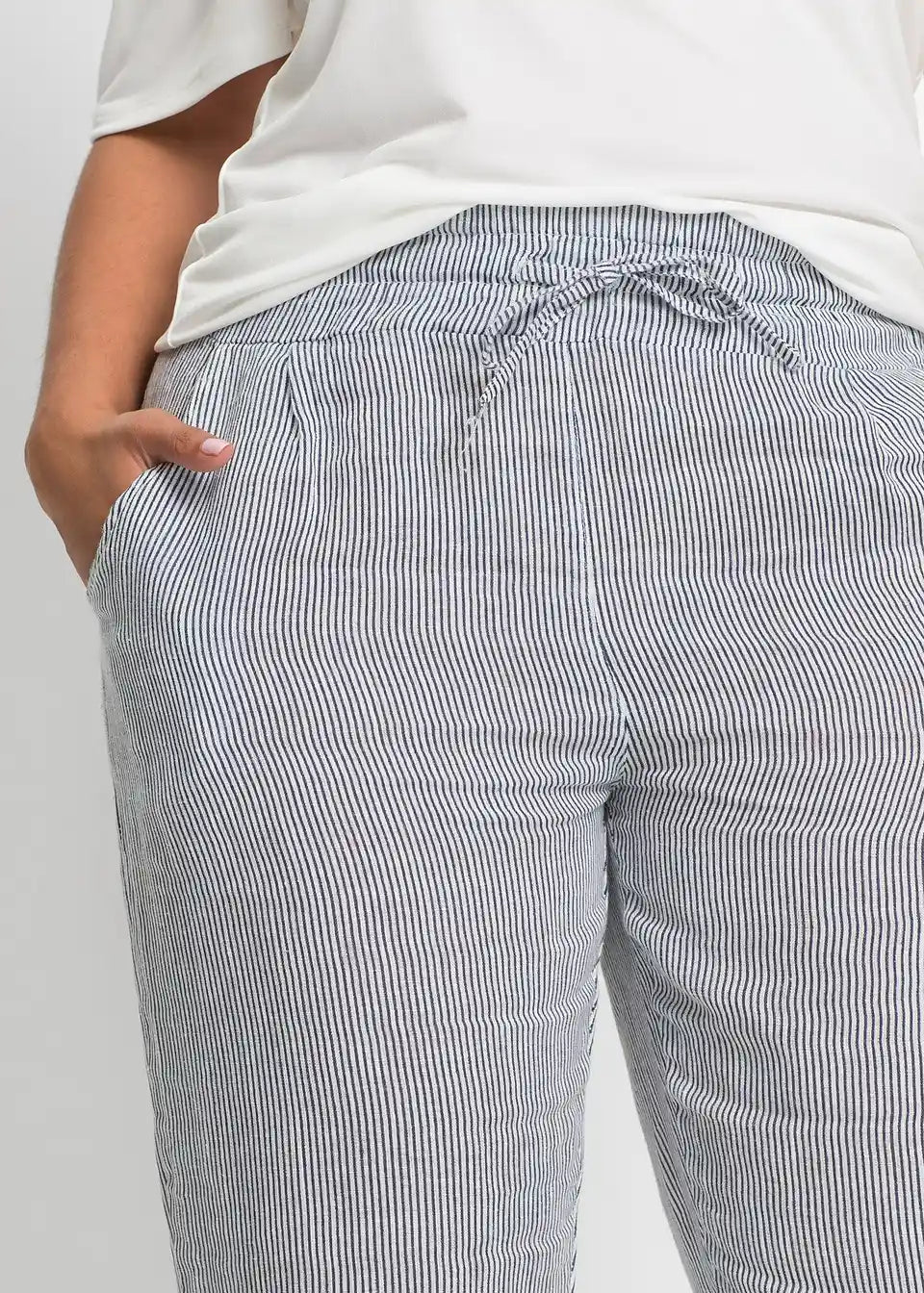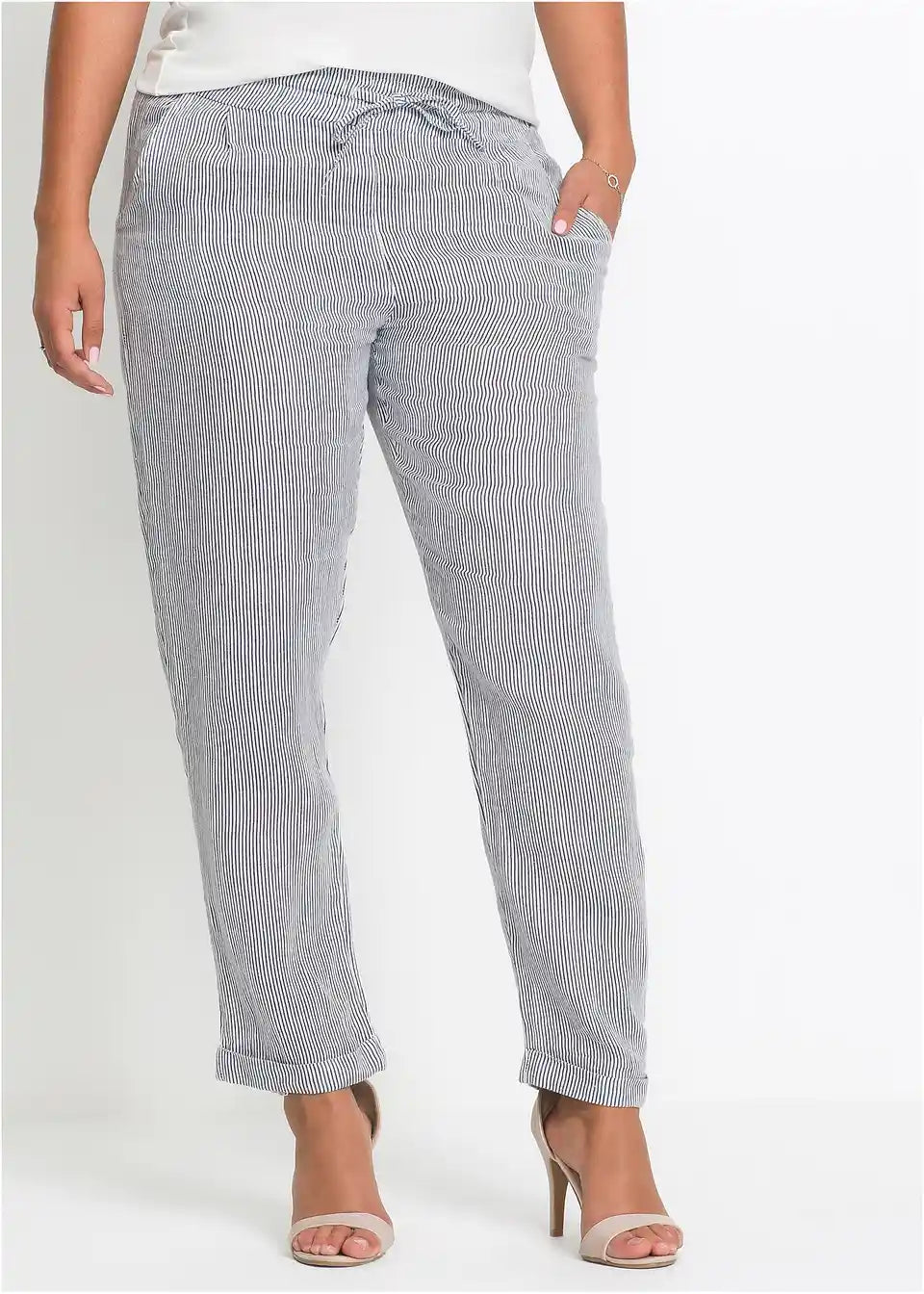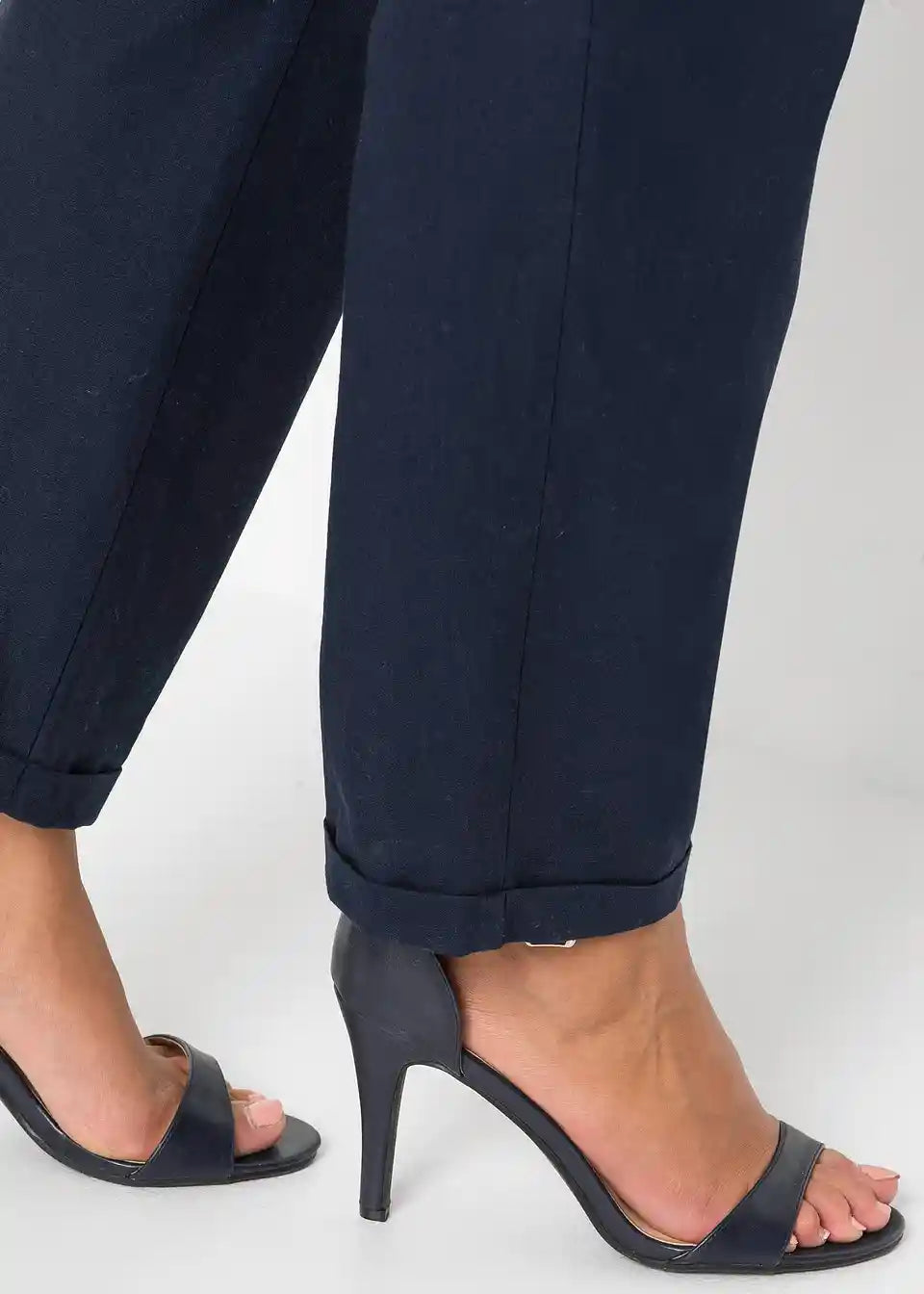 Ženstvene lanene hlače s elastičnim strukom i porubom s preklopom