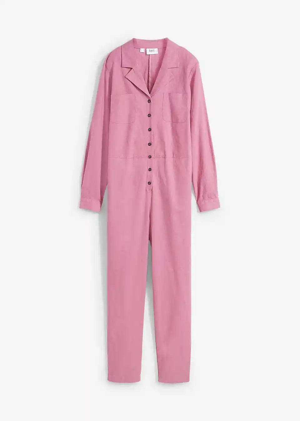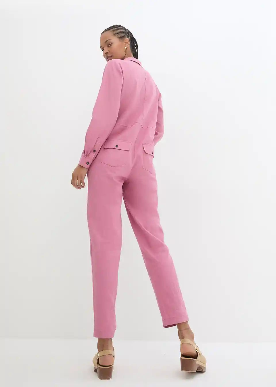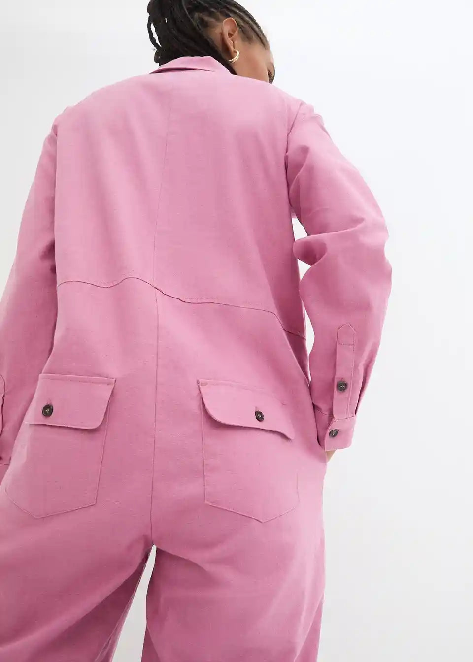 Moderan laneni kombinezon s džepovima i kopčanjem na gumbe